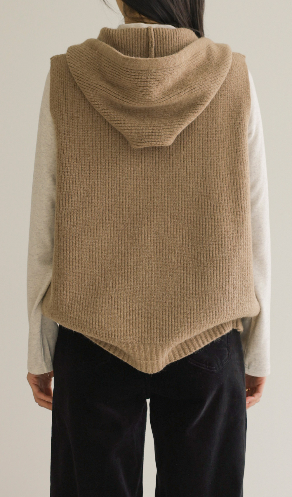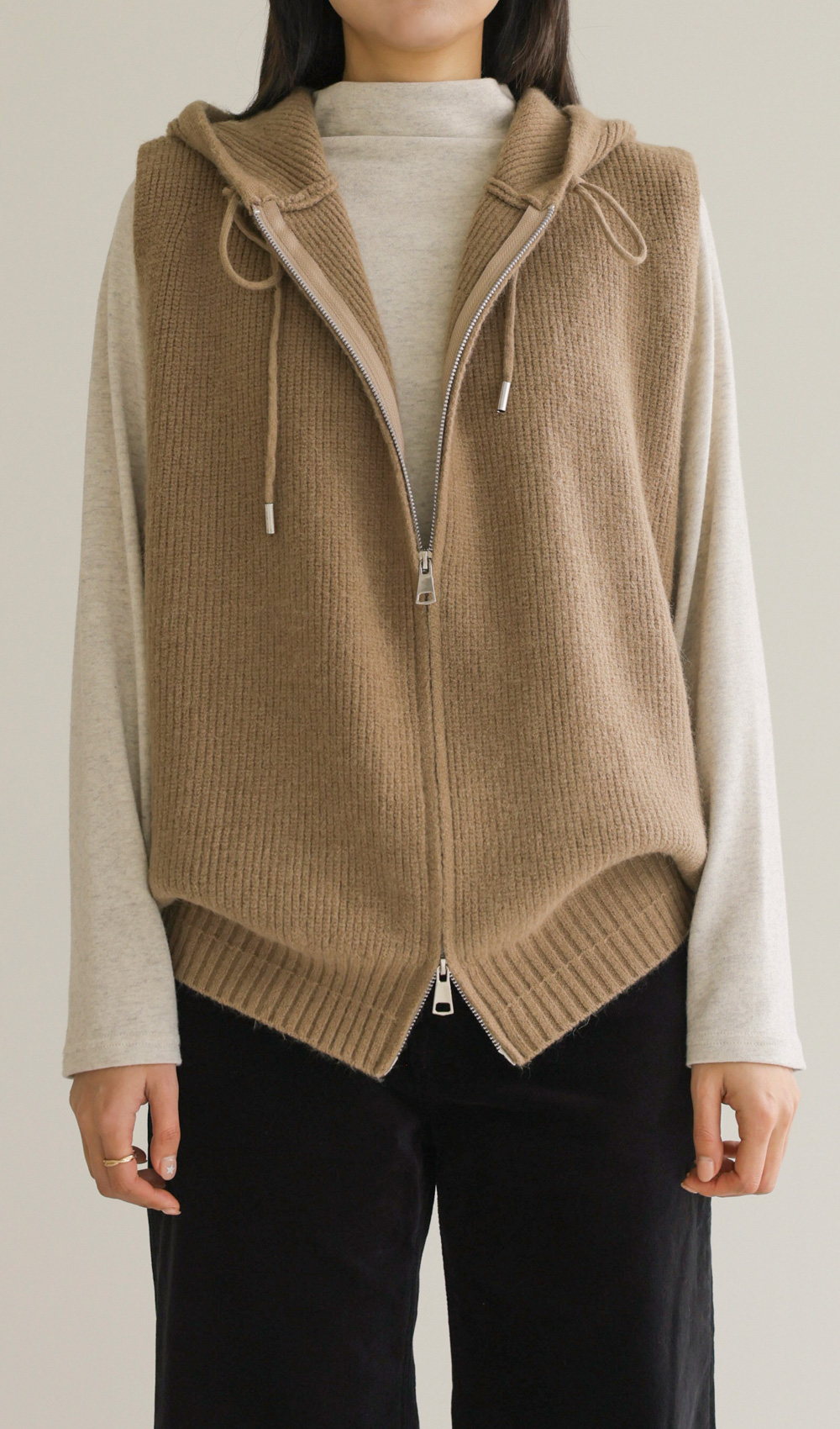 메론드 후드 니트조끼 _ 베이지