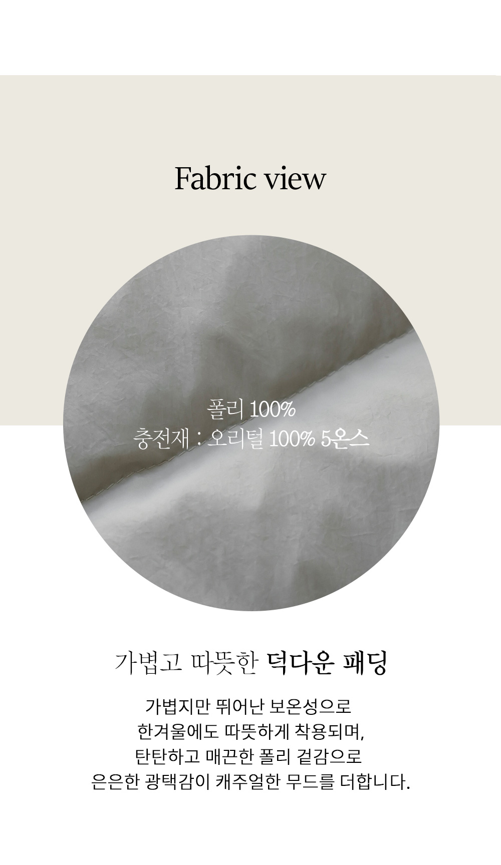 폴리100% 충전재: 오리털100%