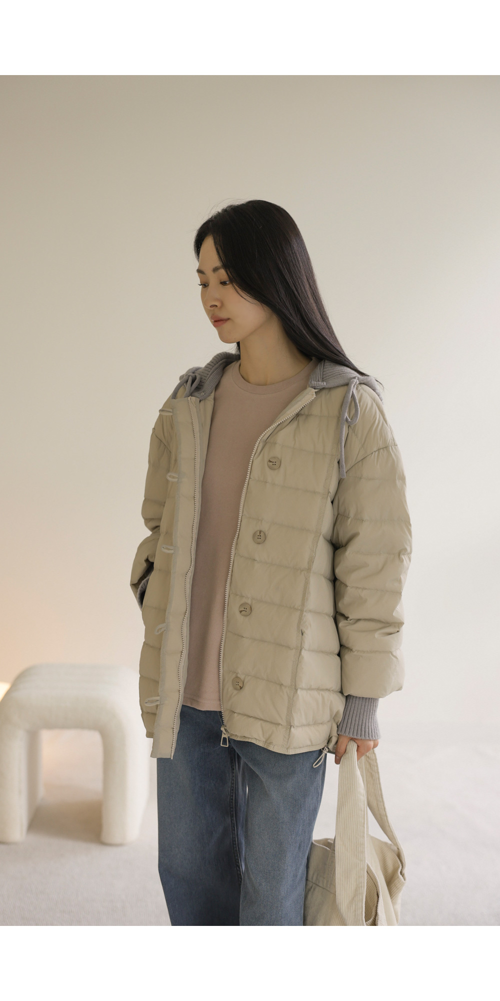 영리아 덕다운 패딩 _ 아이보리,블랙