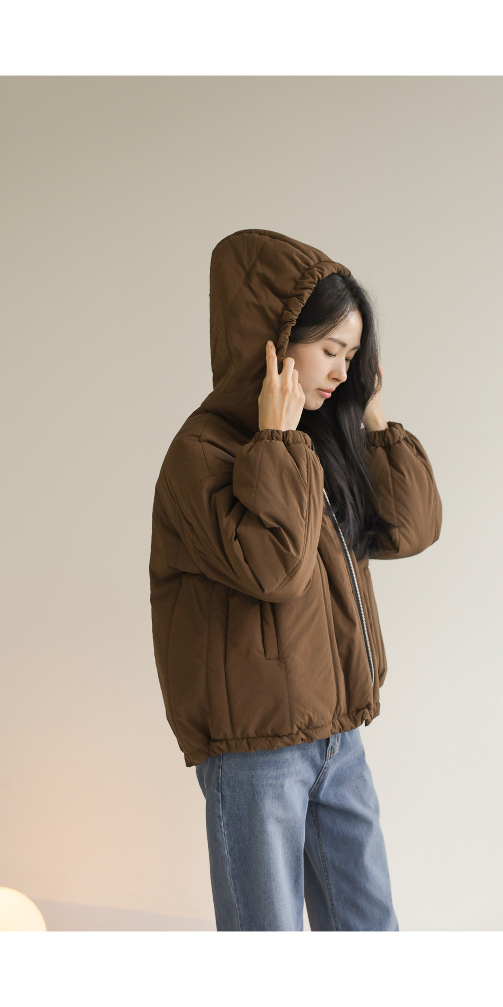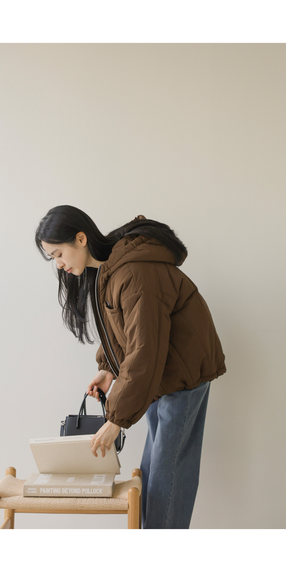 그리본 후드 패딩점퍼 _ 브라운,블랙