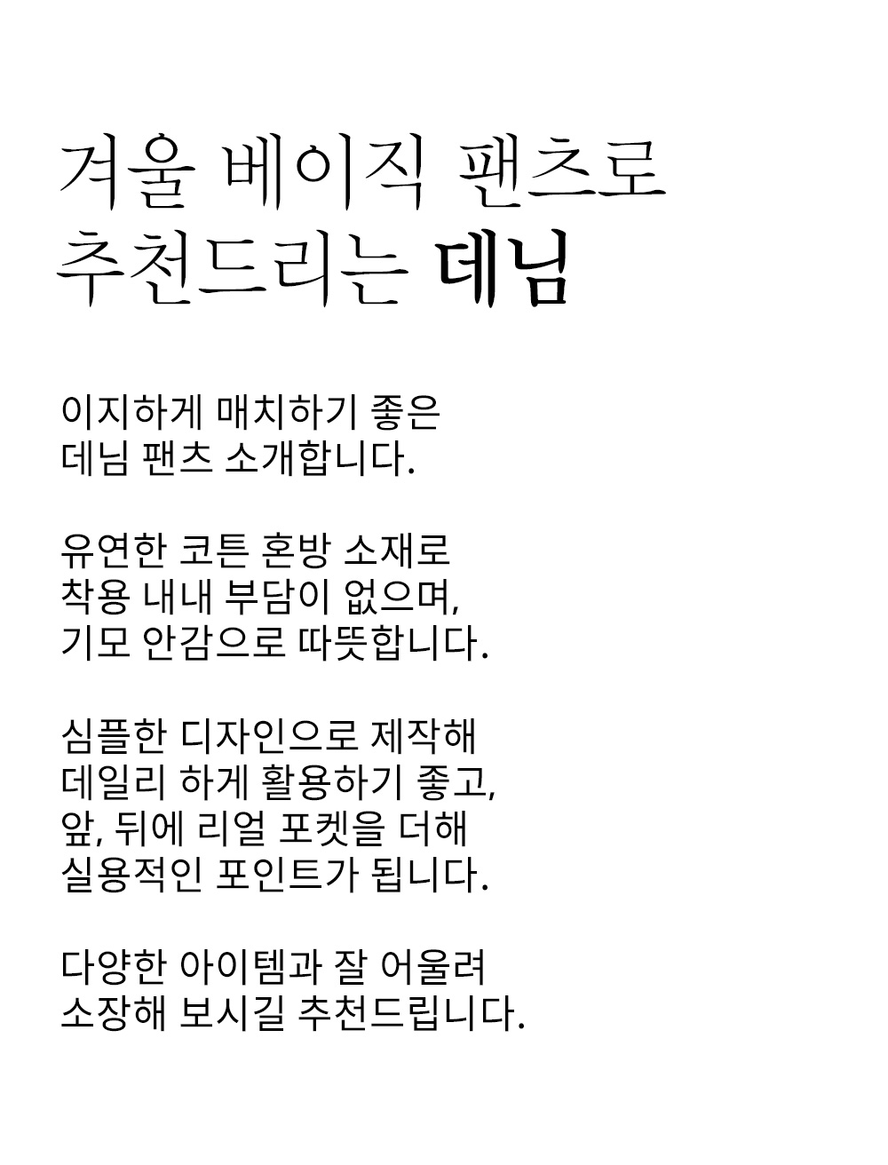 ※데님은 이염의 위험이 있으니 반드시 단독 세탁해주세요.