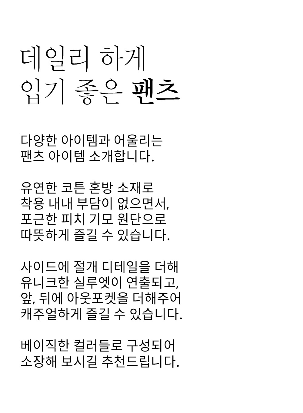 핏감 배기핏  /