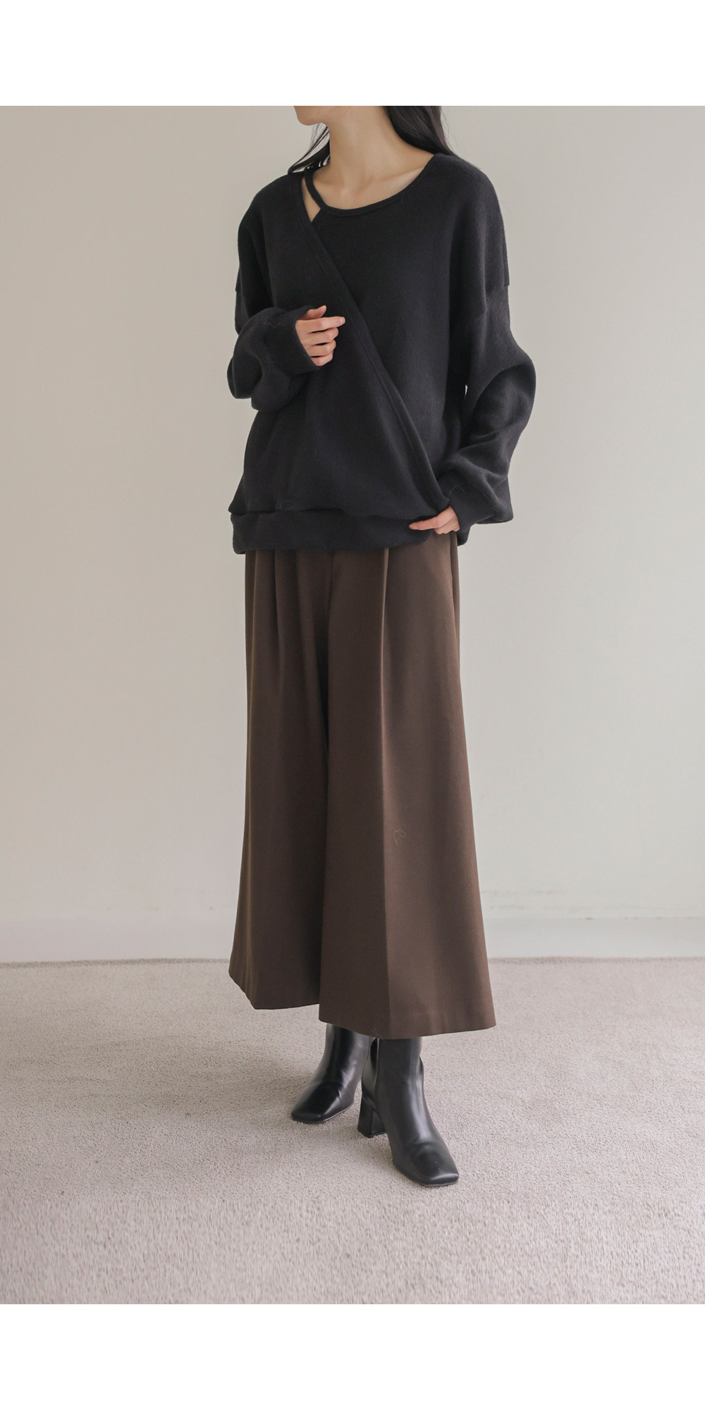 모드 원턱 와이드 팬츠 _ 브라운
