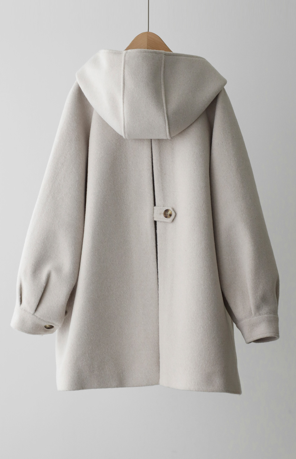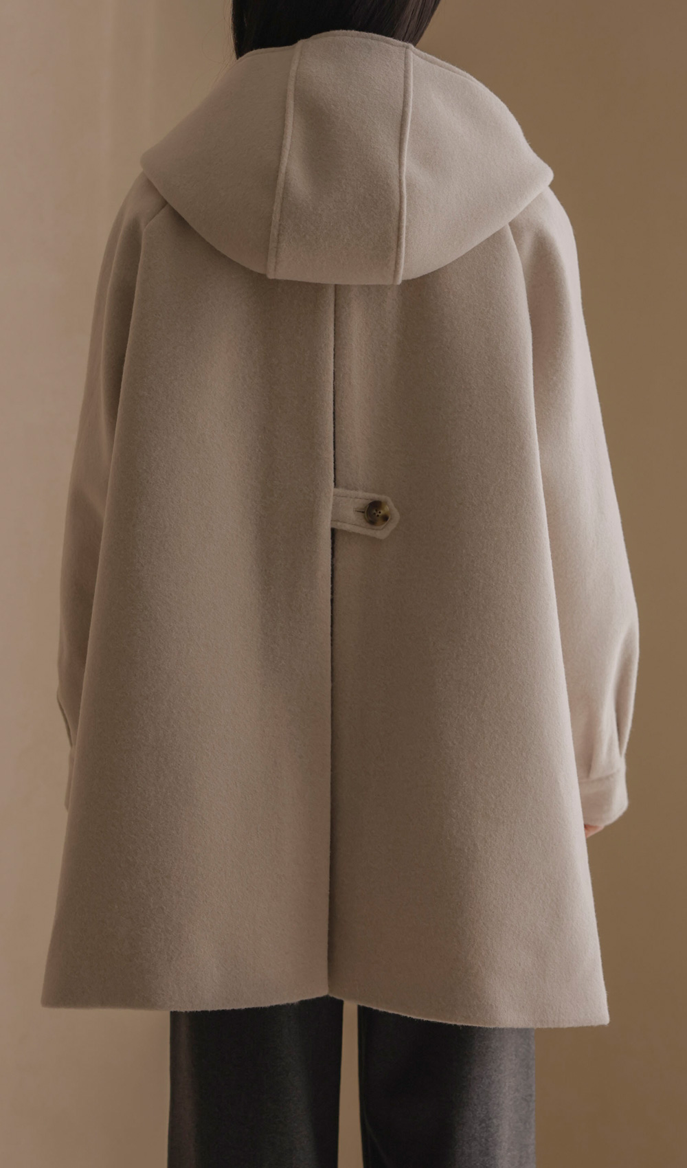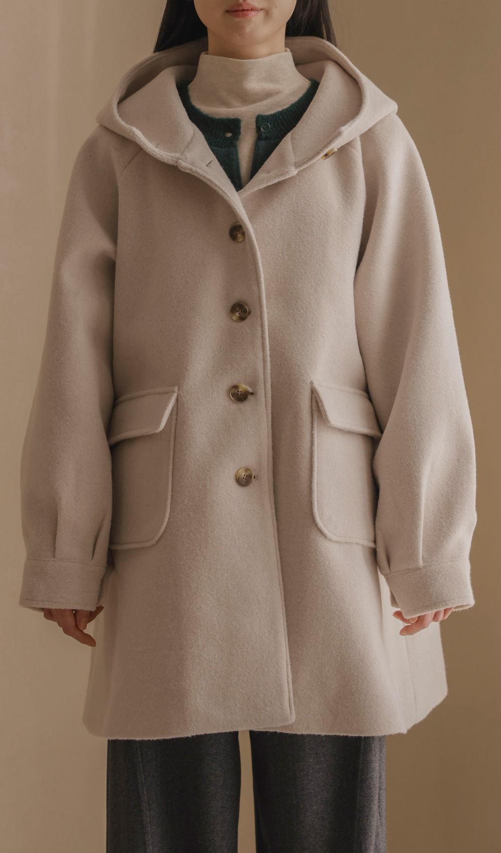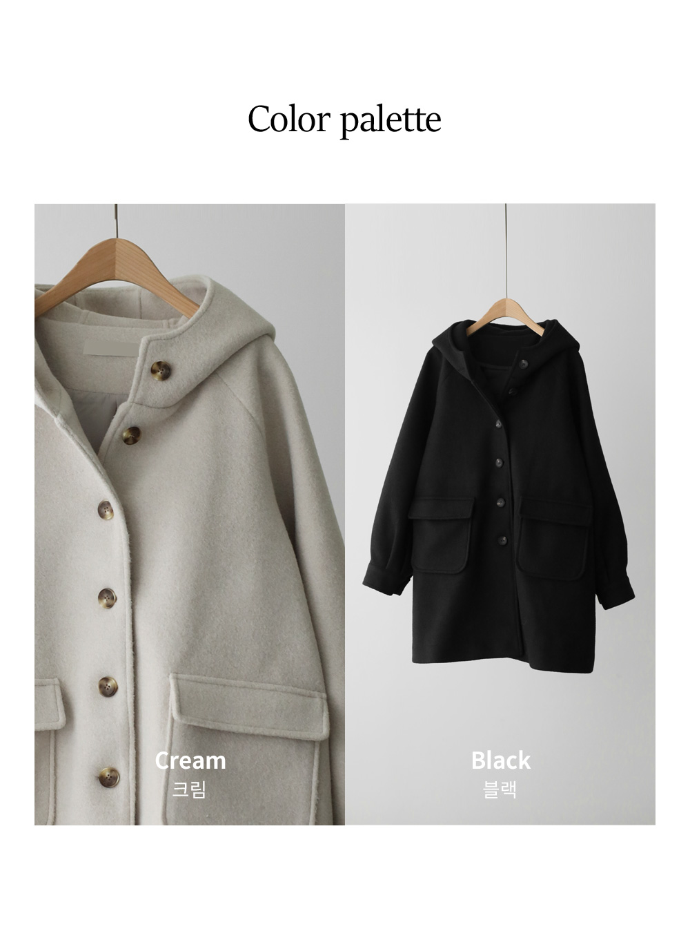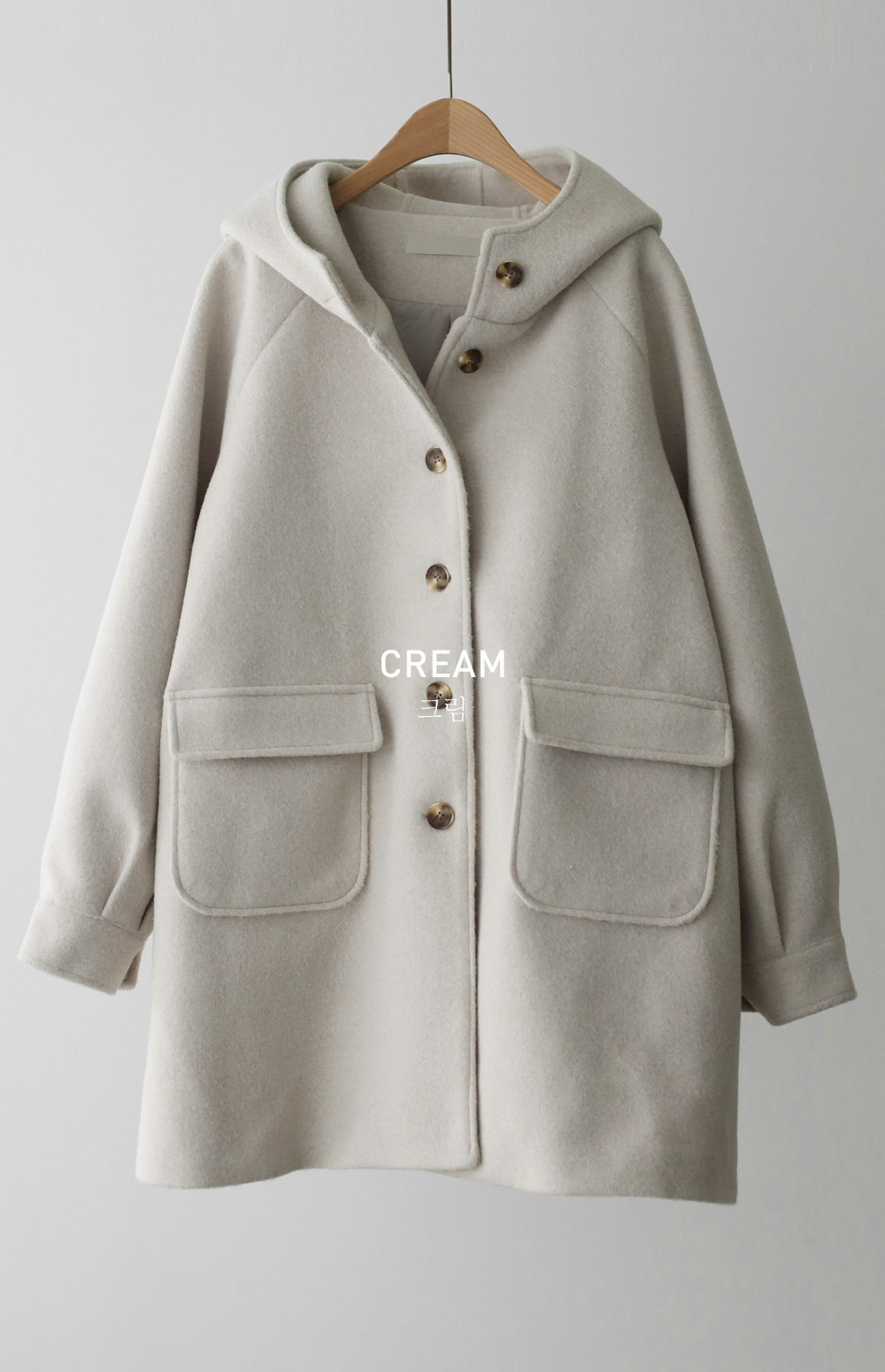 케리본 울 후드코트 _ 크림,블랙