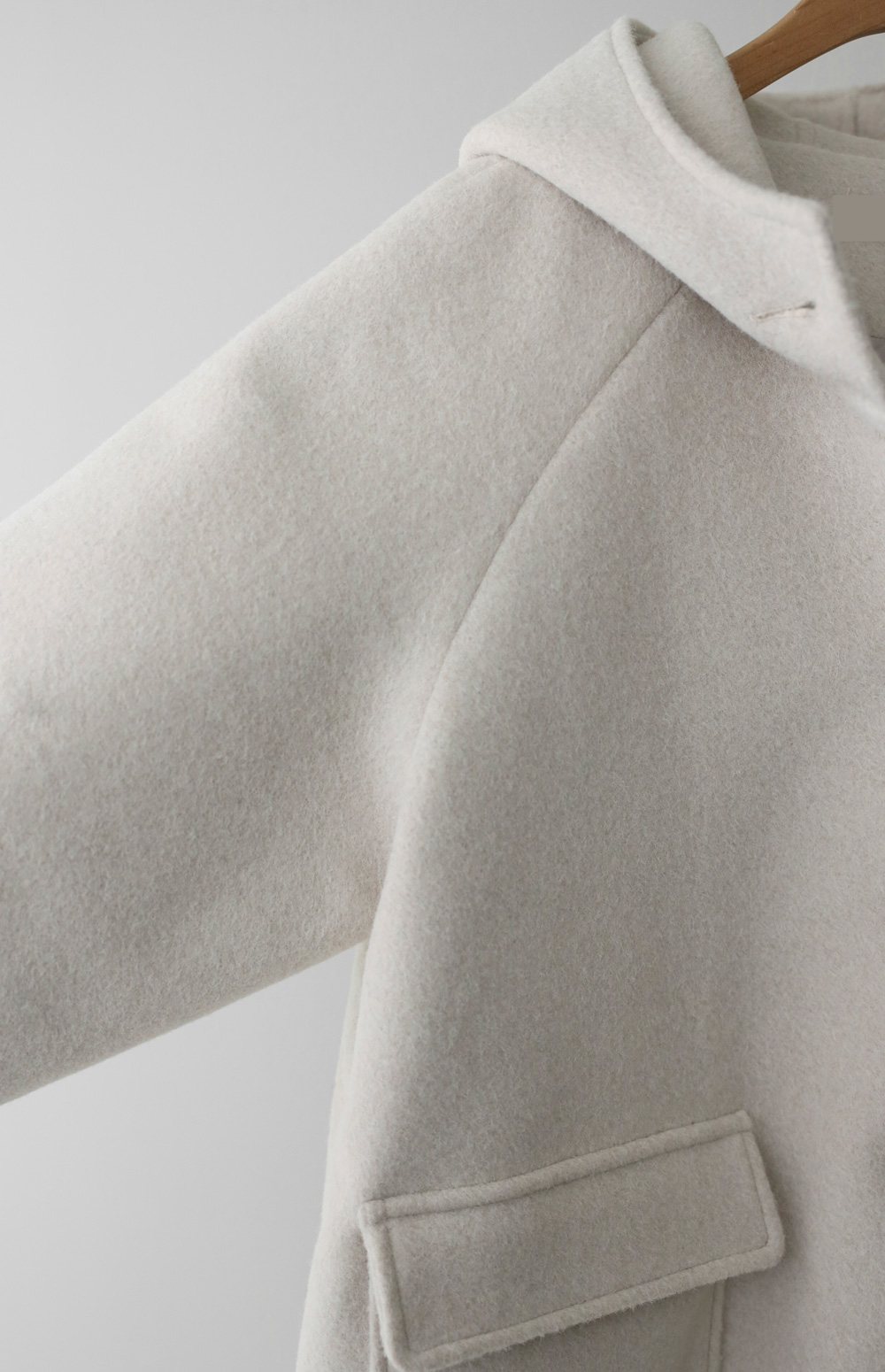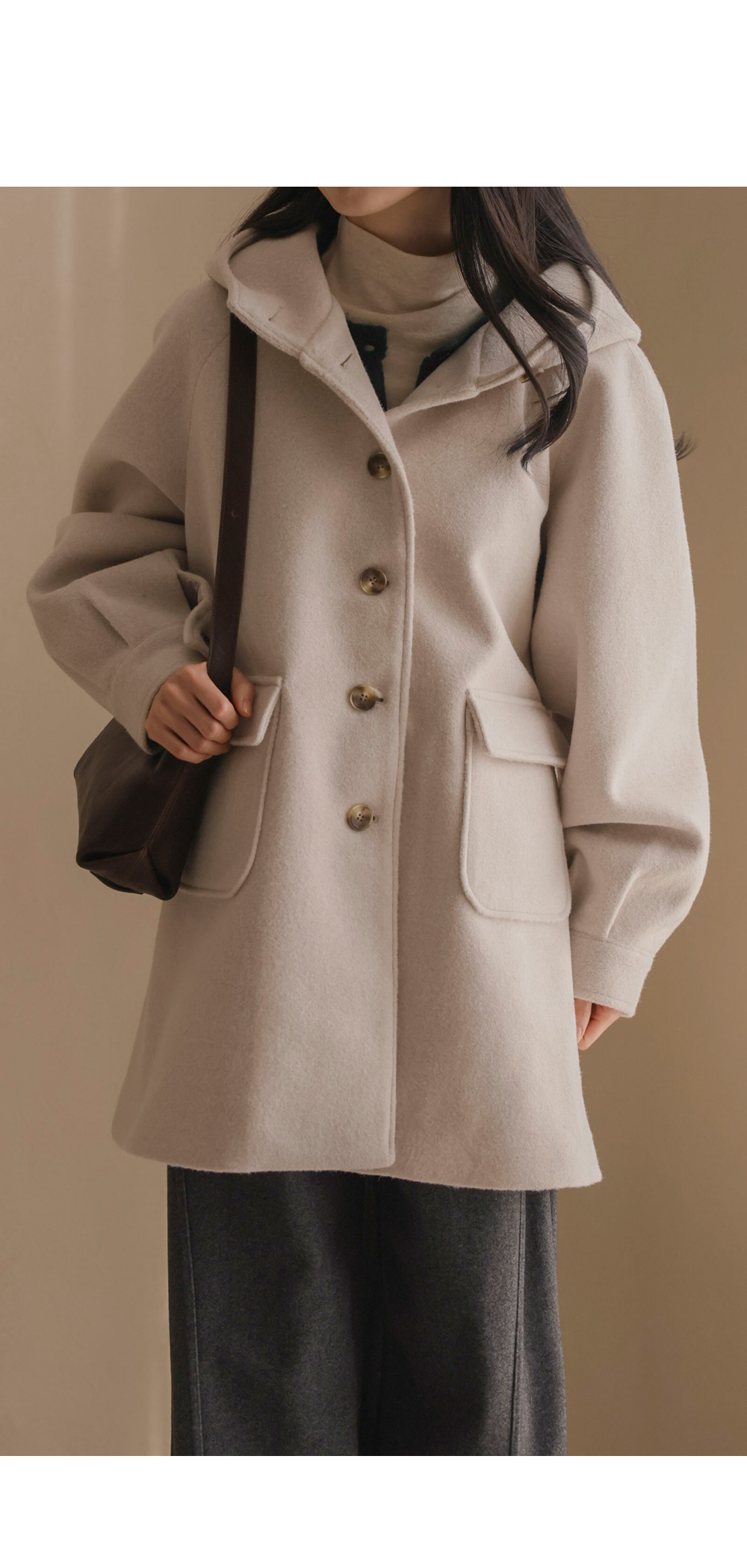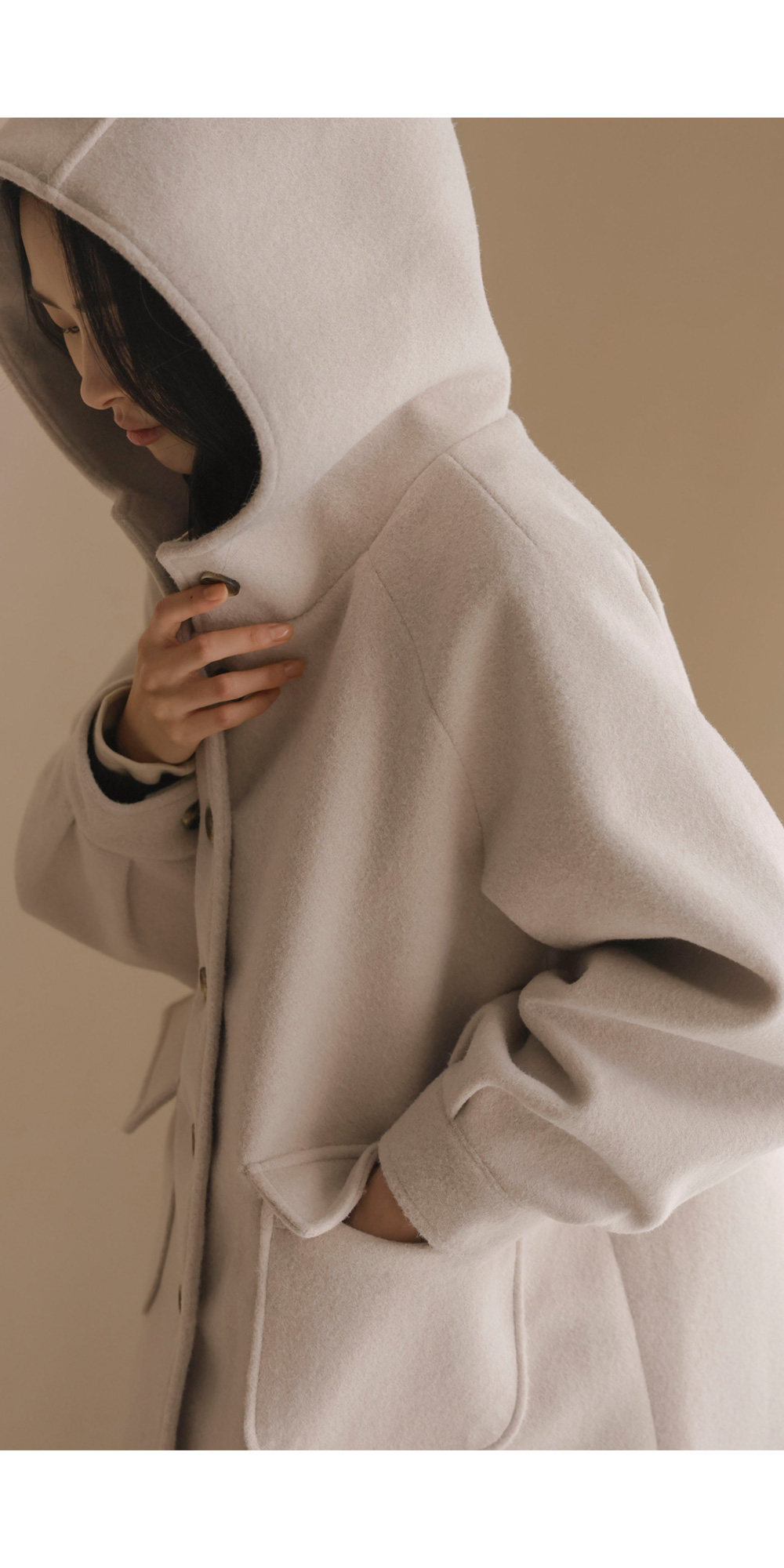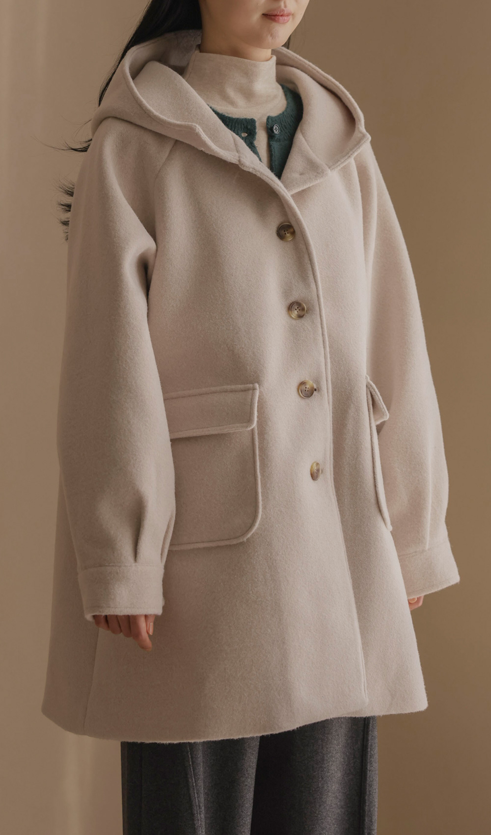 케리본 울 후드코트 _ 크림,블랙