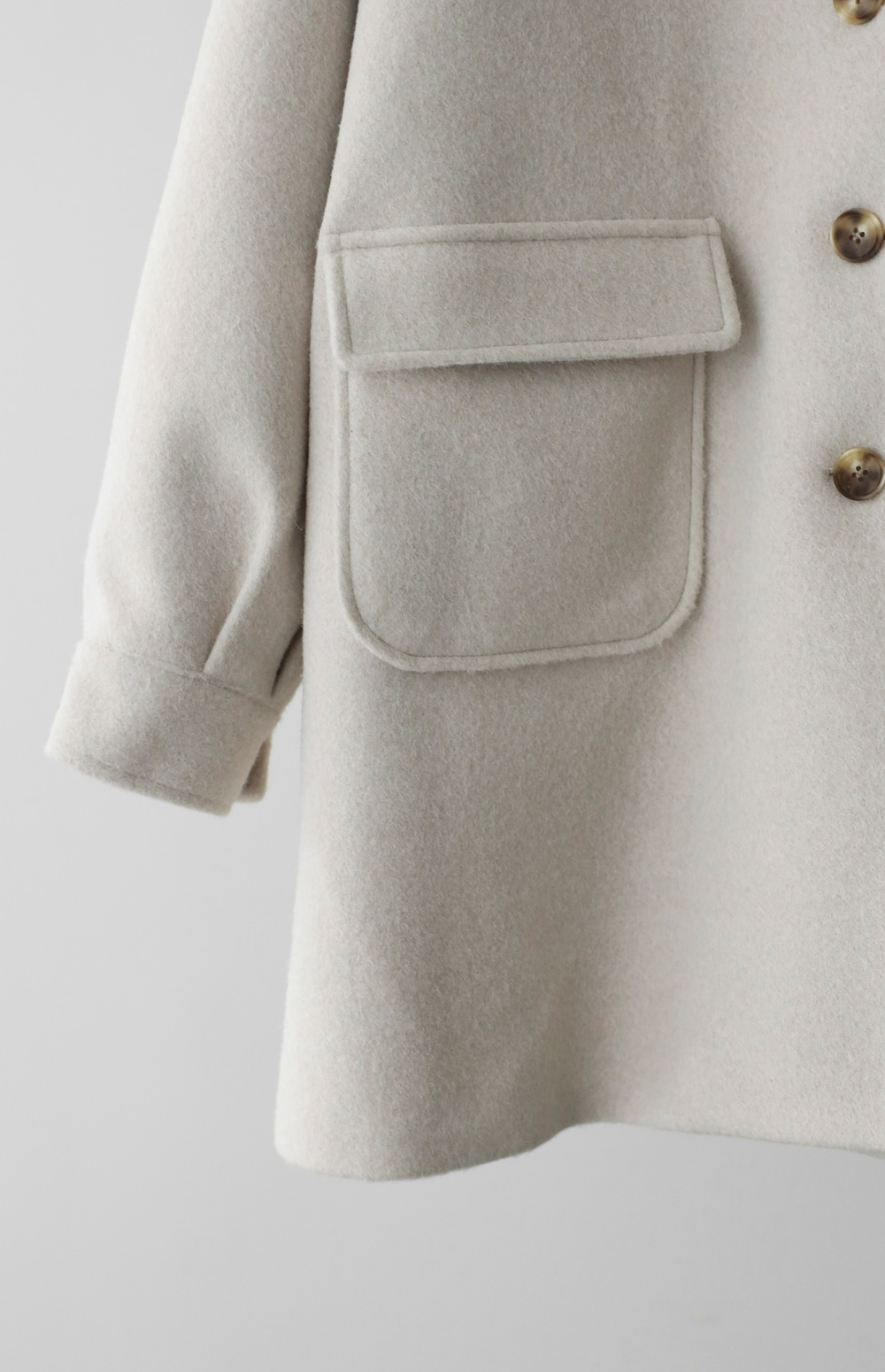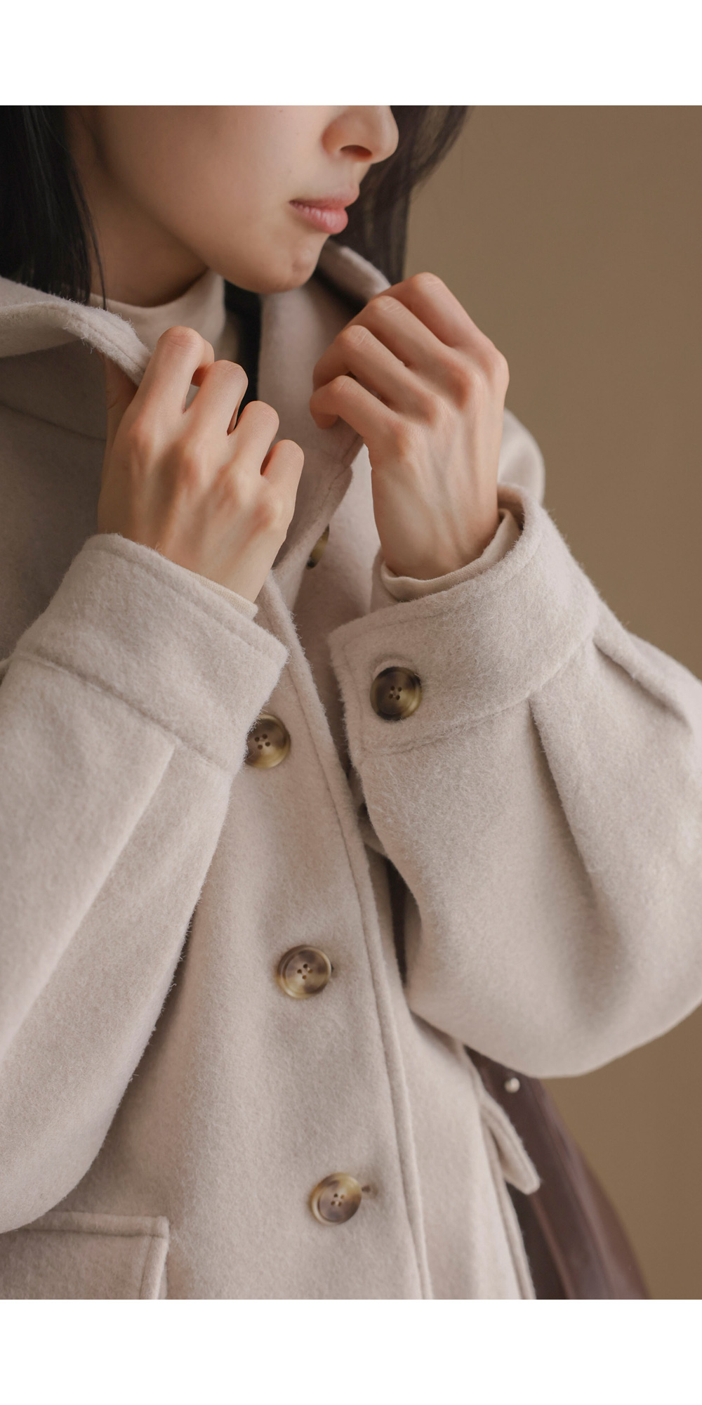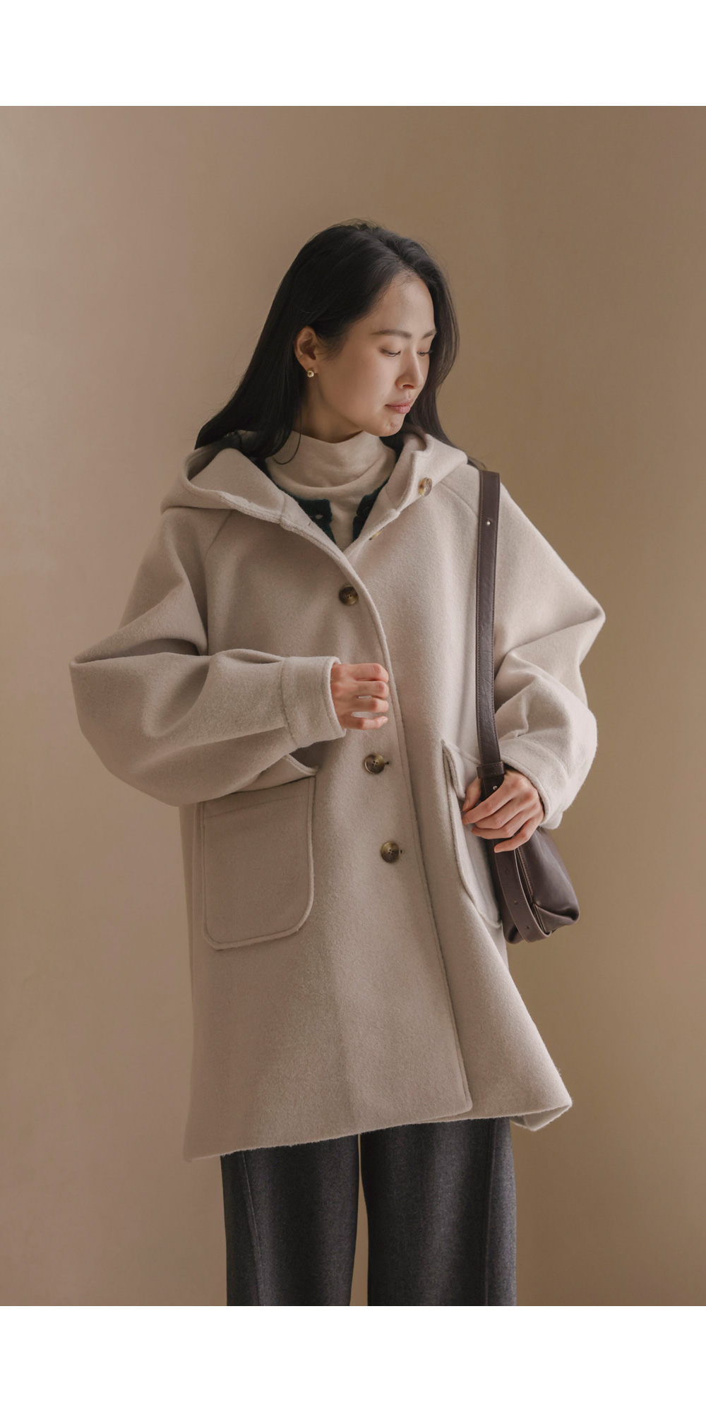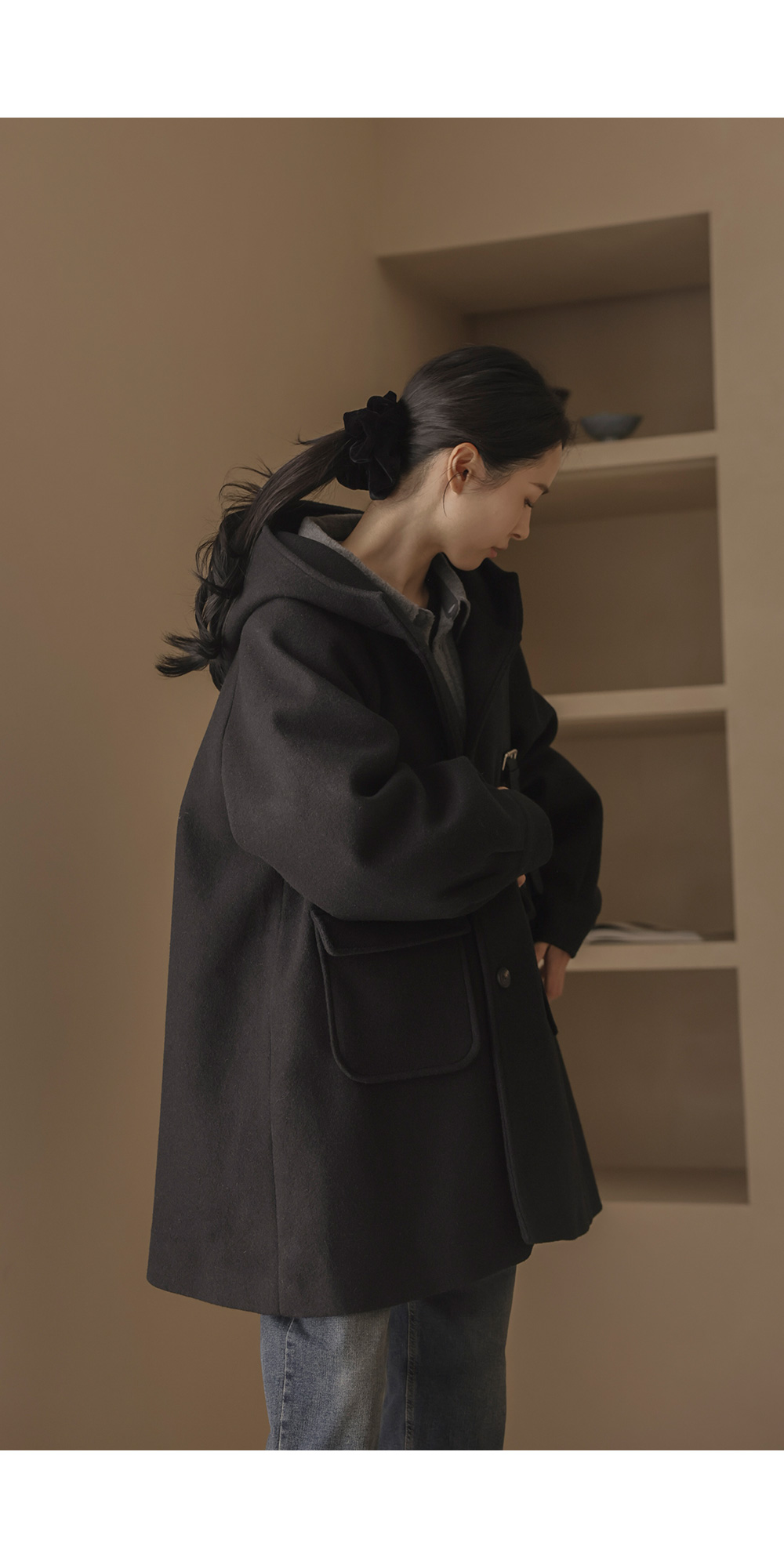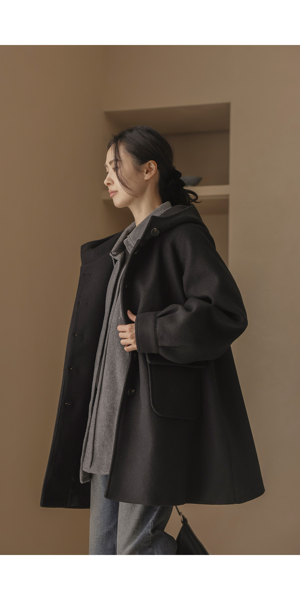 케리본 울 후드코트 _ 크림,블랙