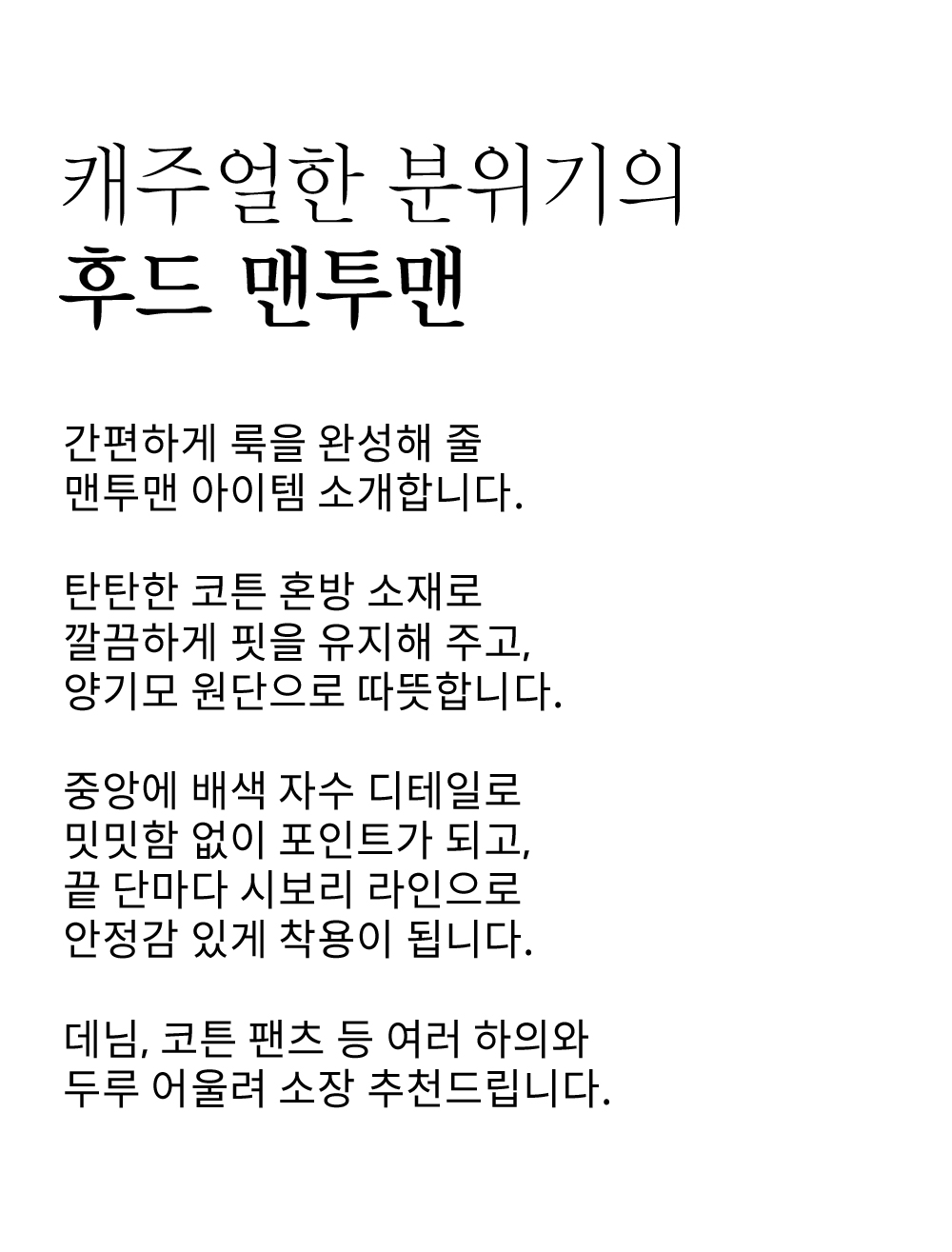 핏감 살짝루즈  /   전체길이 힙반  /