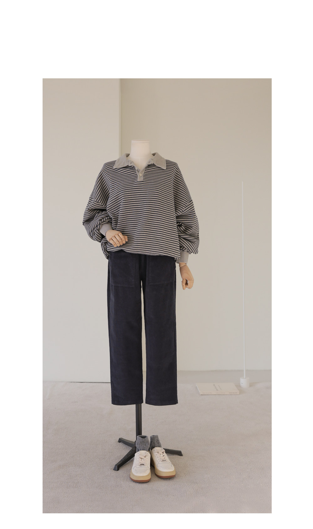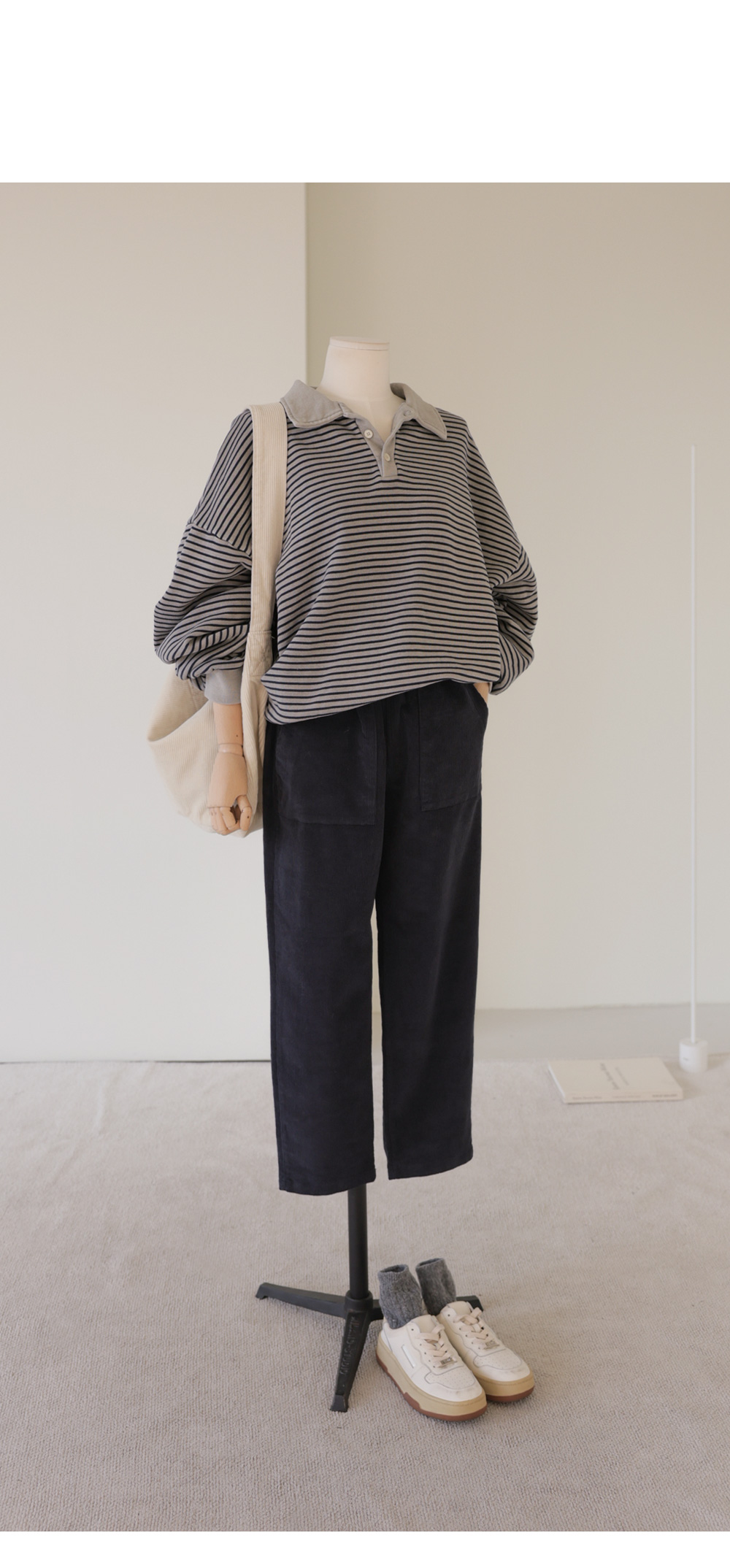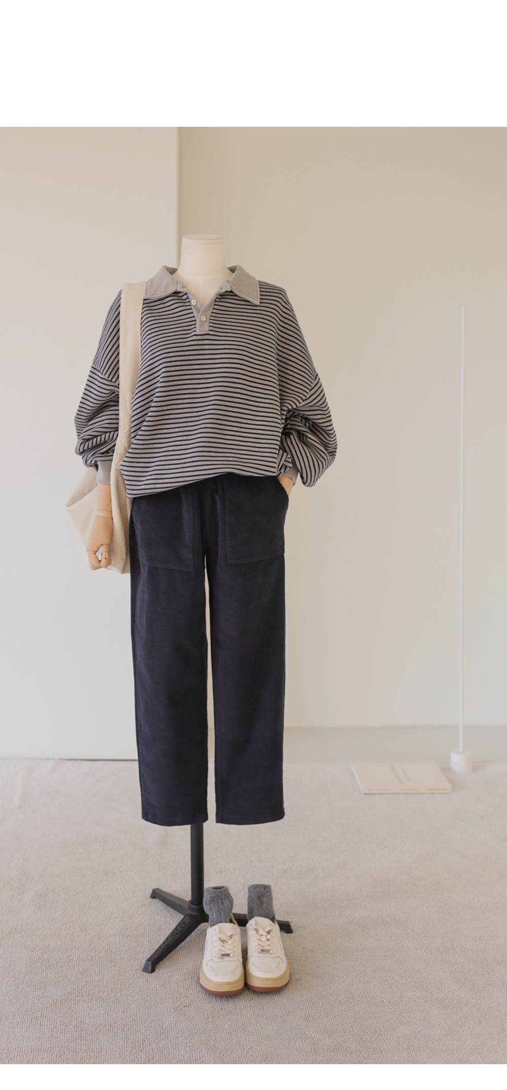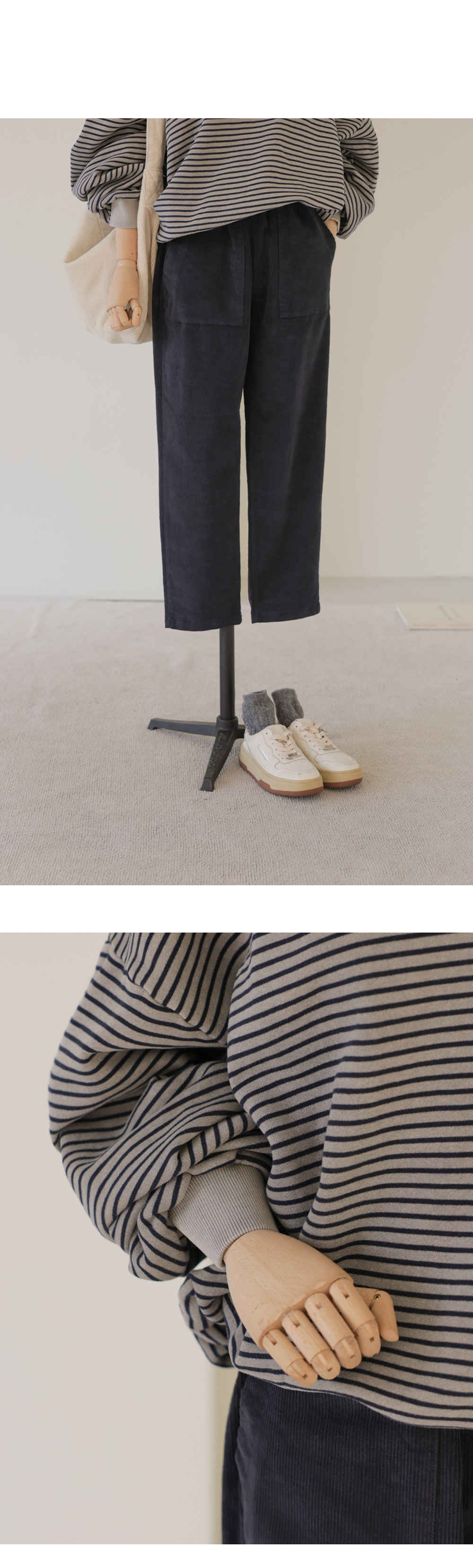 마레우 슬림배기 팬츠 _ 네이비,크림