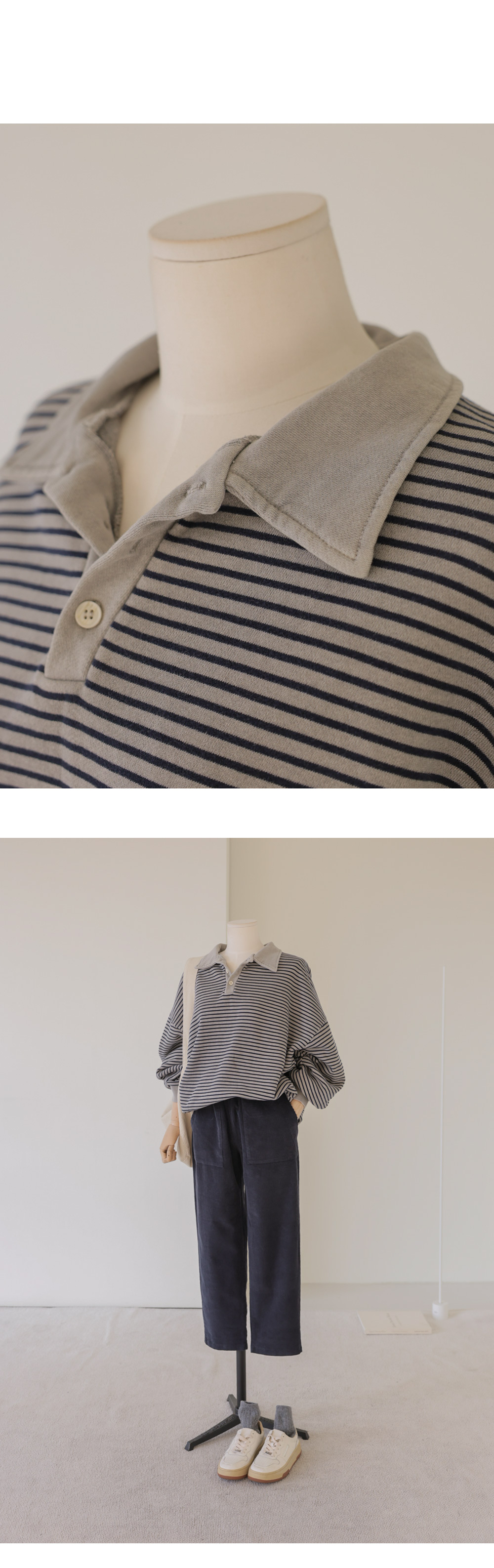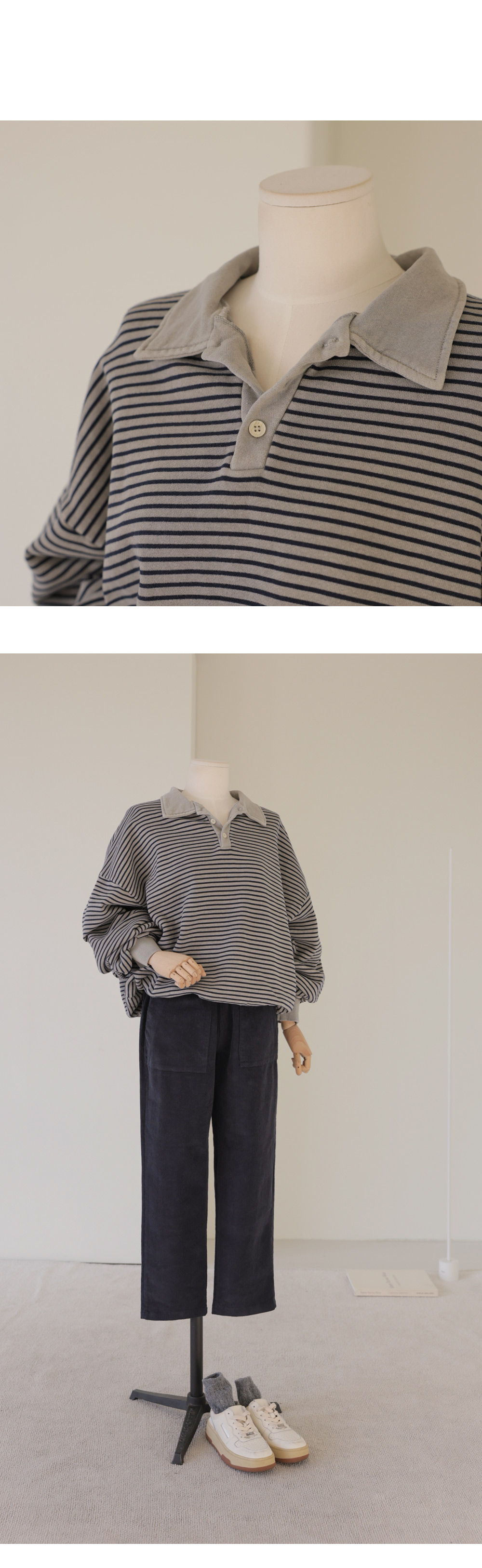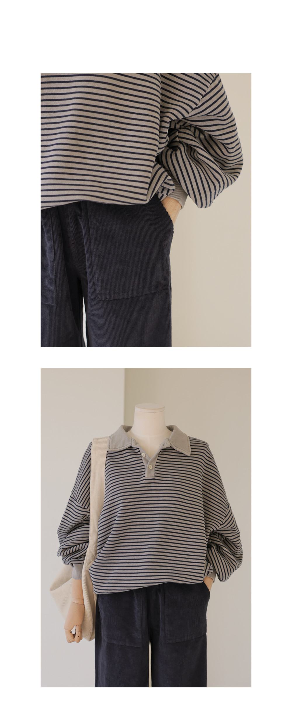 테보린 카라 맨투맨 _ 그레이