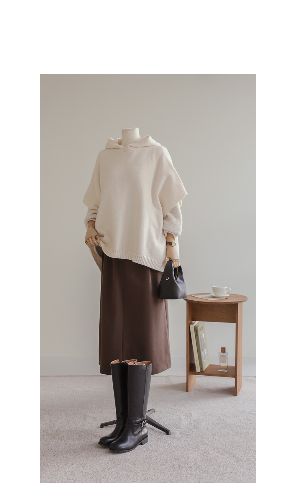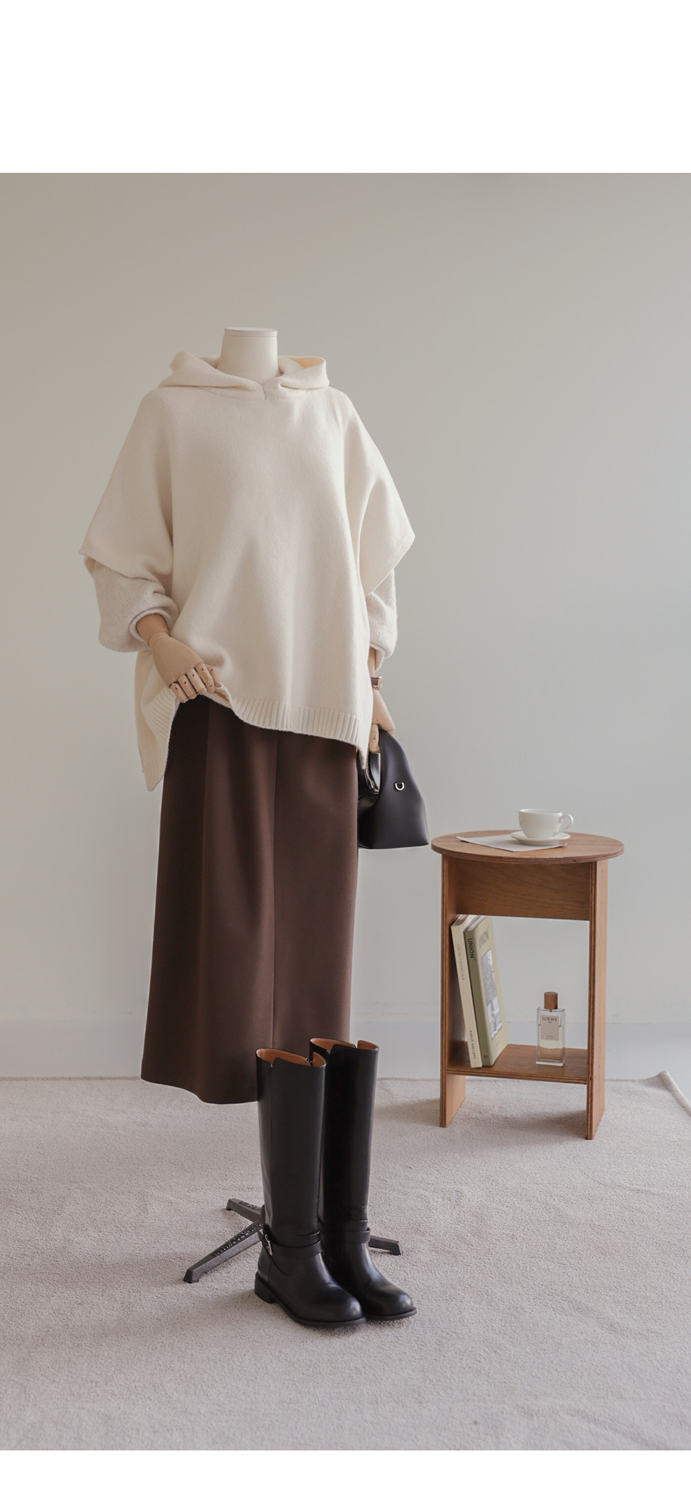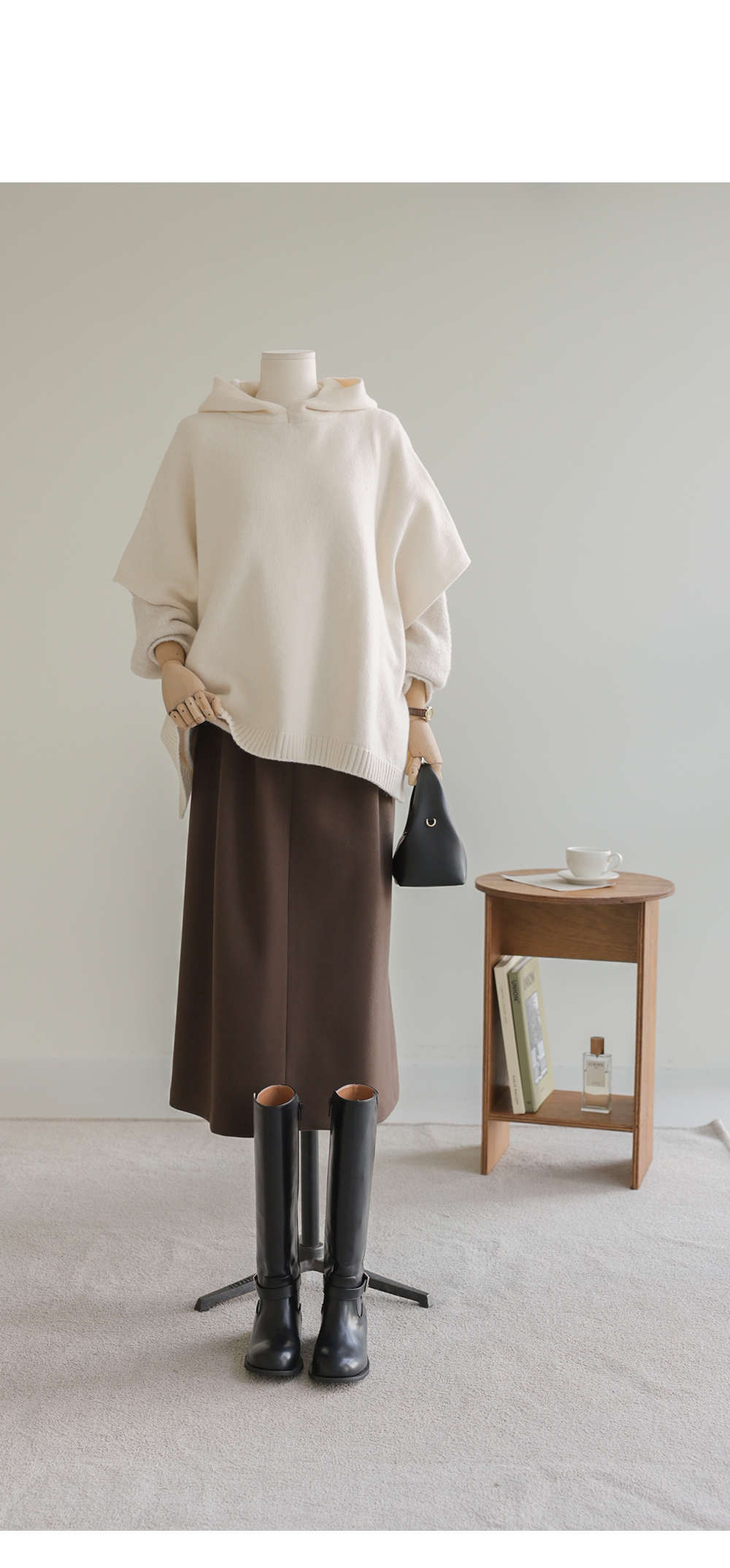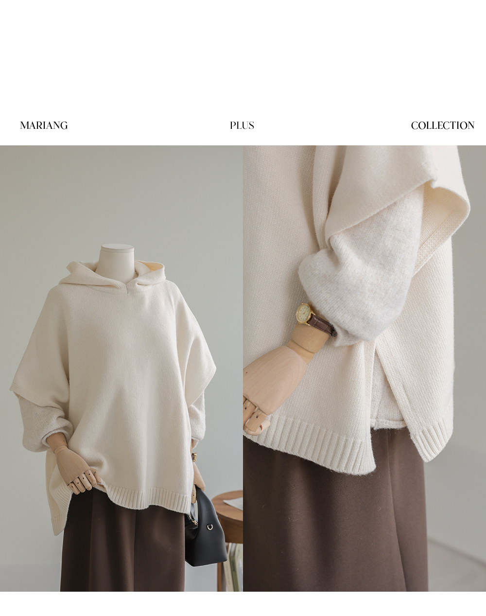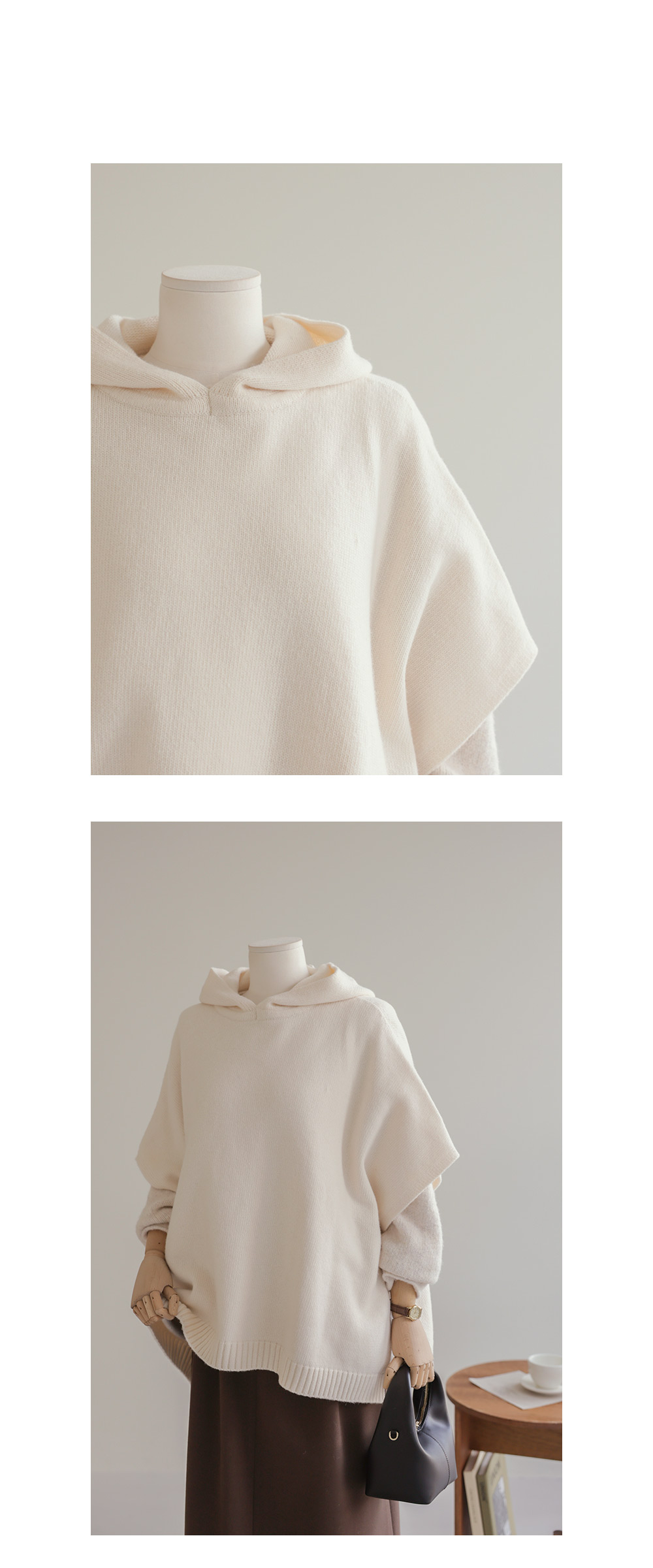 바디엘 울 후드케이프 _ 아이보리,블랙