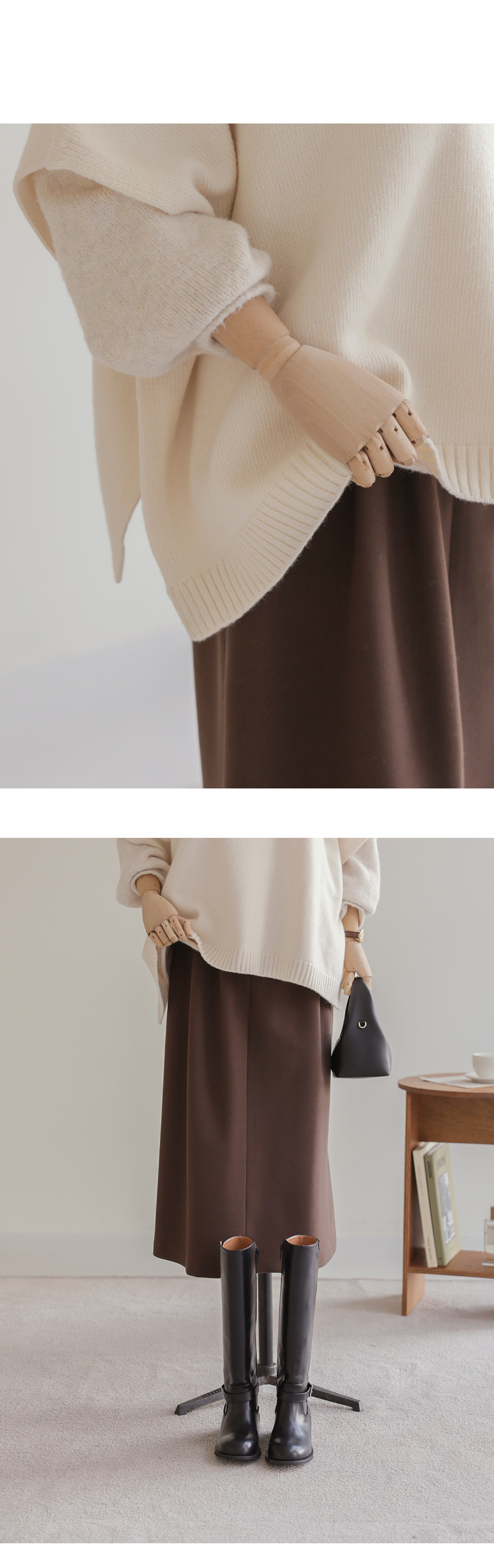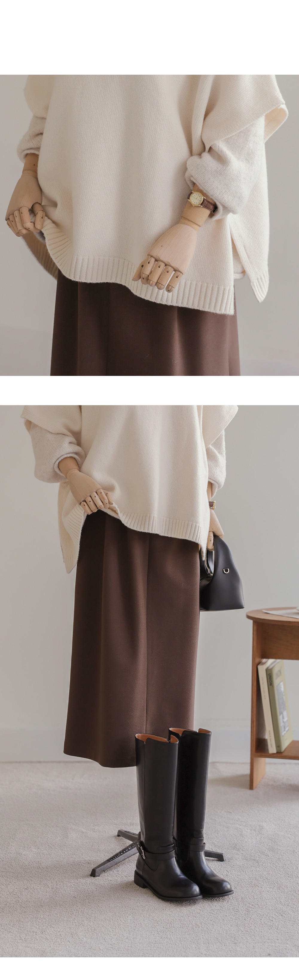 타비안 핀턱 스커트 _ 브라운
