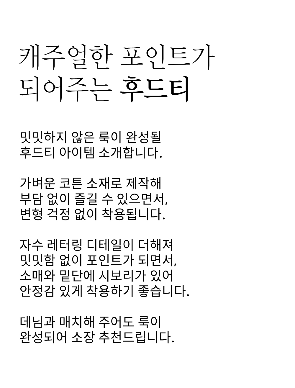 핏감 여유  /   전체길이 힙덮음  /