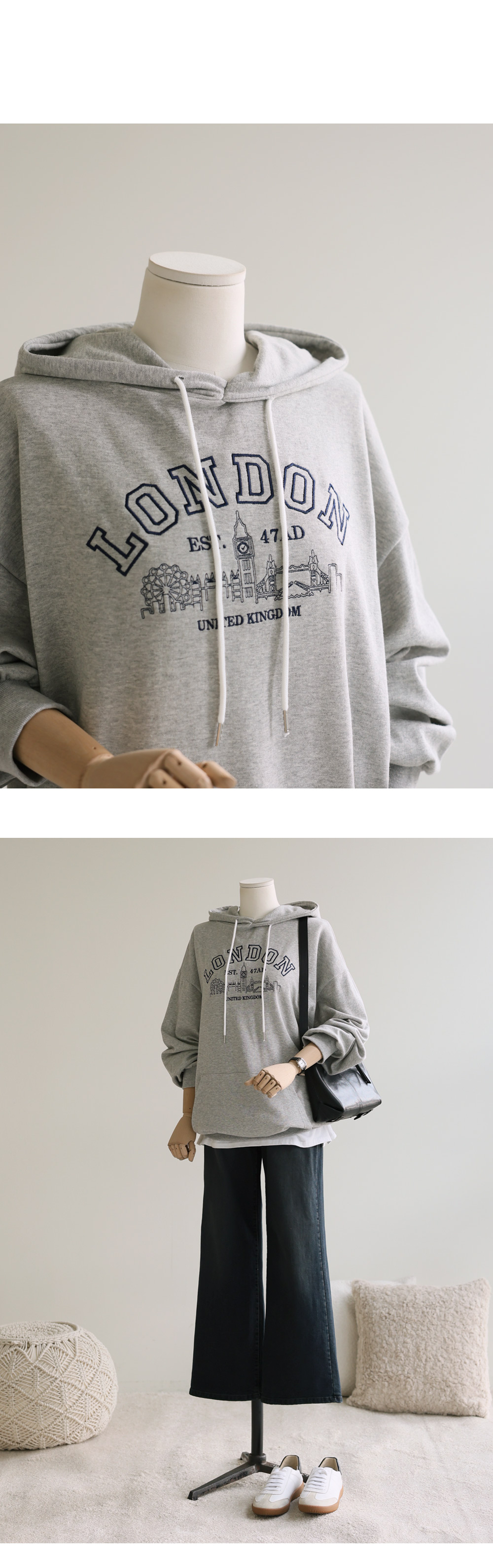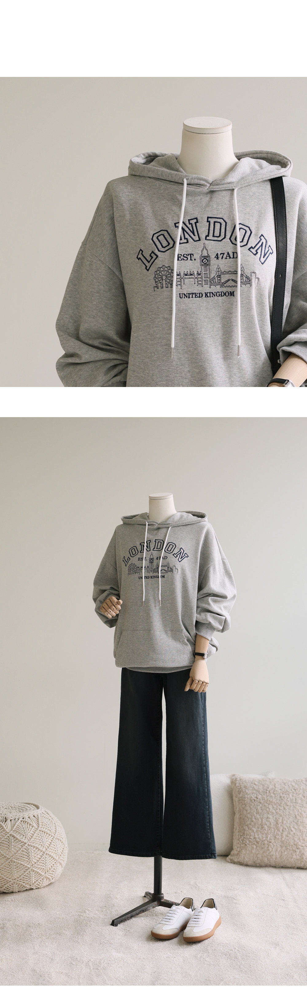 비토르 자수 후드티 _ 그레이