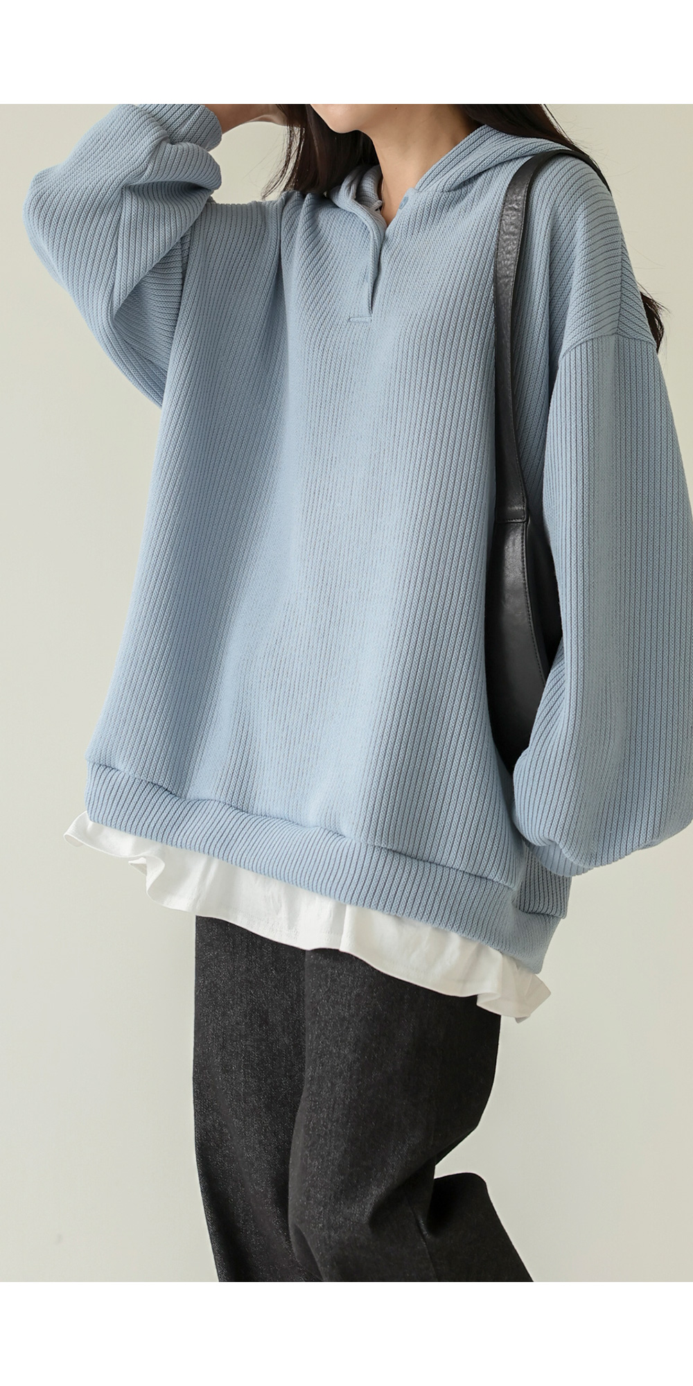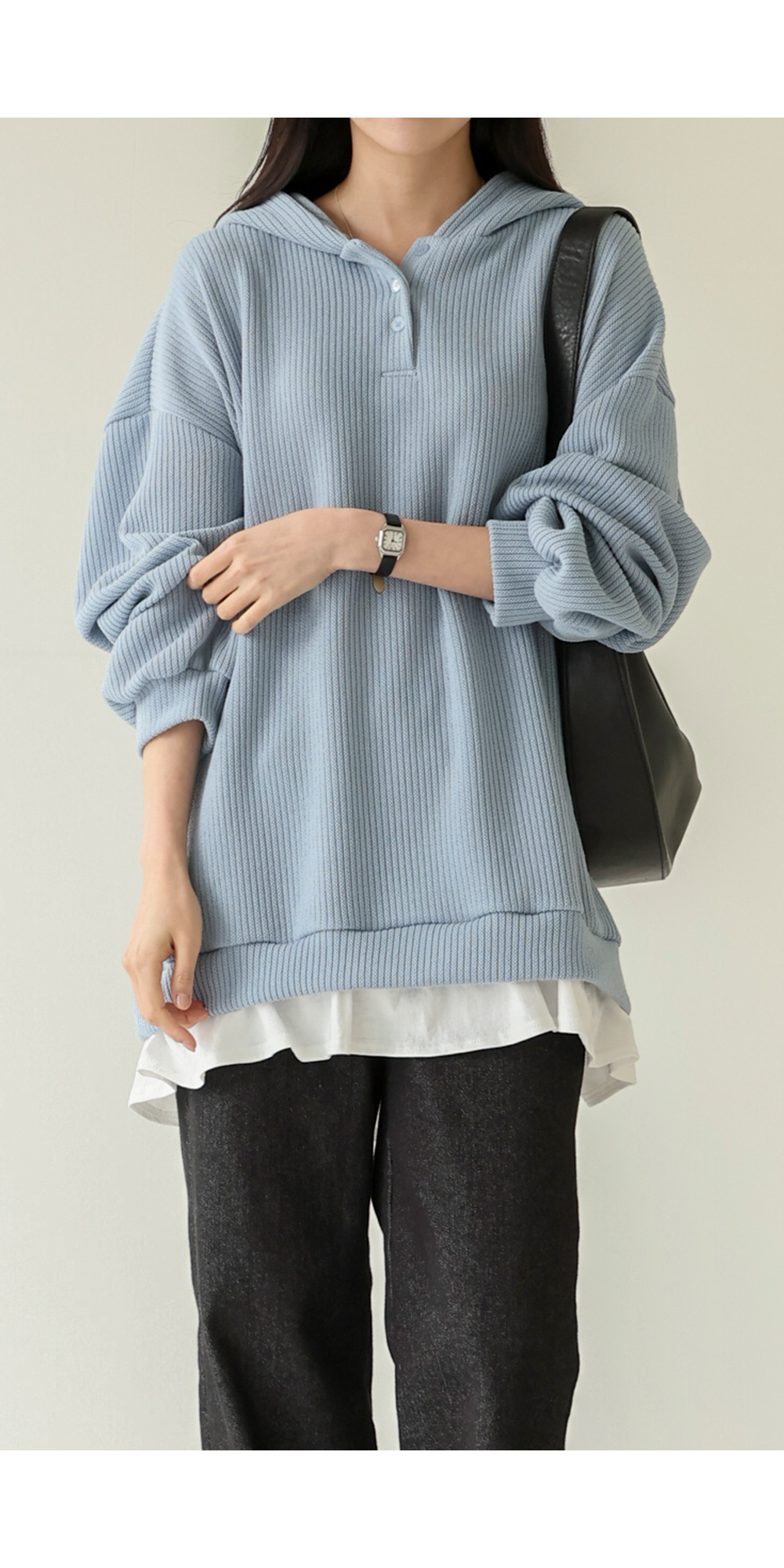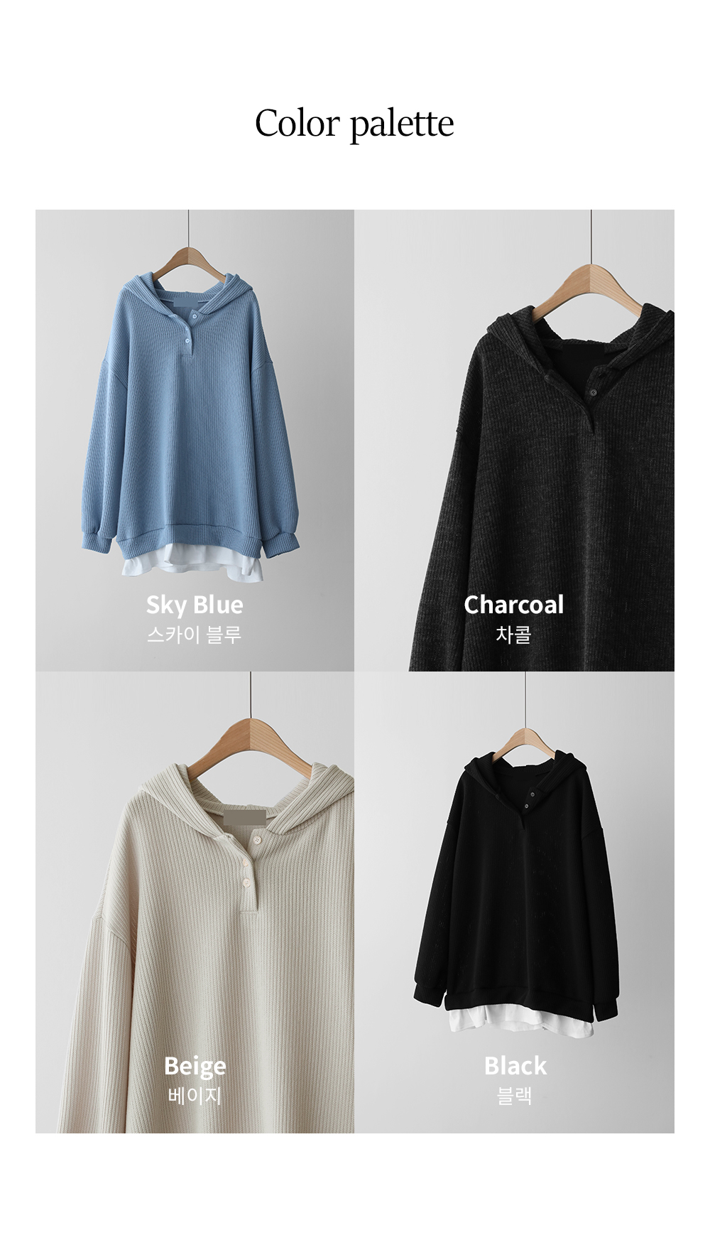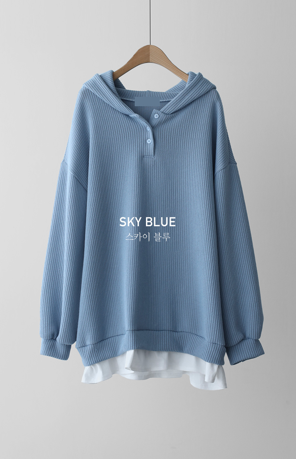 사이킨 레이어드 후드티 _ 스카이블루,베이지