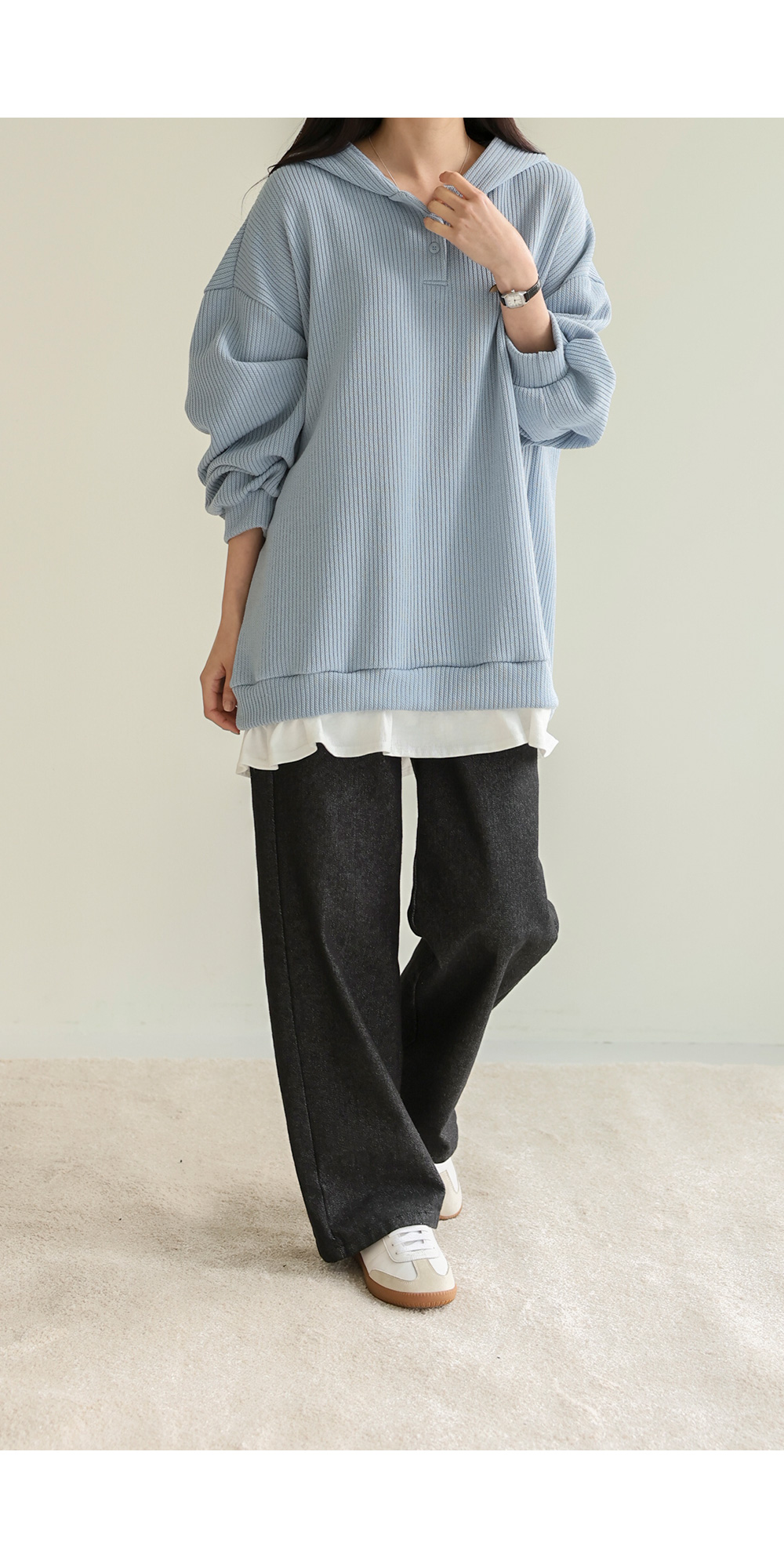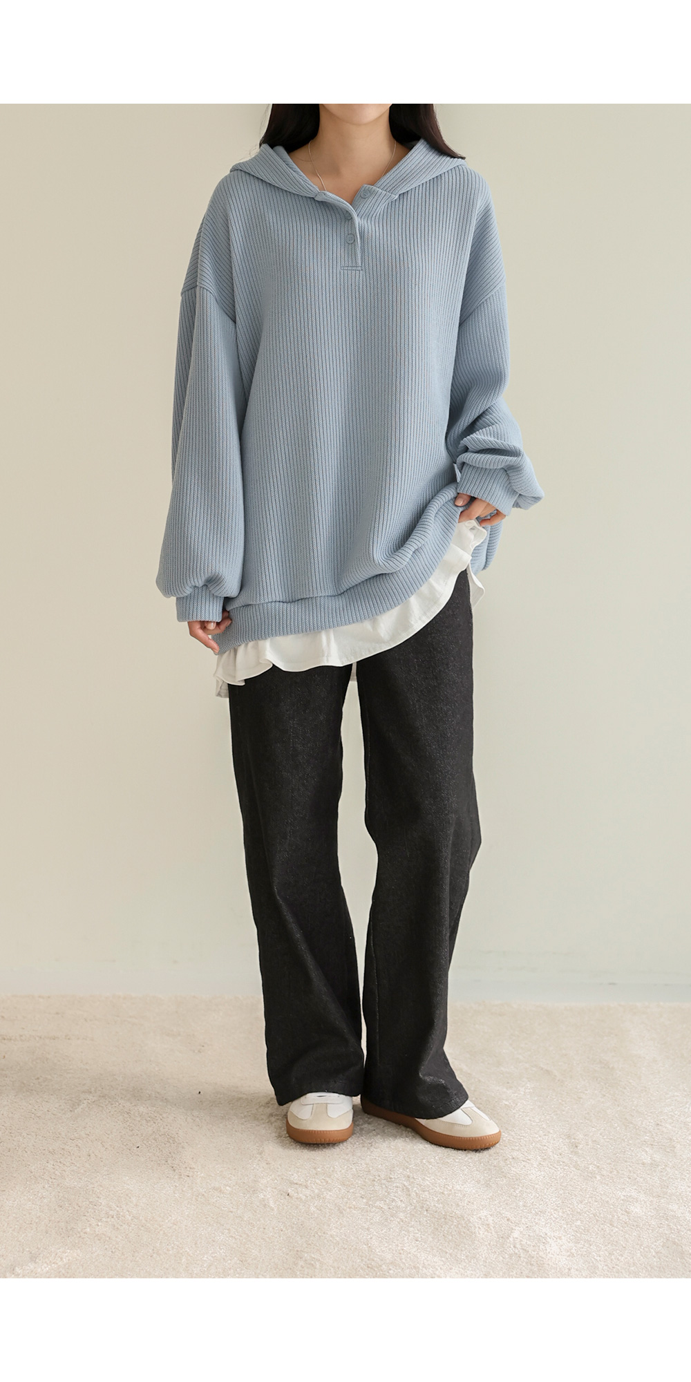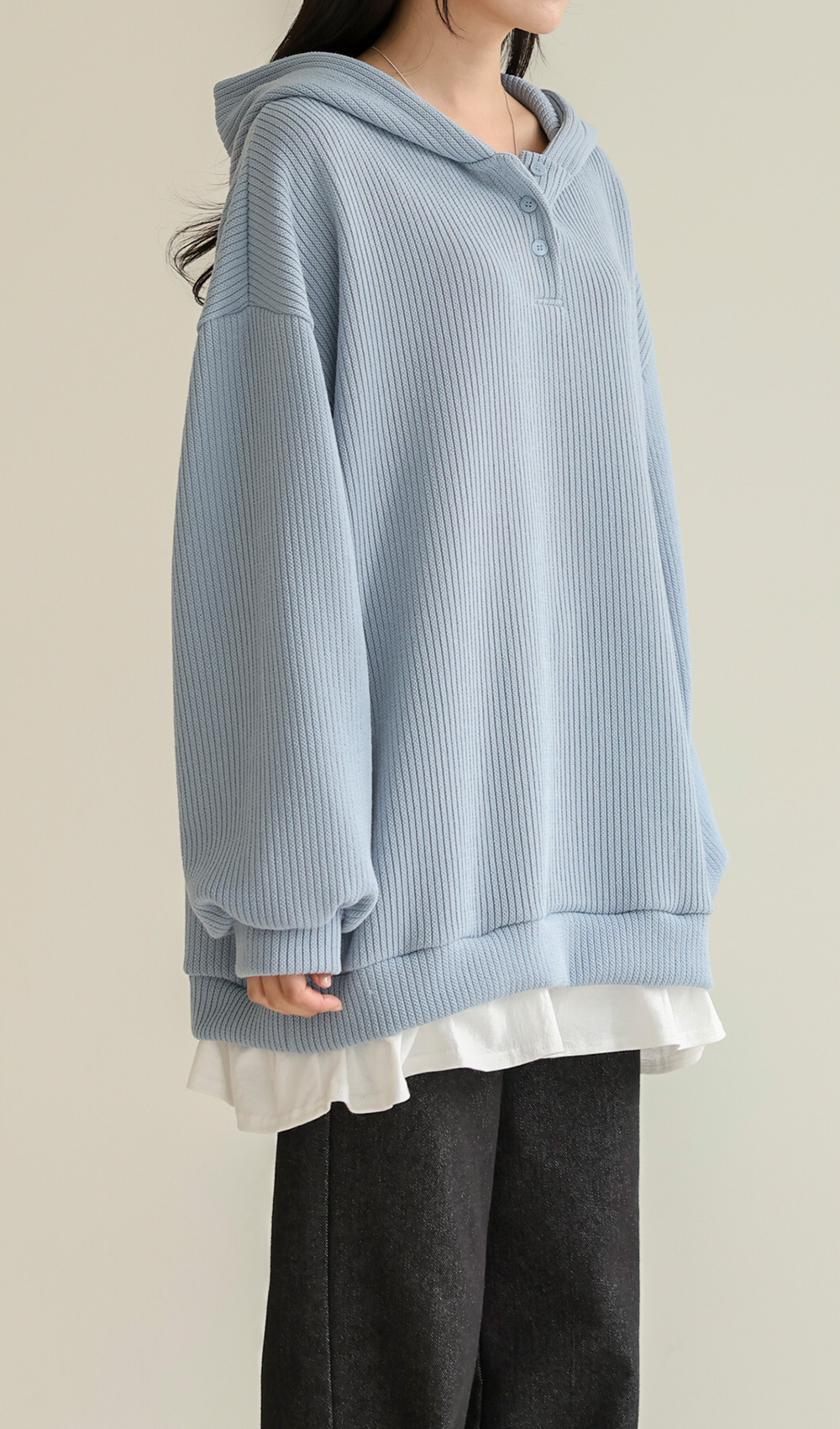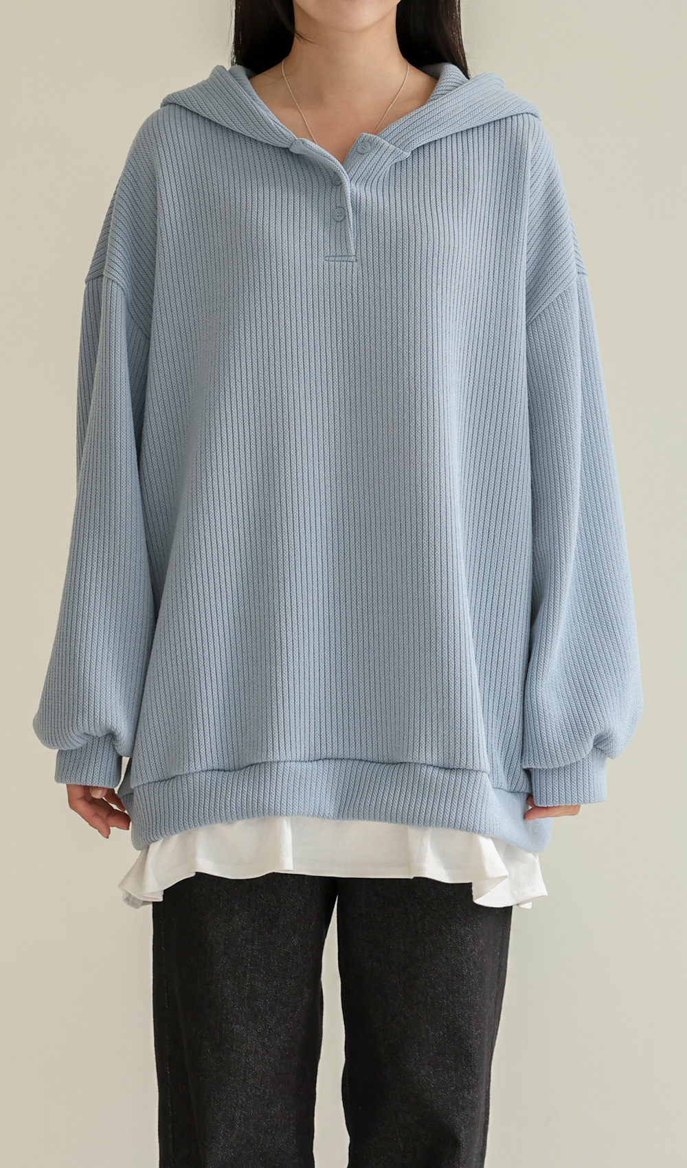 사이킨 레이어드 후드티 _ 스카이블루,베이지