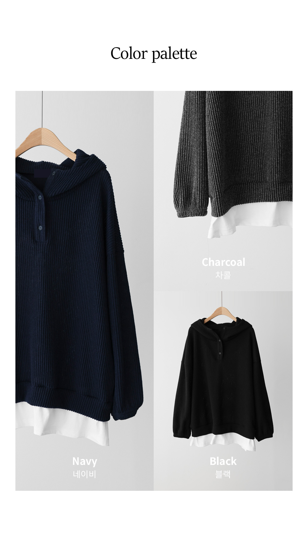 윈라노 레이어드 후드티 _ 네이비,차콜