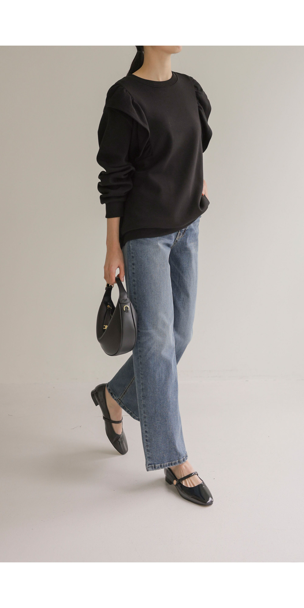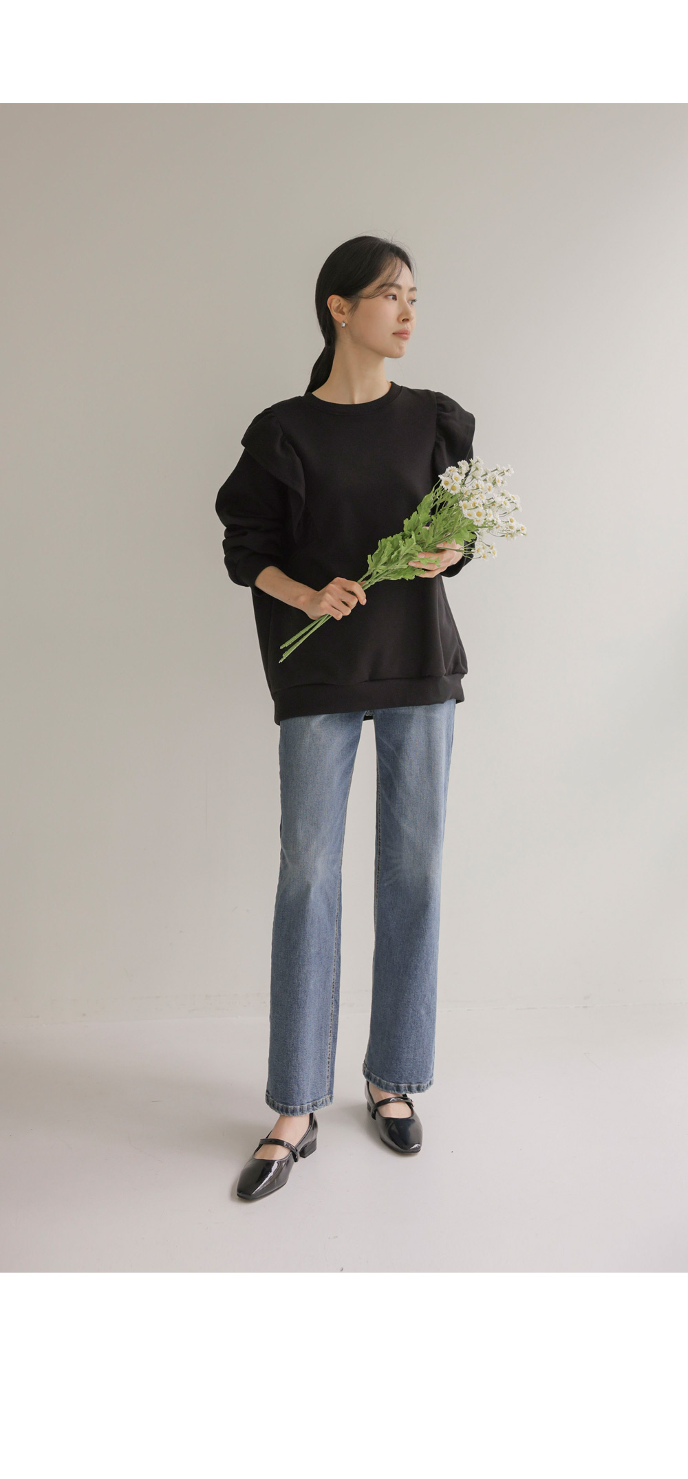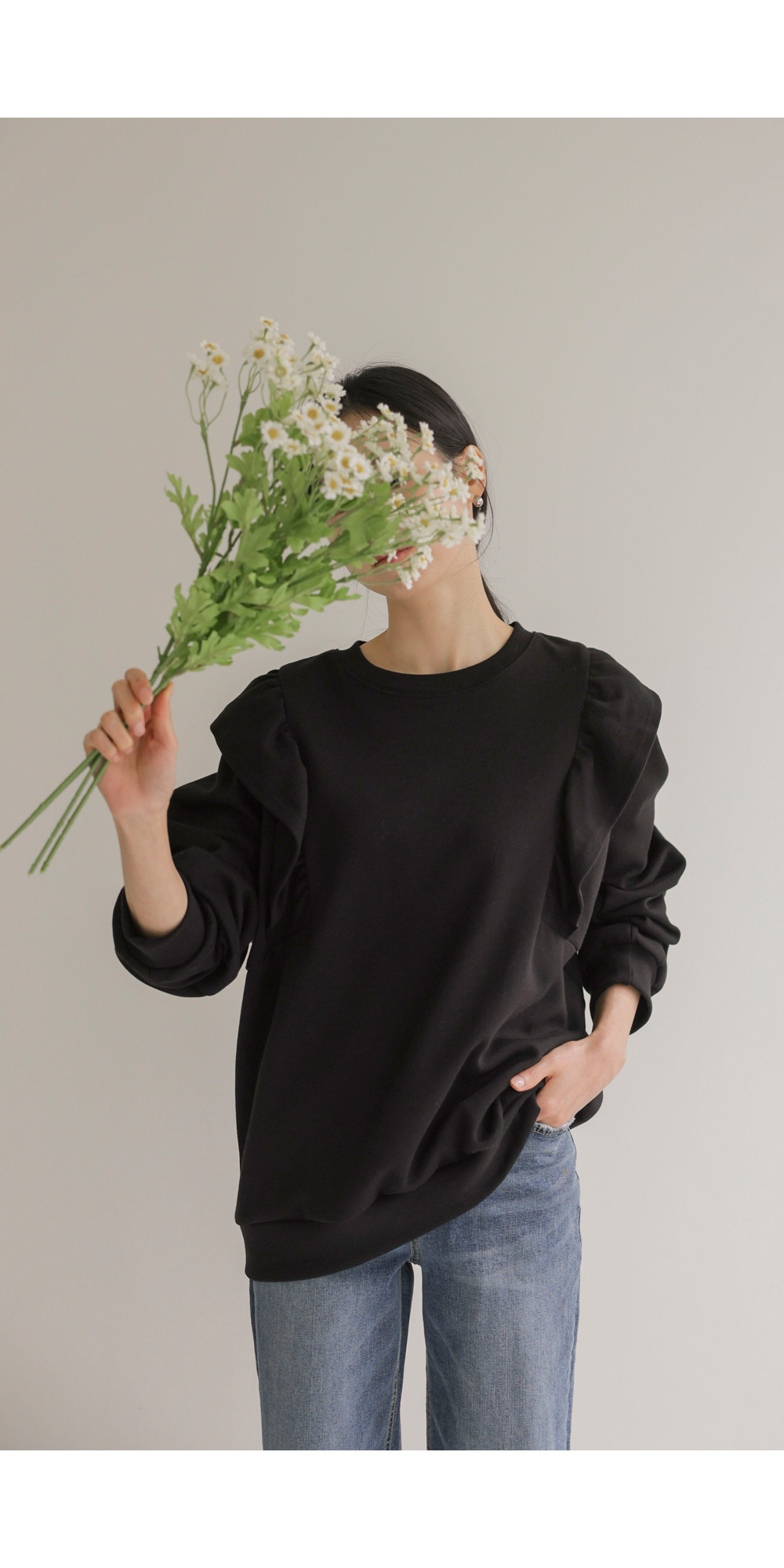 라이팅 프릴 맨투맨 _ 블랙