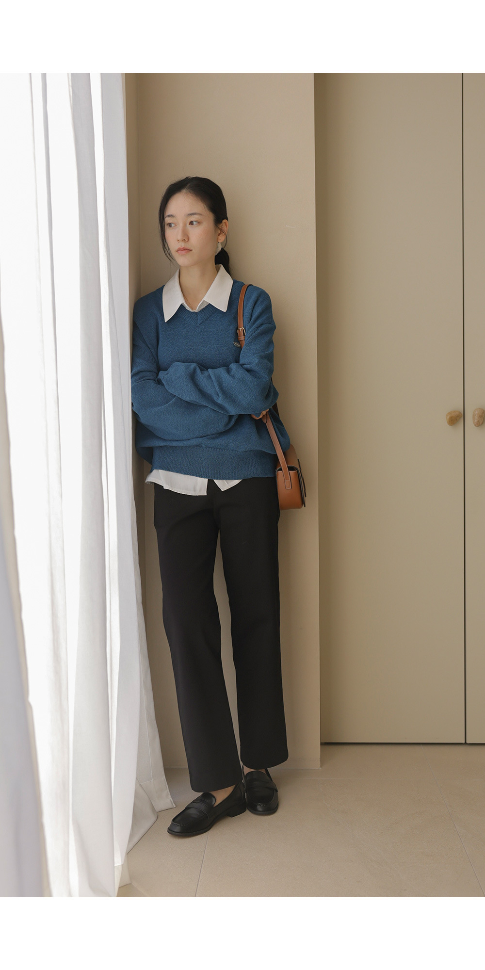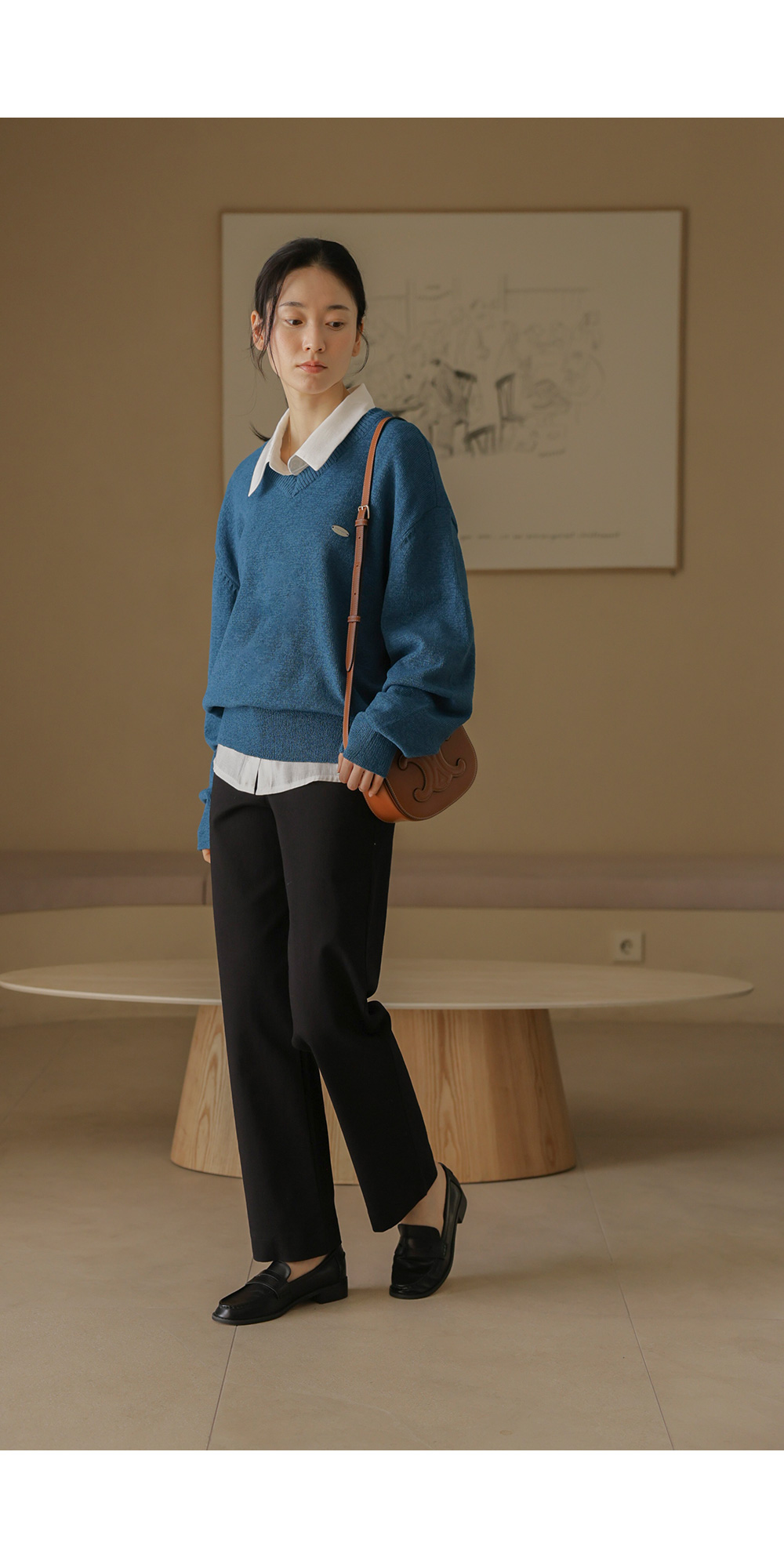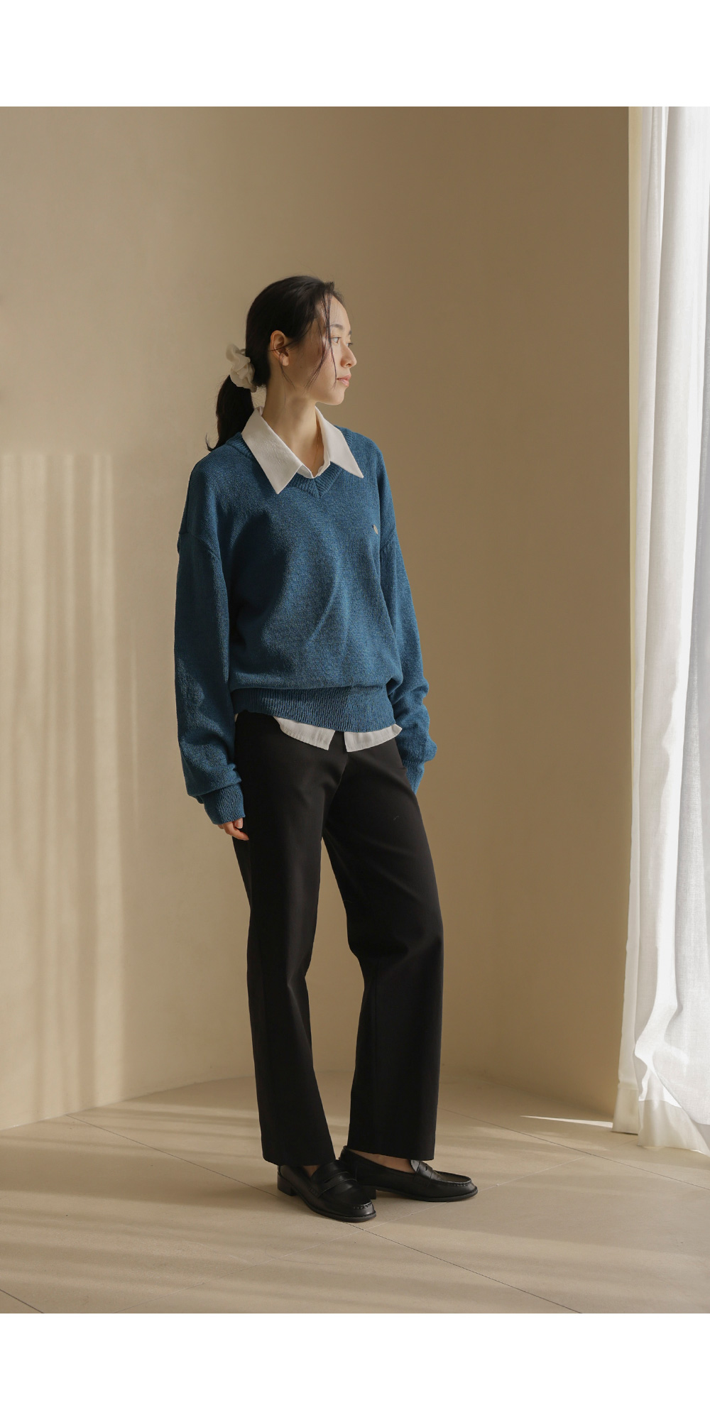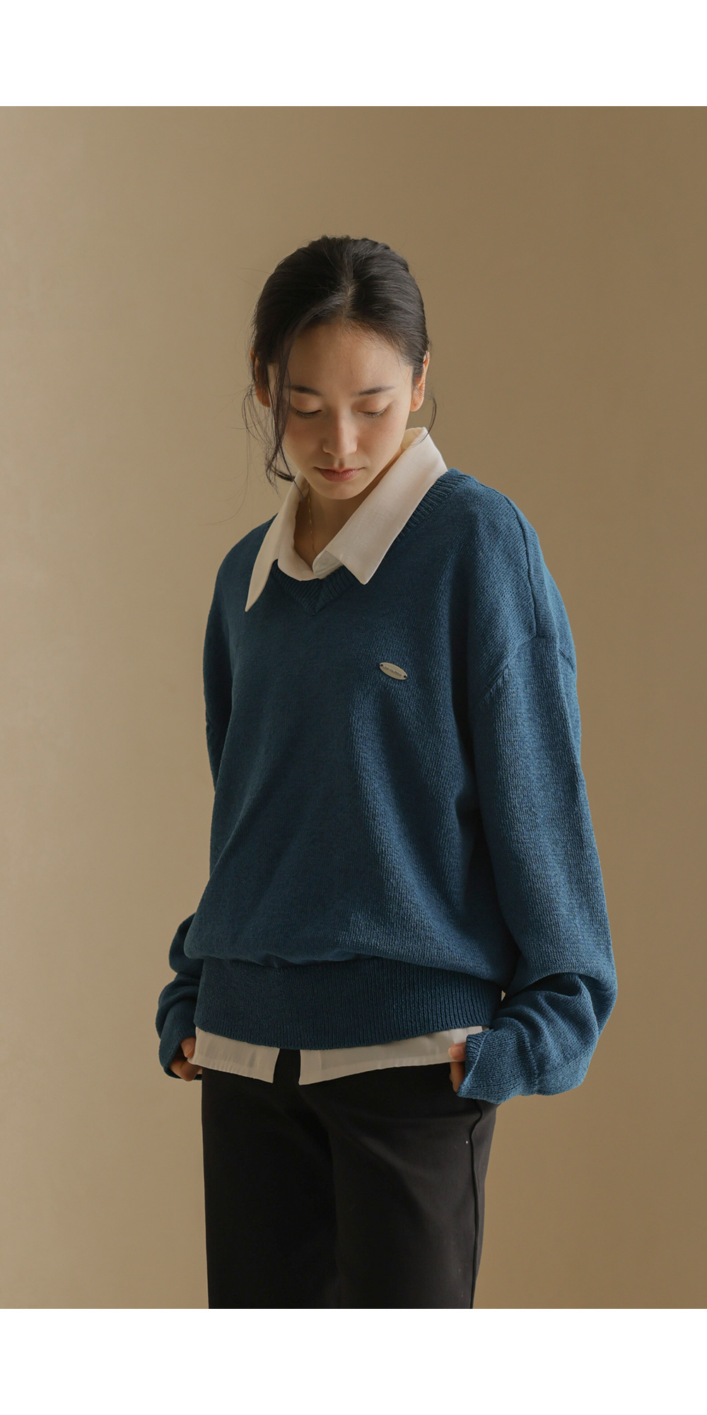 샤트렌 브이넥 니트 _ 블루