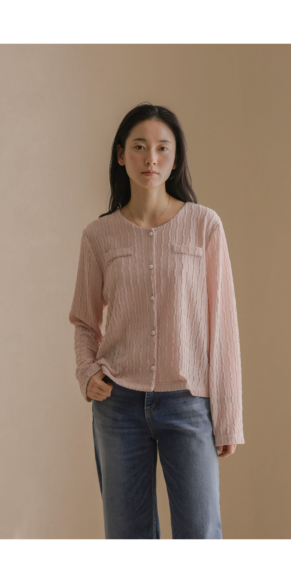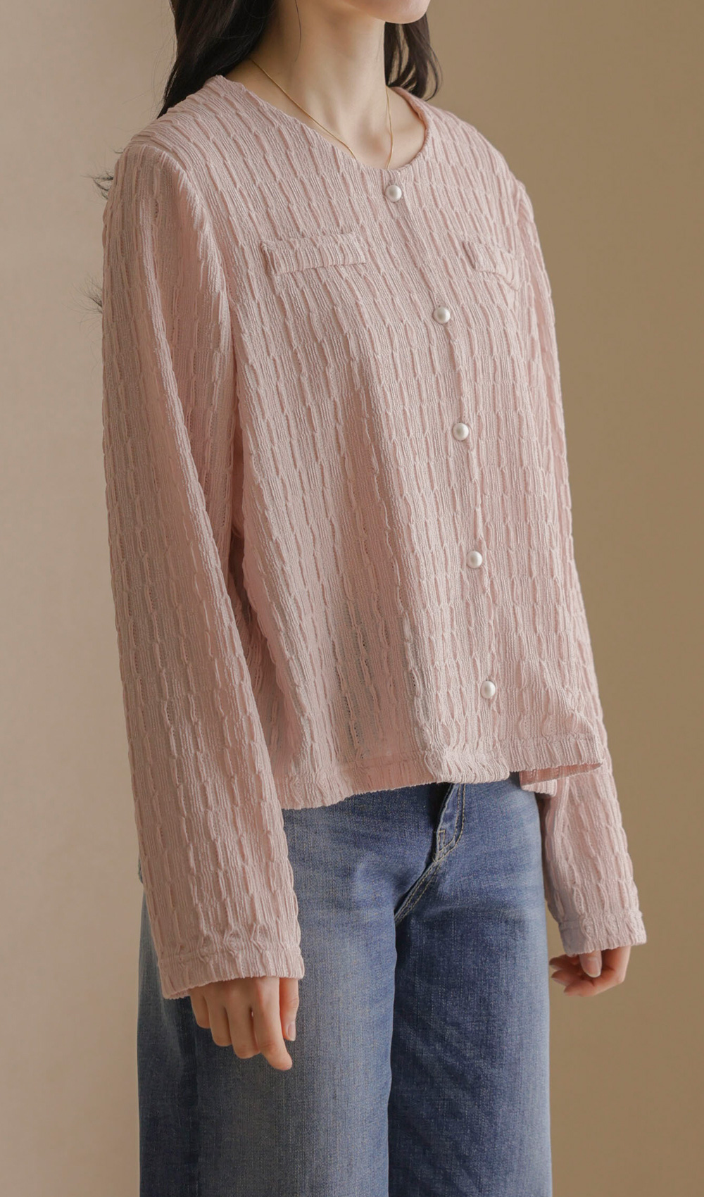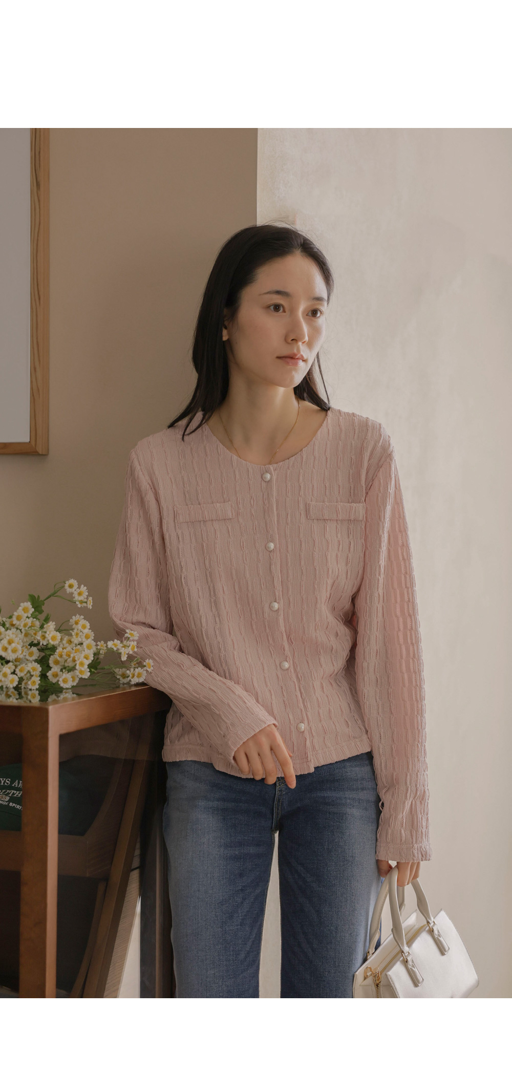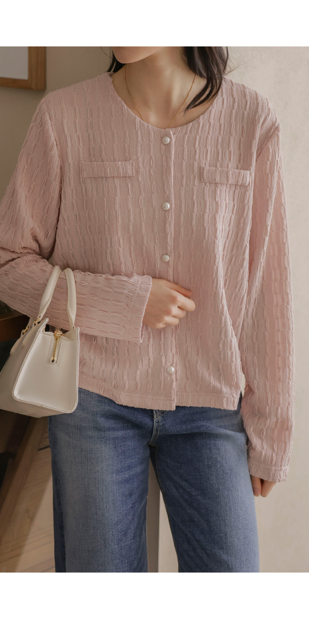 유레안 진주 블라우스 _ 핑크,블랙