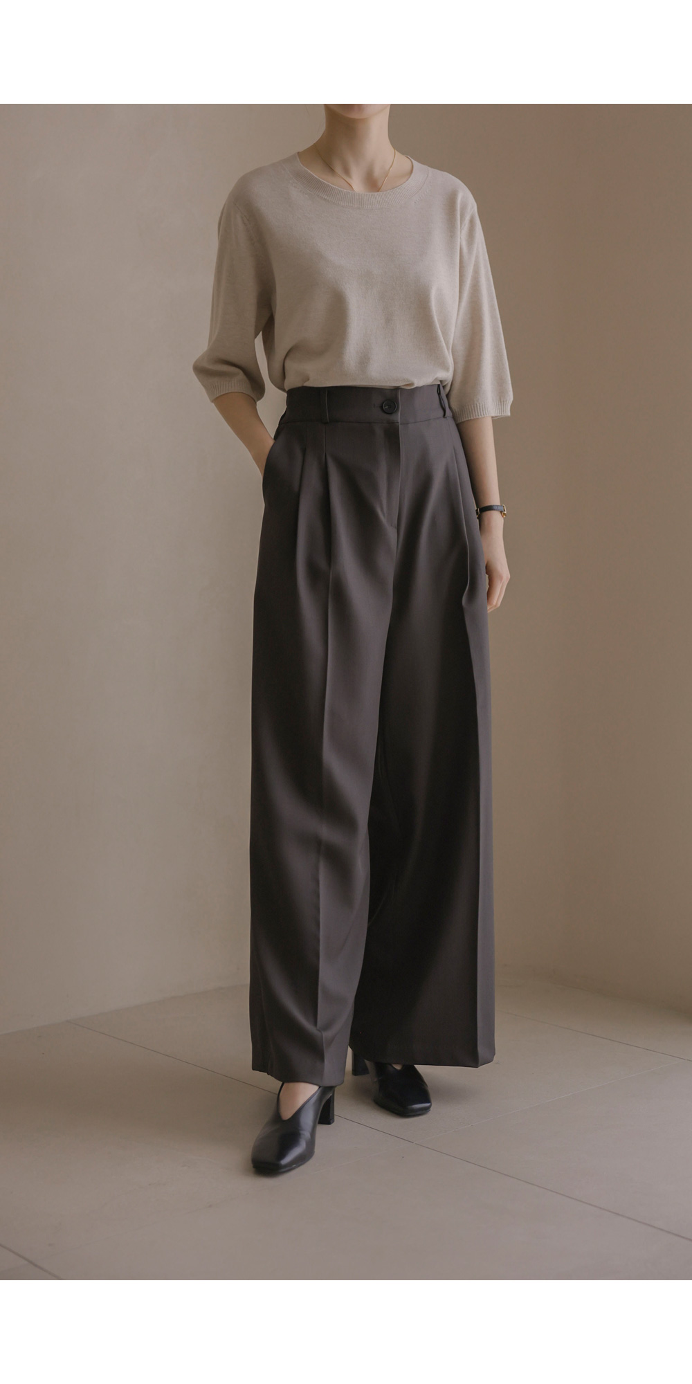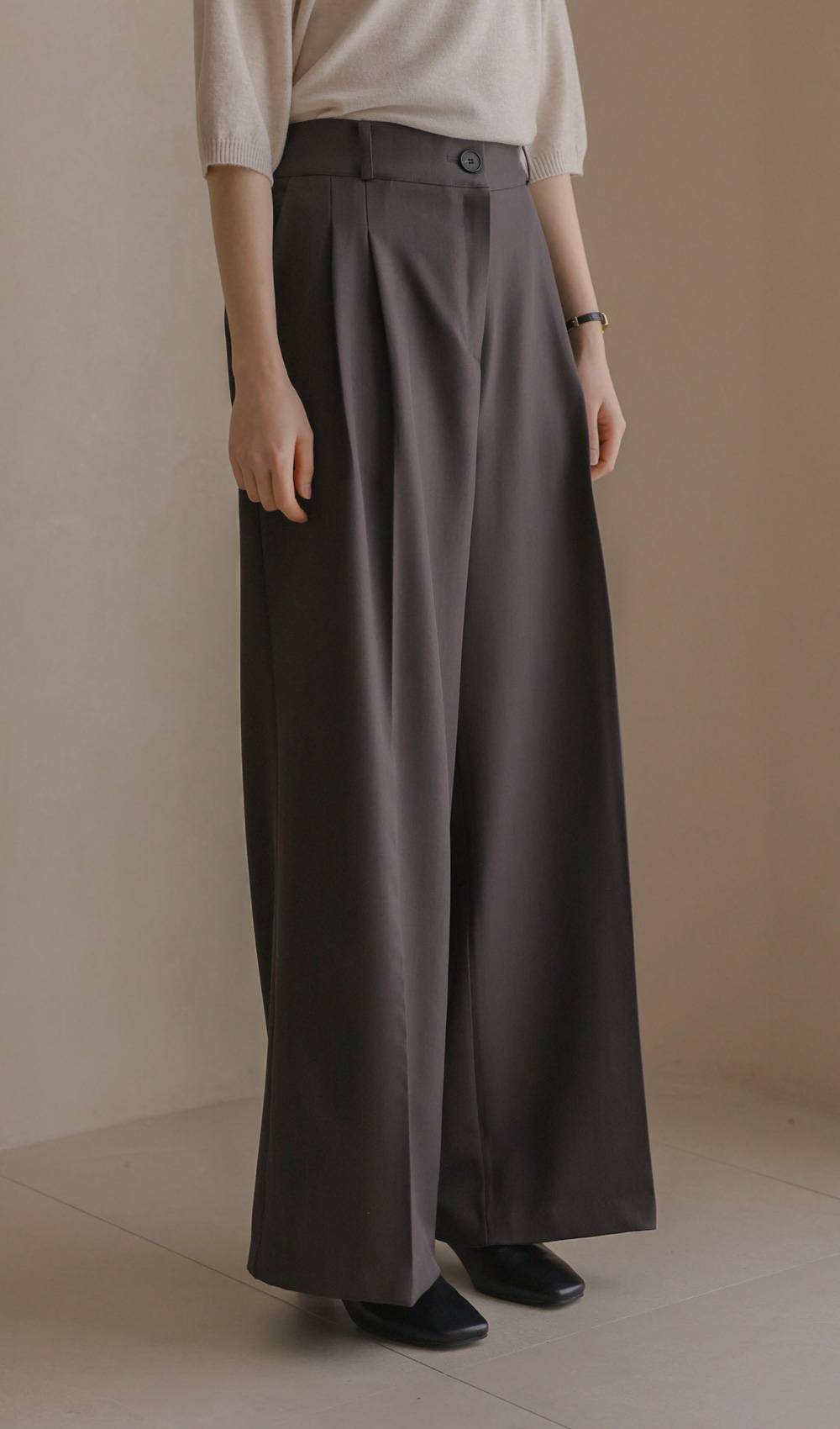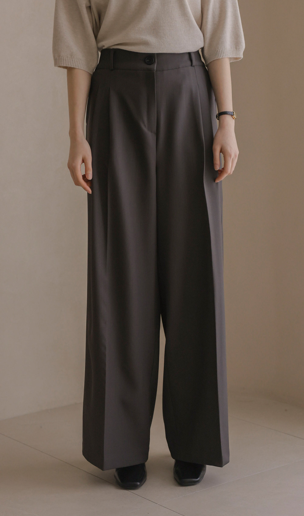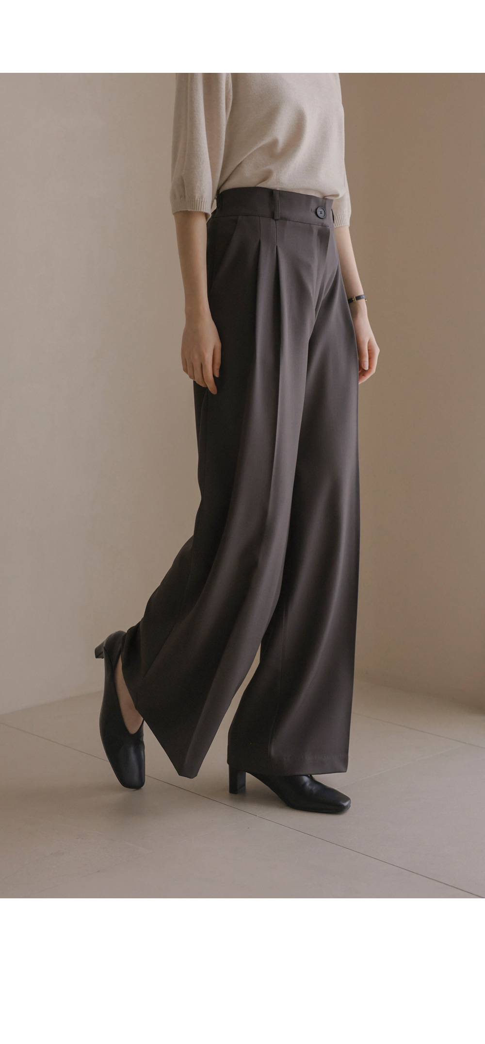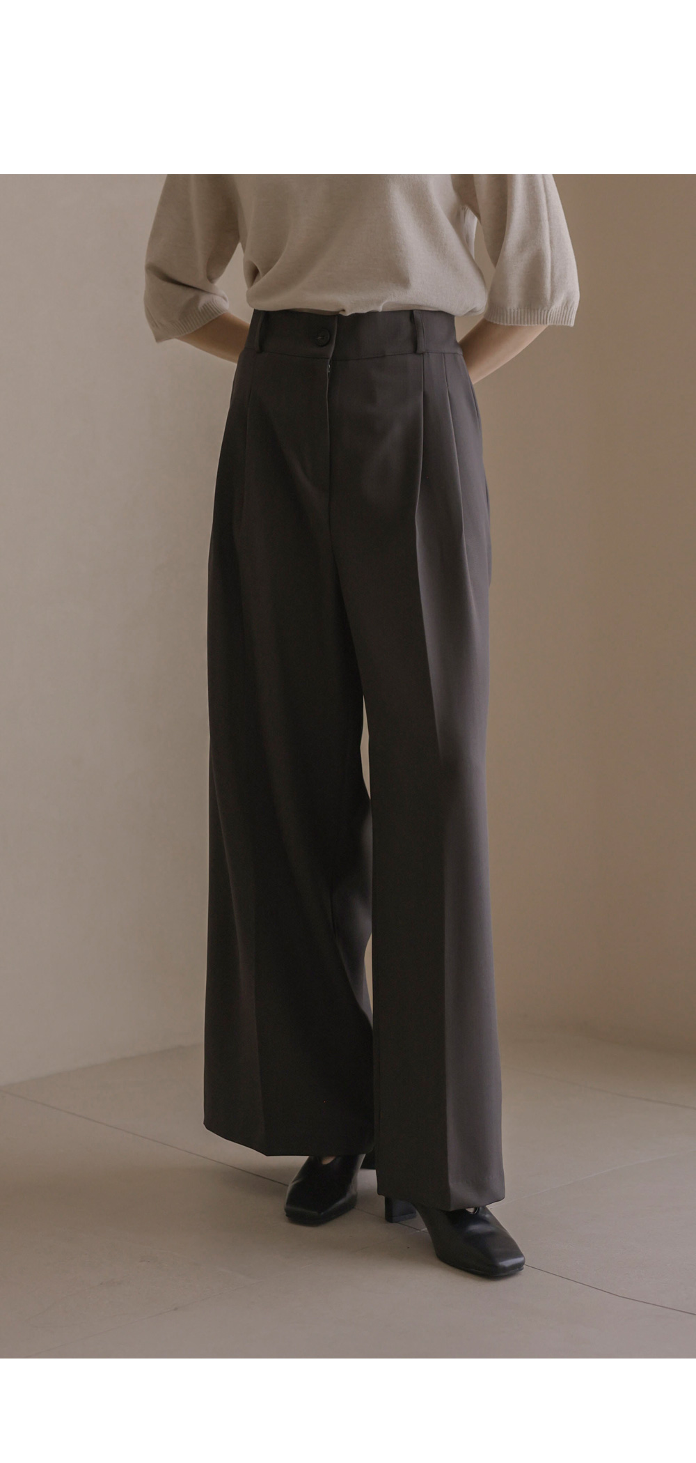 온유리 와이드 롱팬츠 _ 차콜