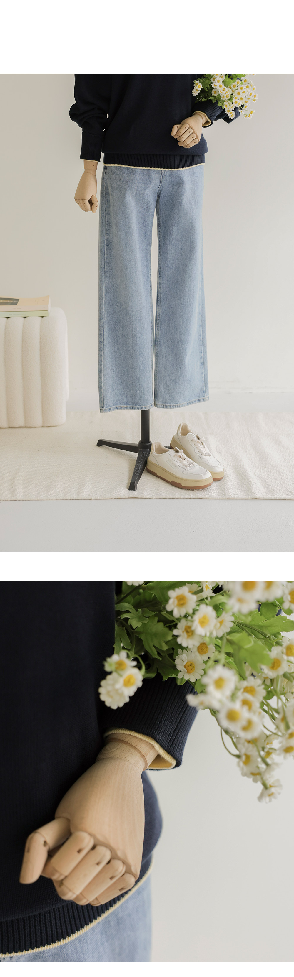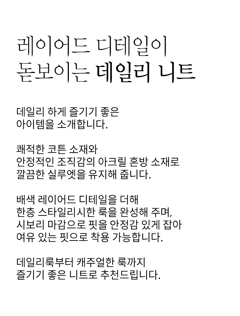 소매핏 살짝여유  /   소매길이 손덮음