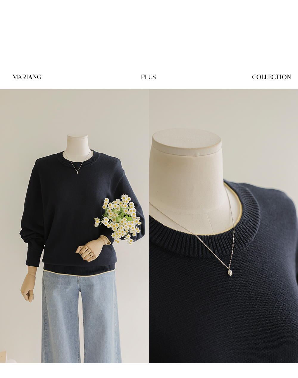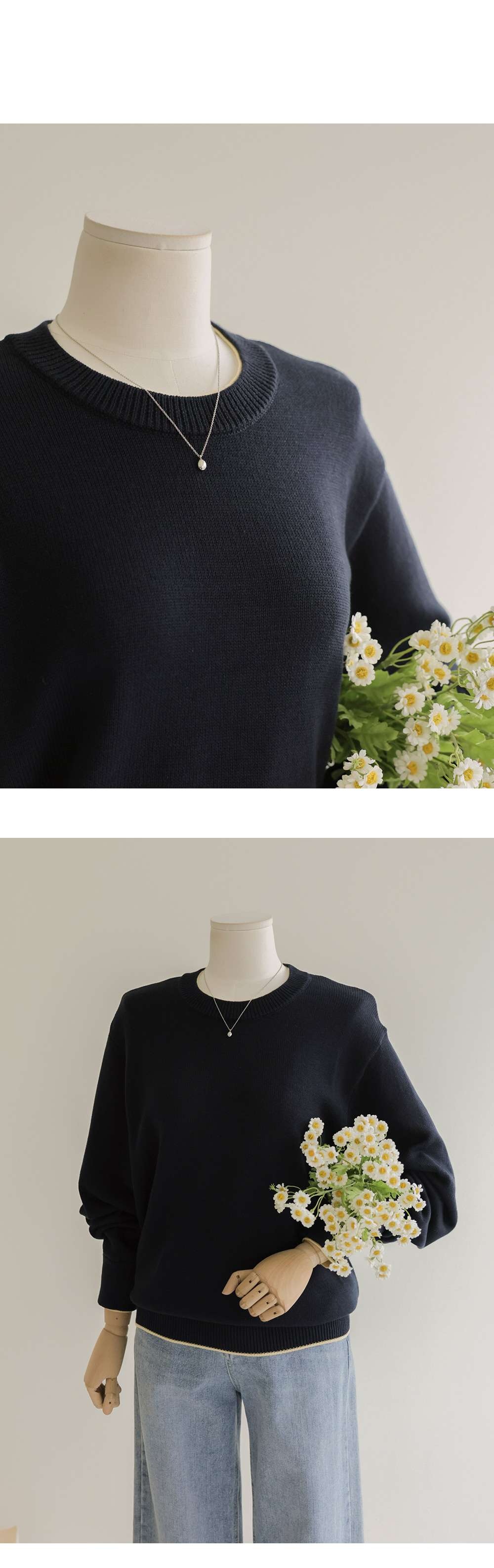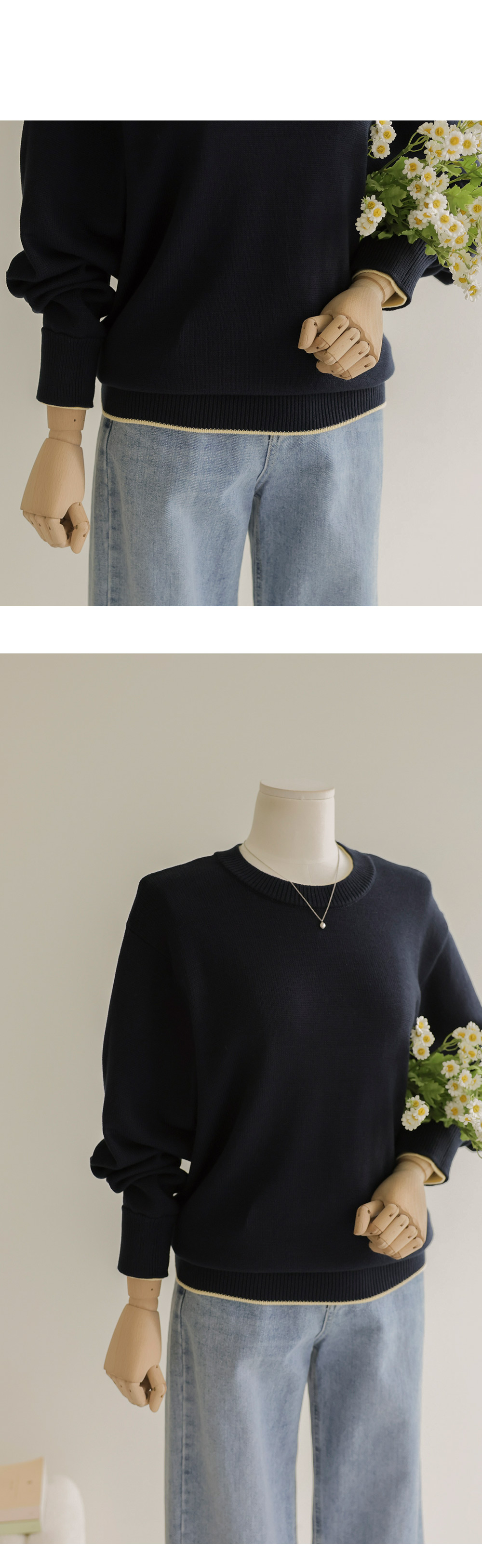 프레야 배색 니트 _ 네이비