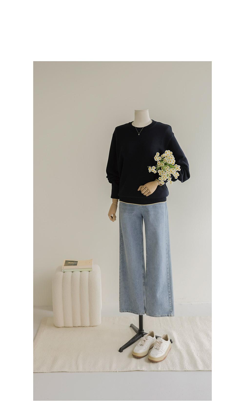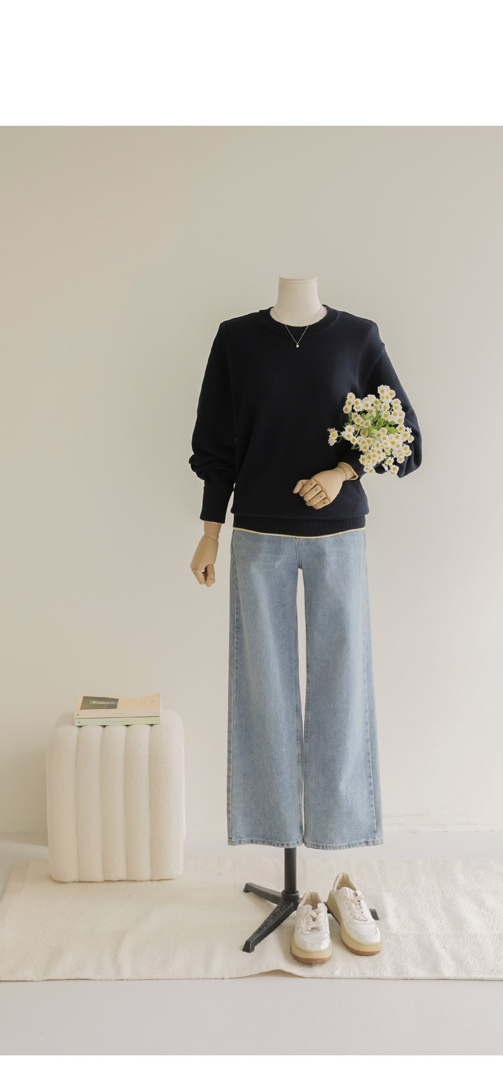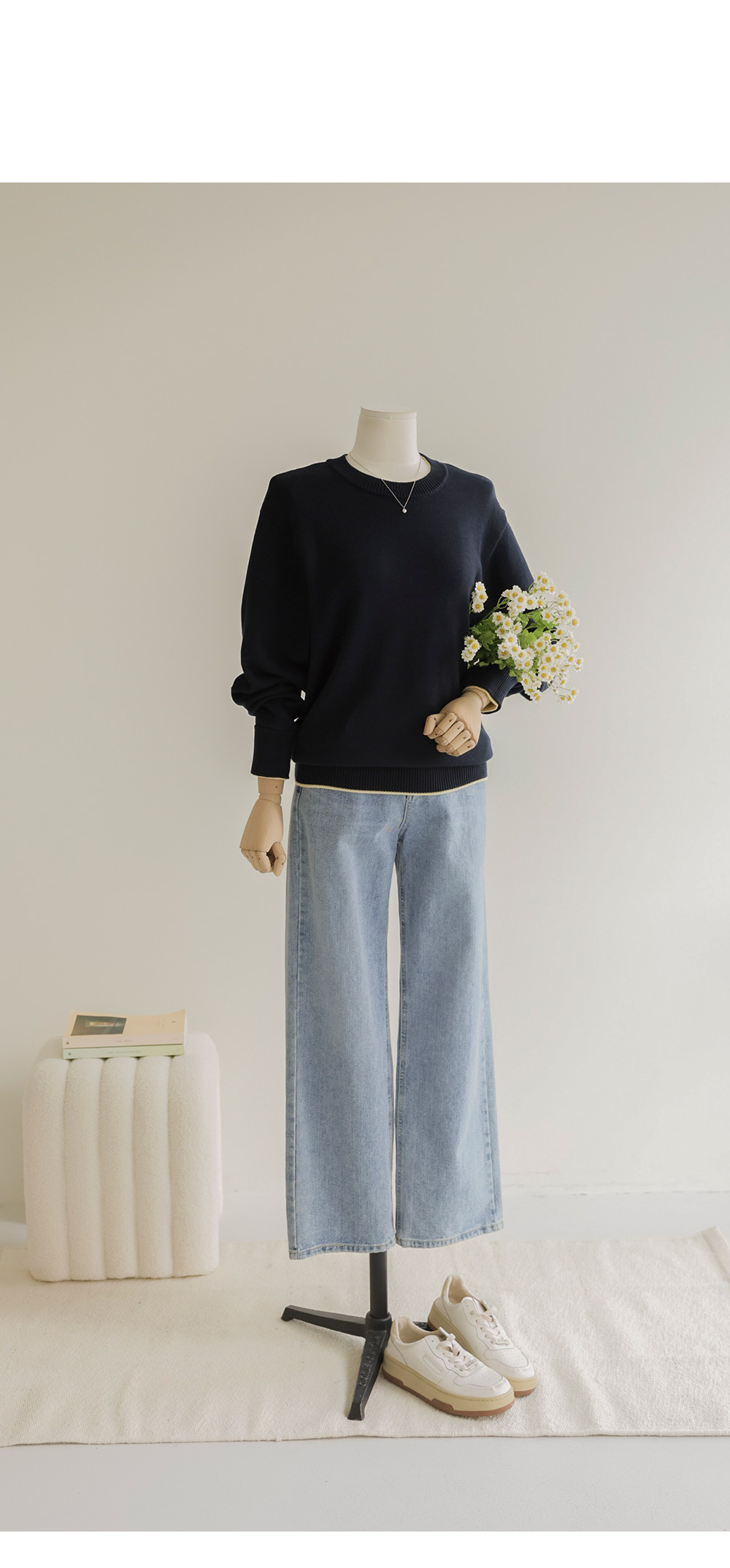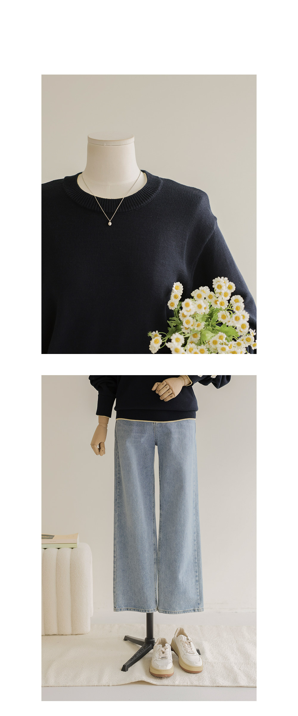프레야 배색 니트 _ 네이비