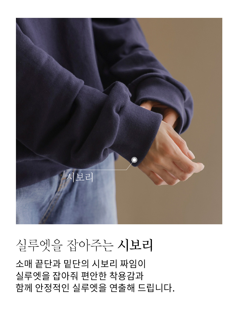소매핏 여유  /   소매길이 손덮음