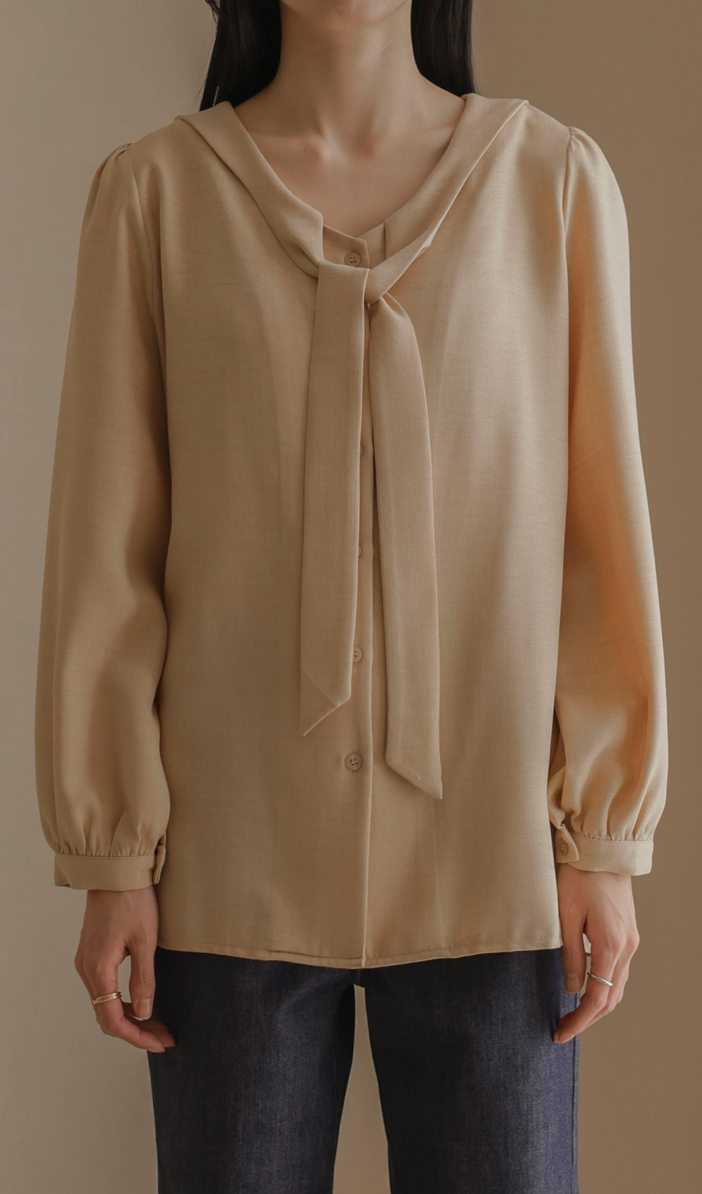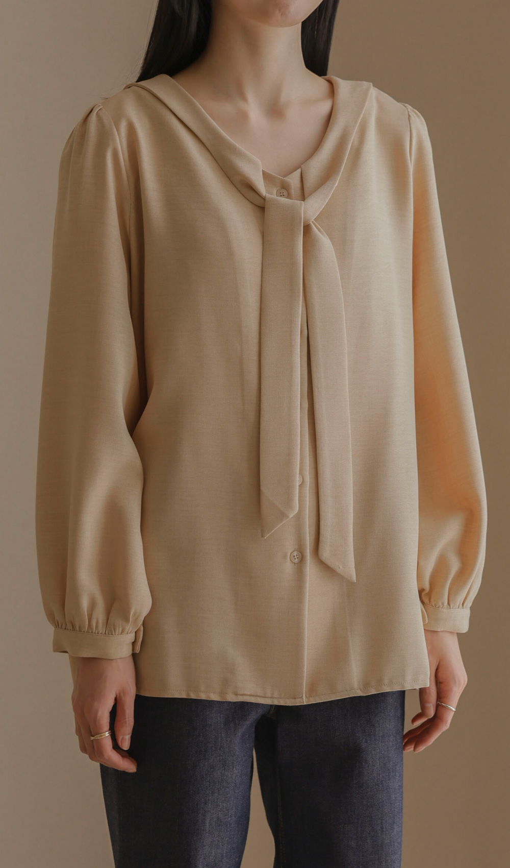 볼리안 타이 블라우스 _ 베이지