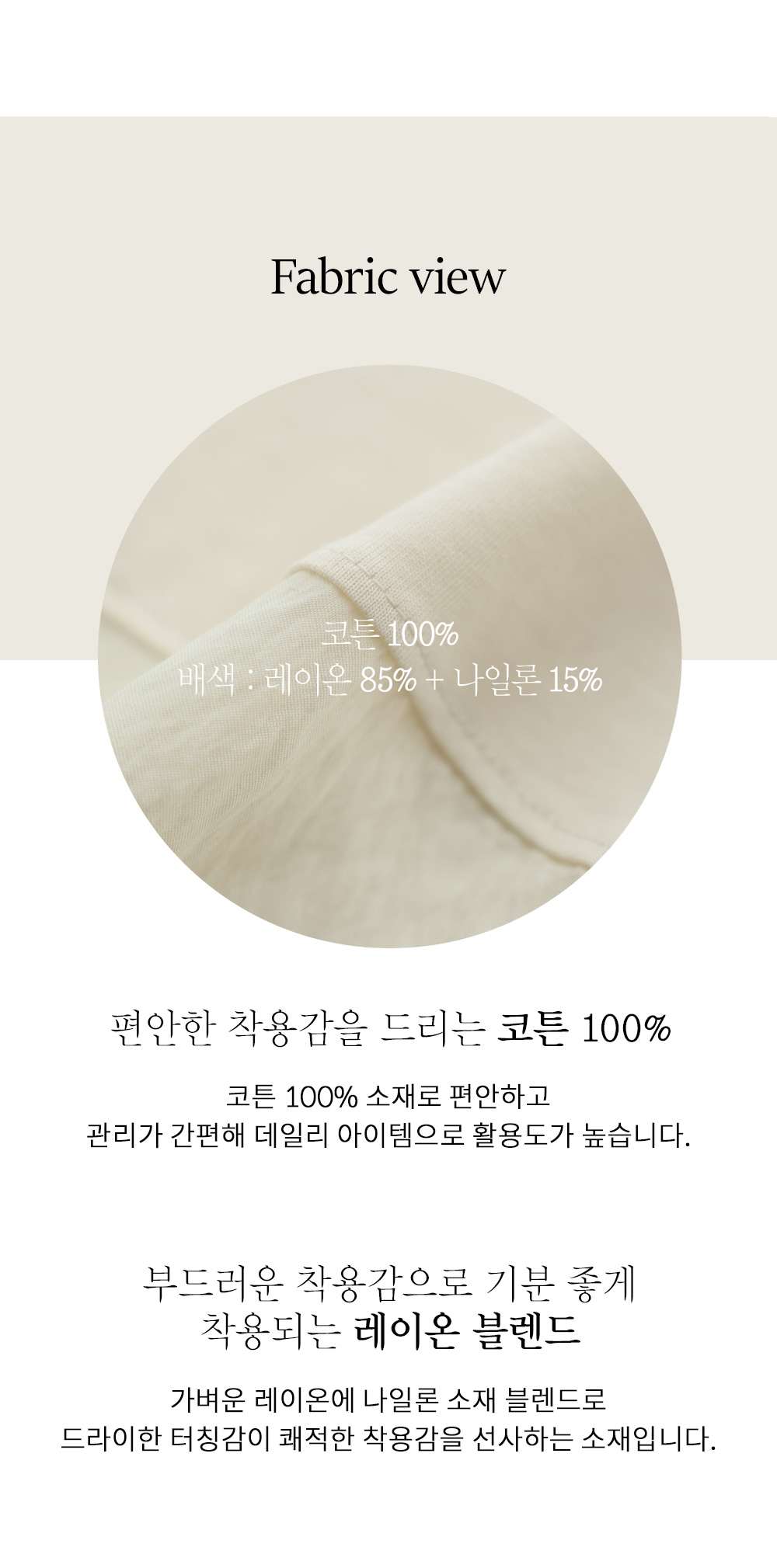 코튼100% 배색: 레이온85%,나일론15%