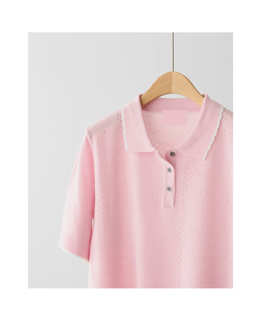 Biotin Collar Short Sleeve Knit K4292