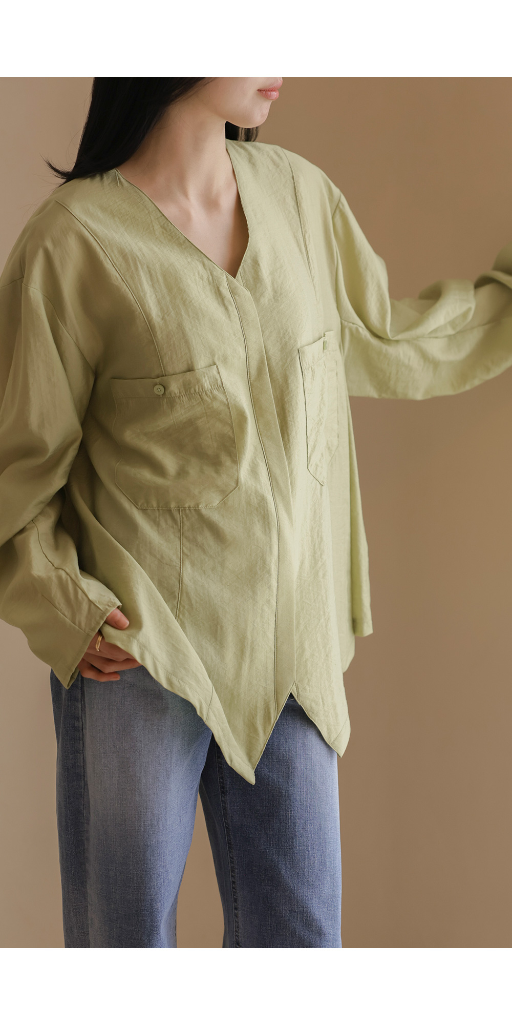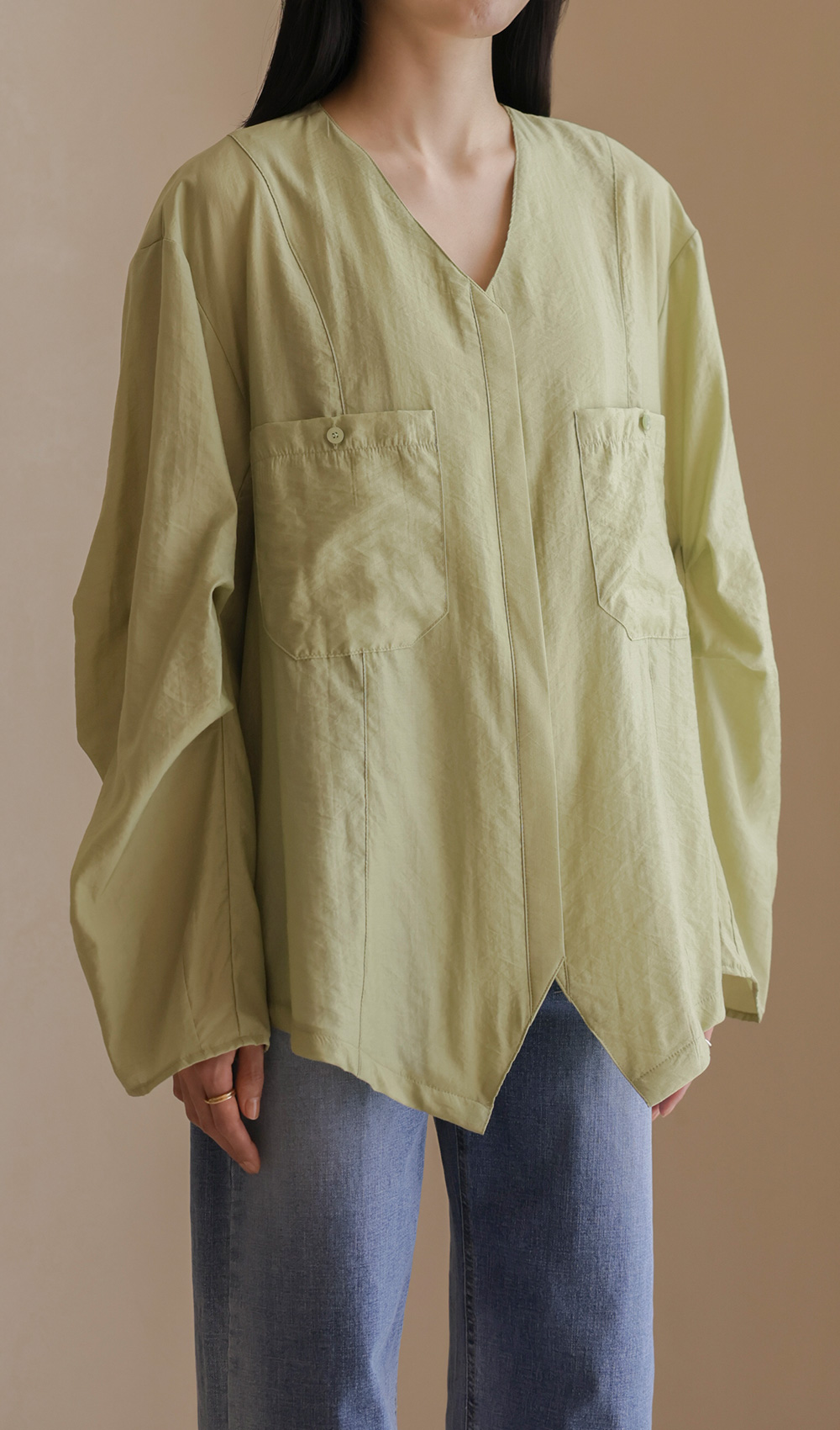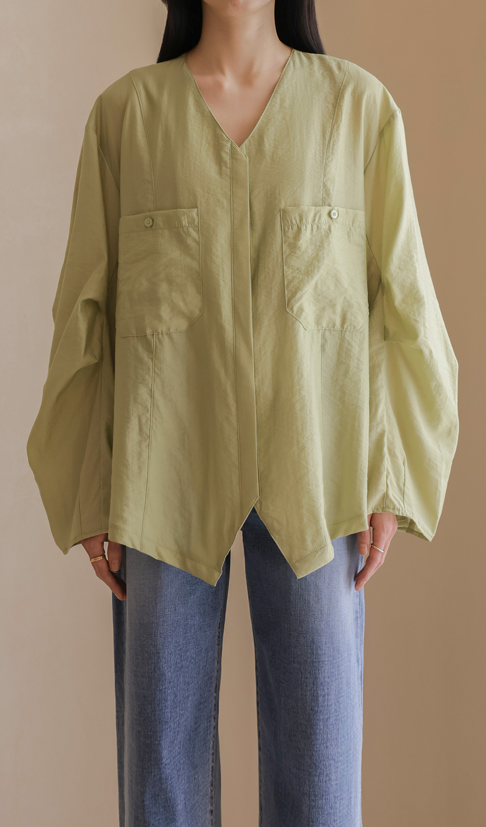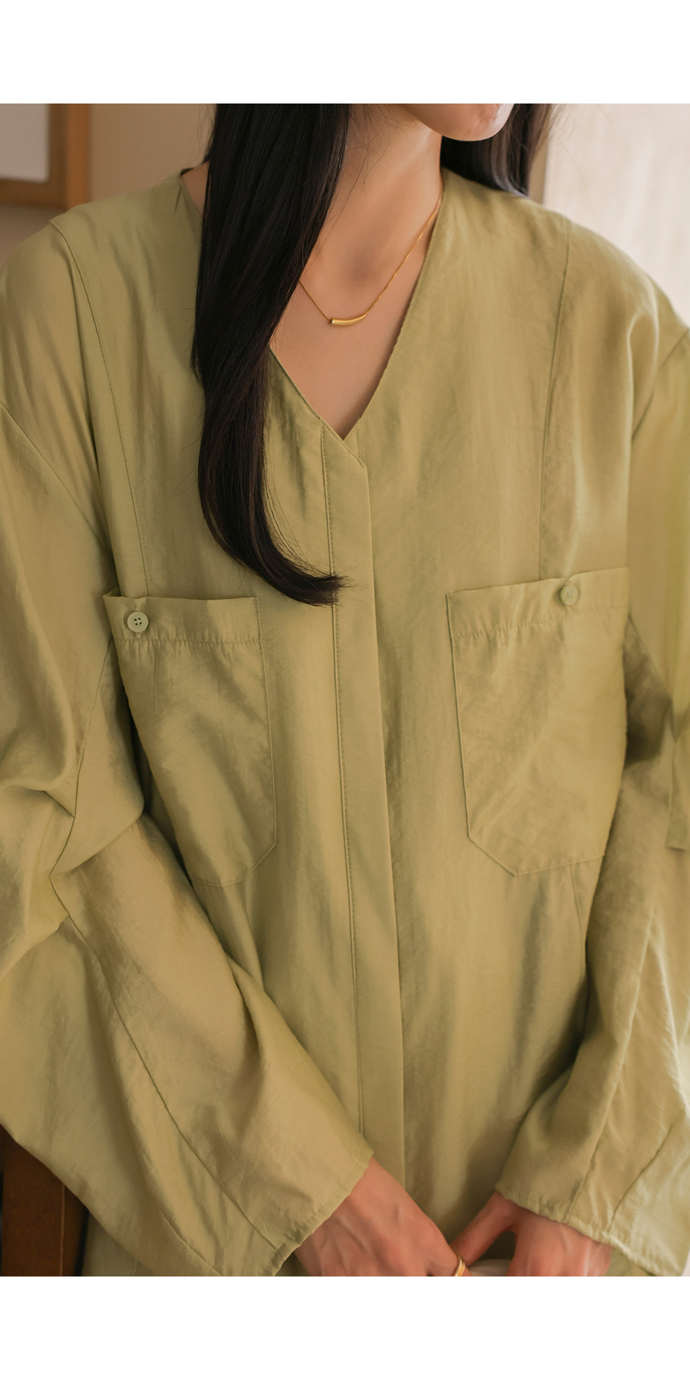 자로미 브이넥 블라우스 _ 그린