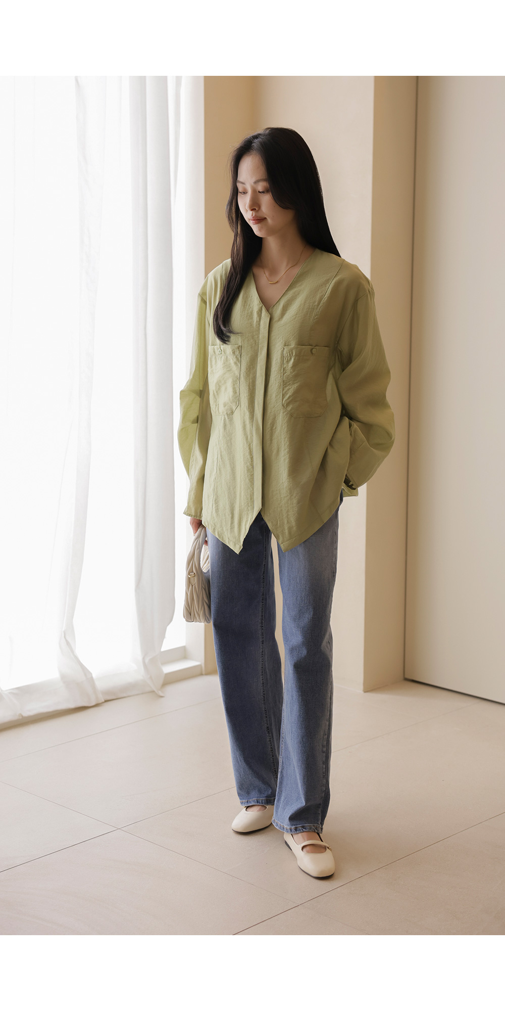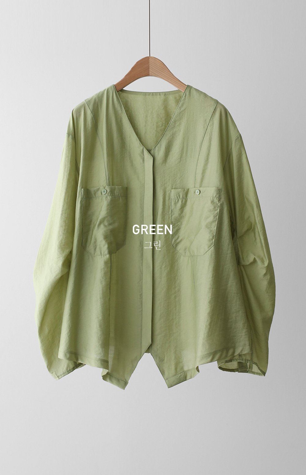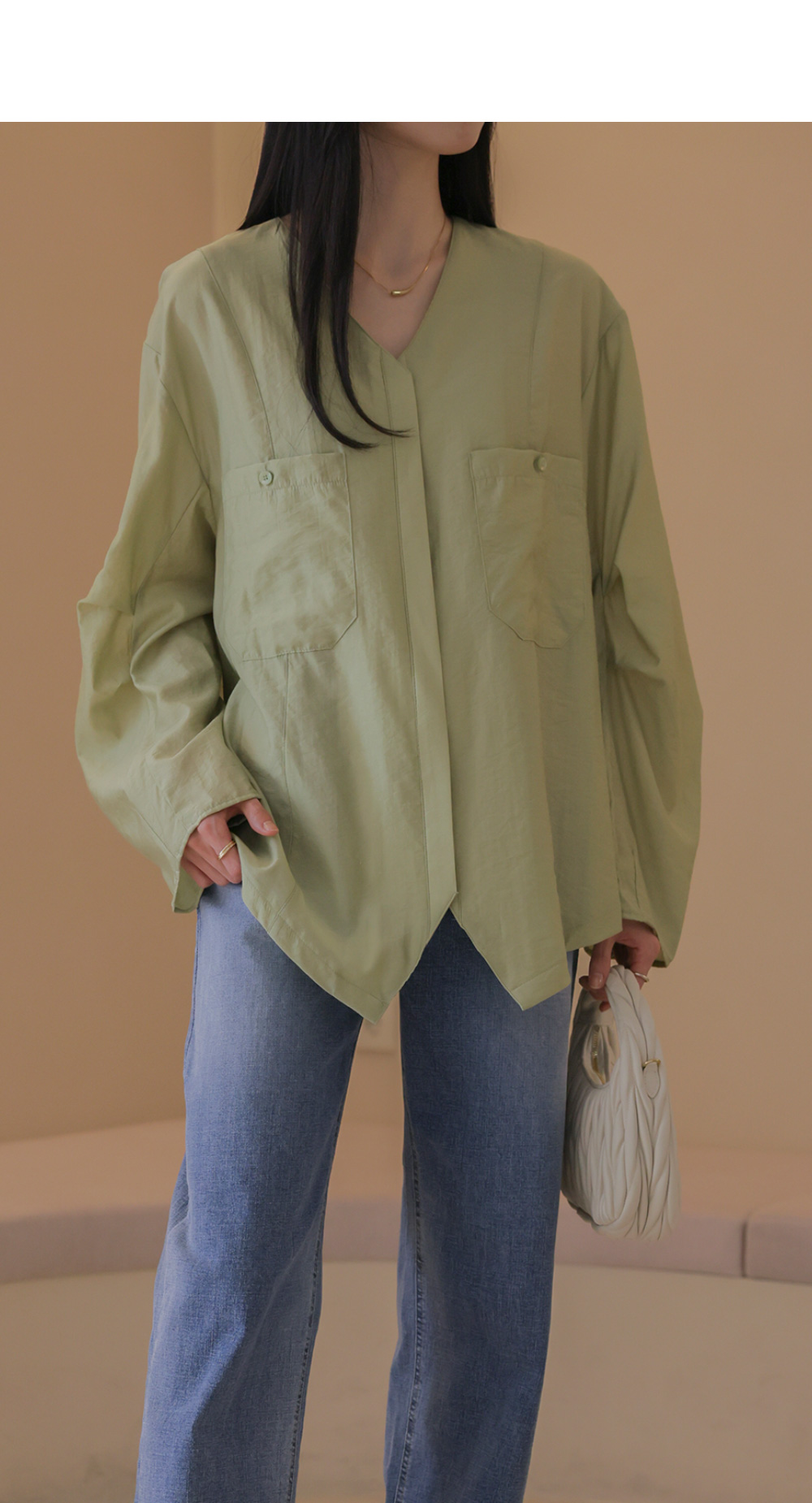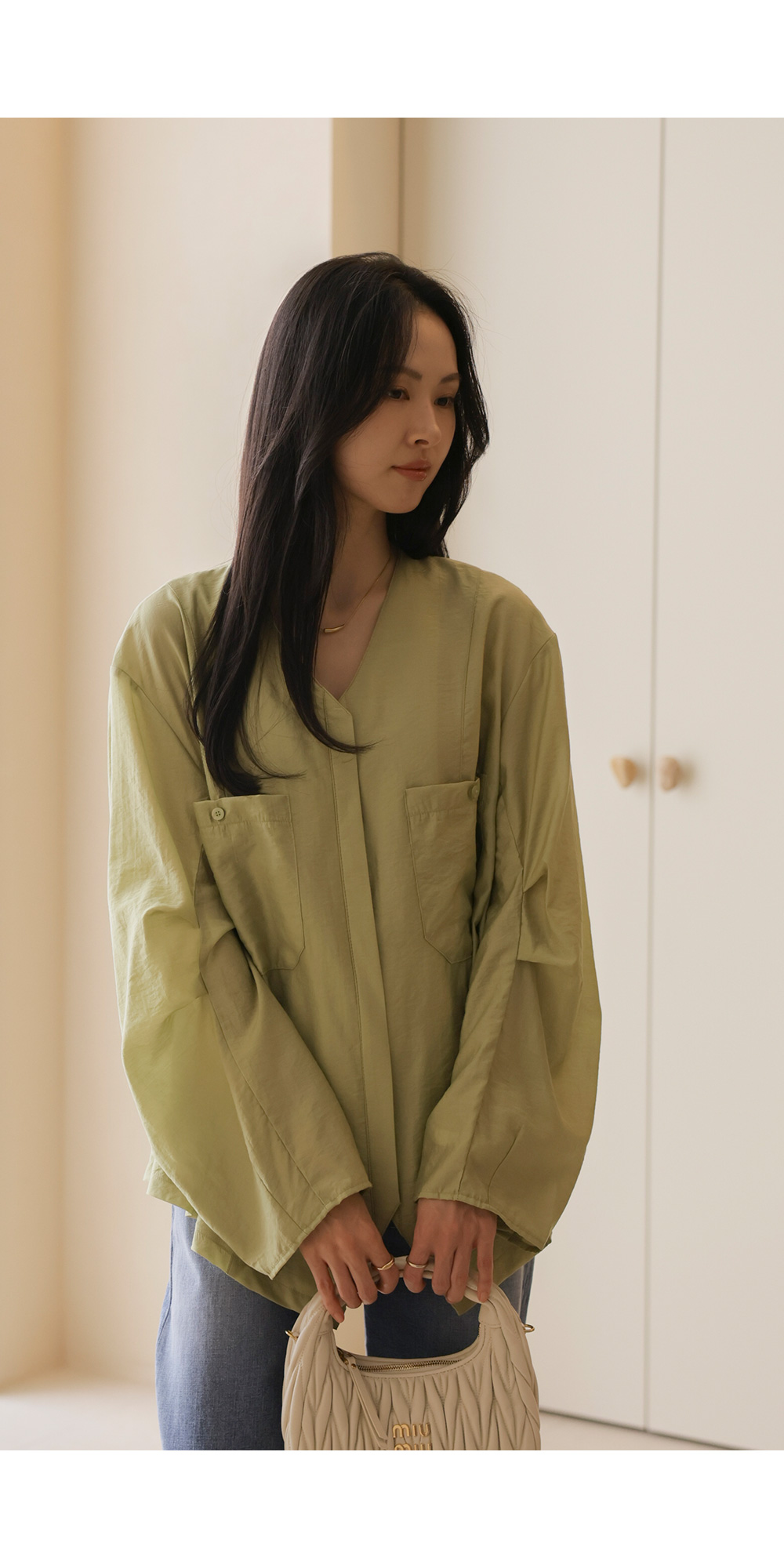 자로미 브이넥 블라우스 _ 그린