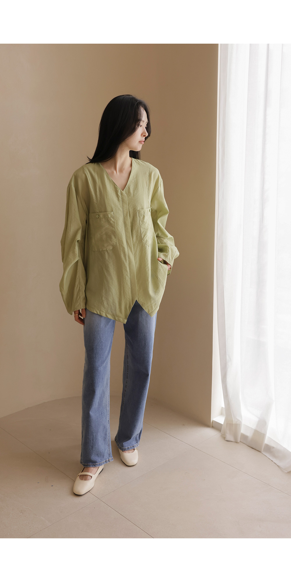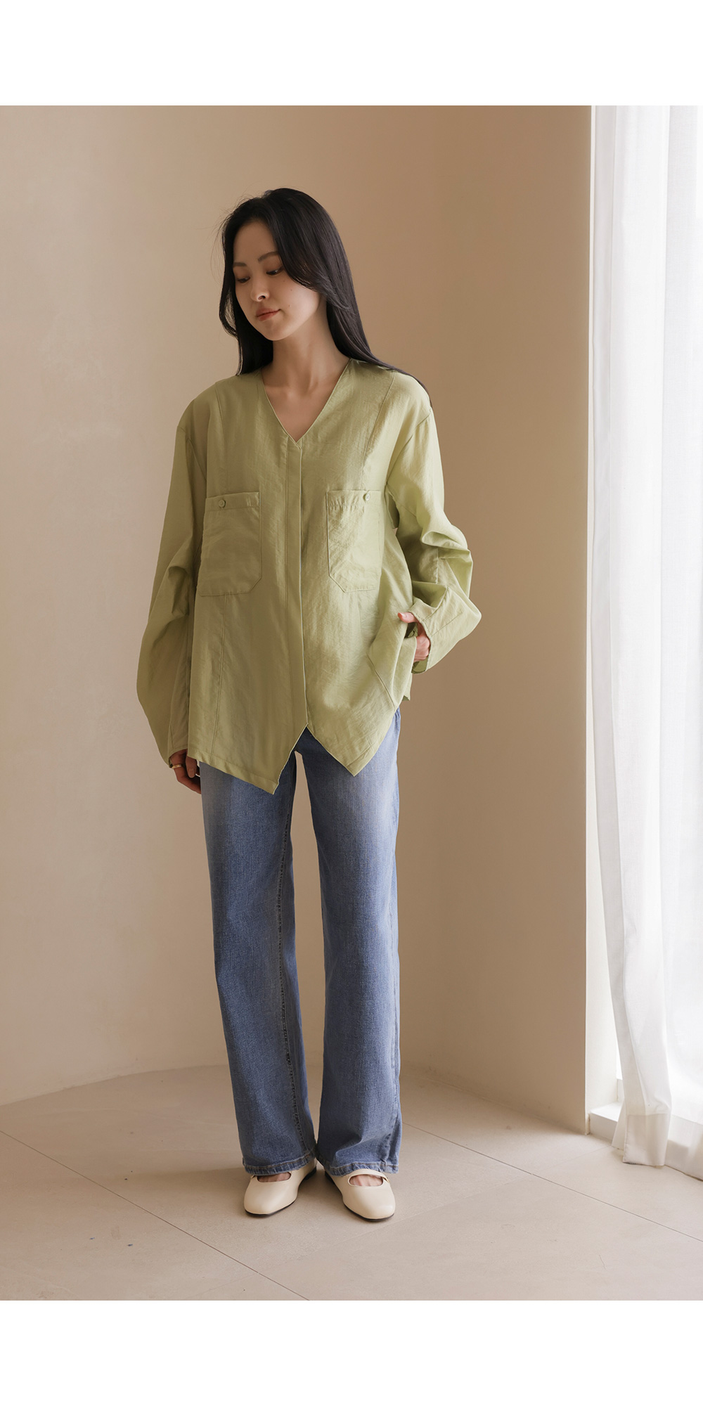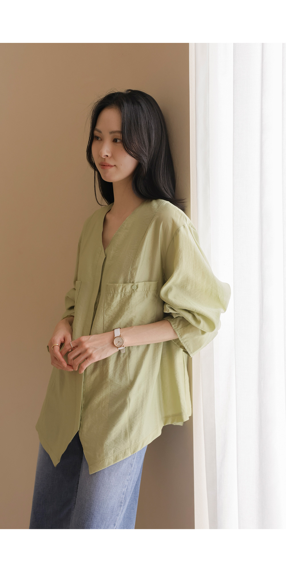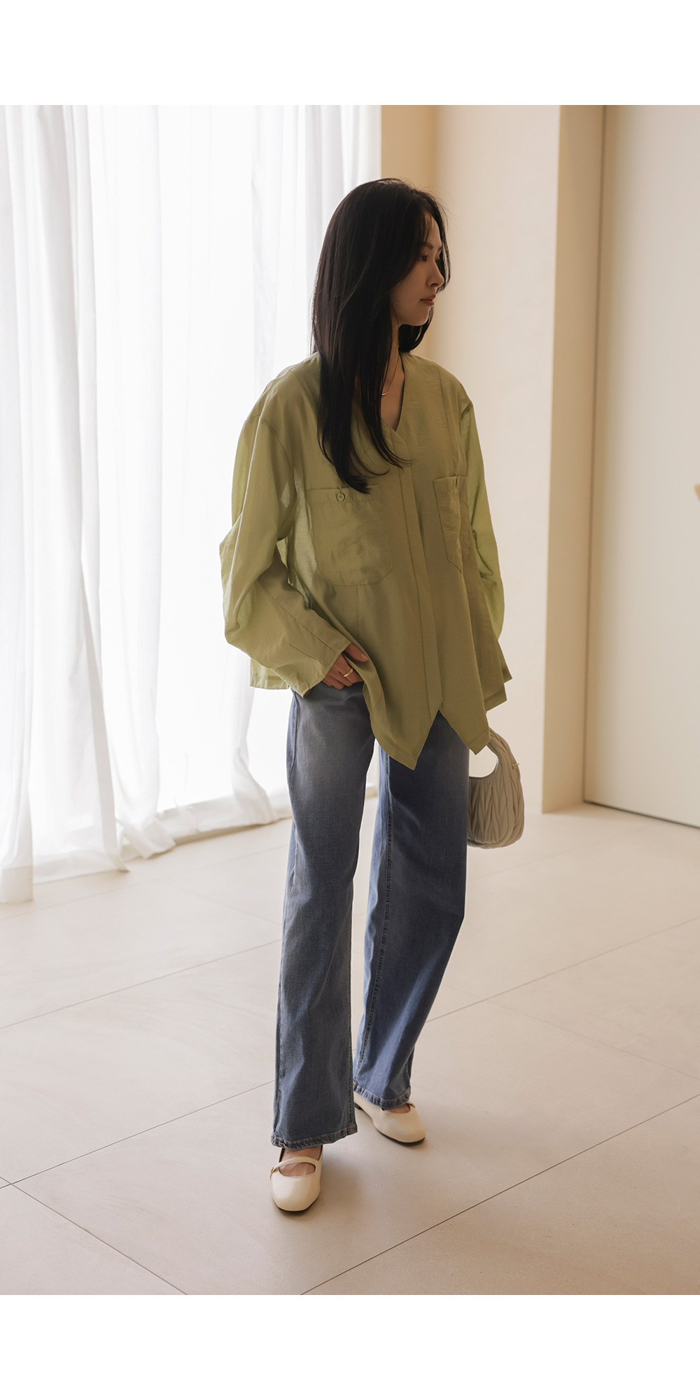 자로미 브이넥 블라우스 _ 그린