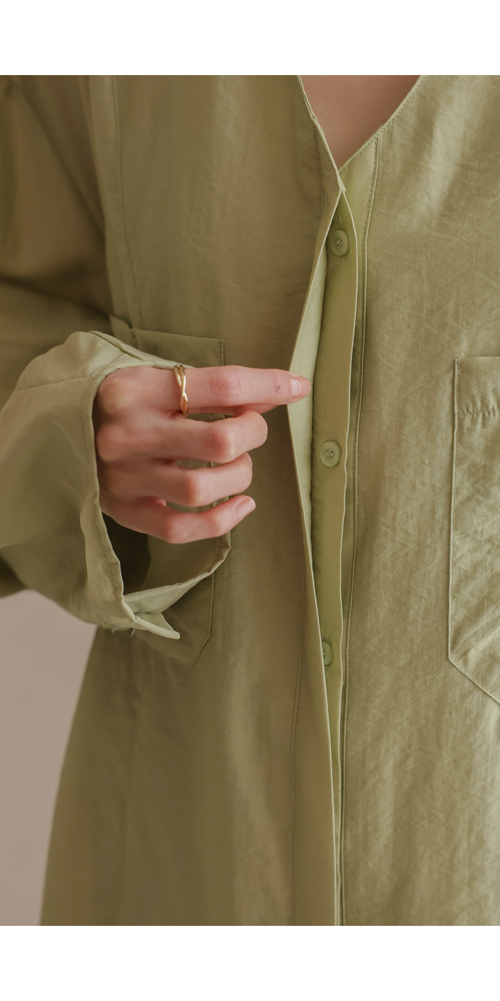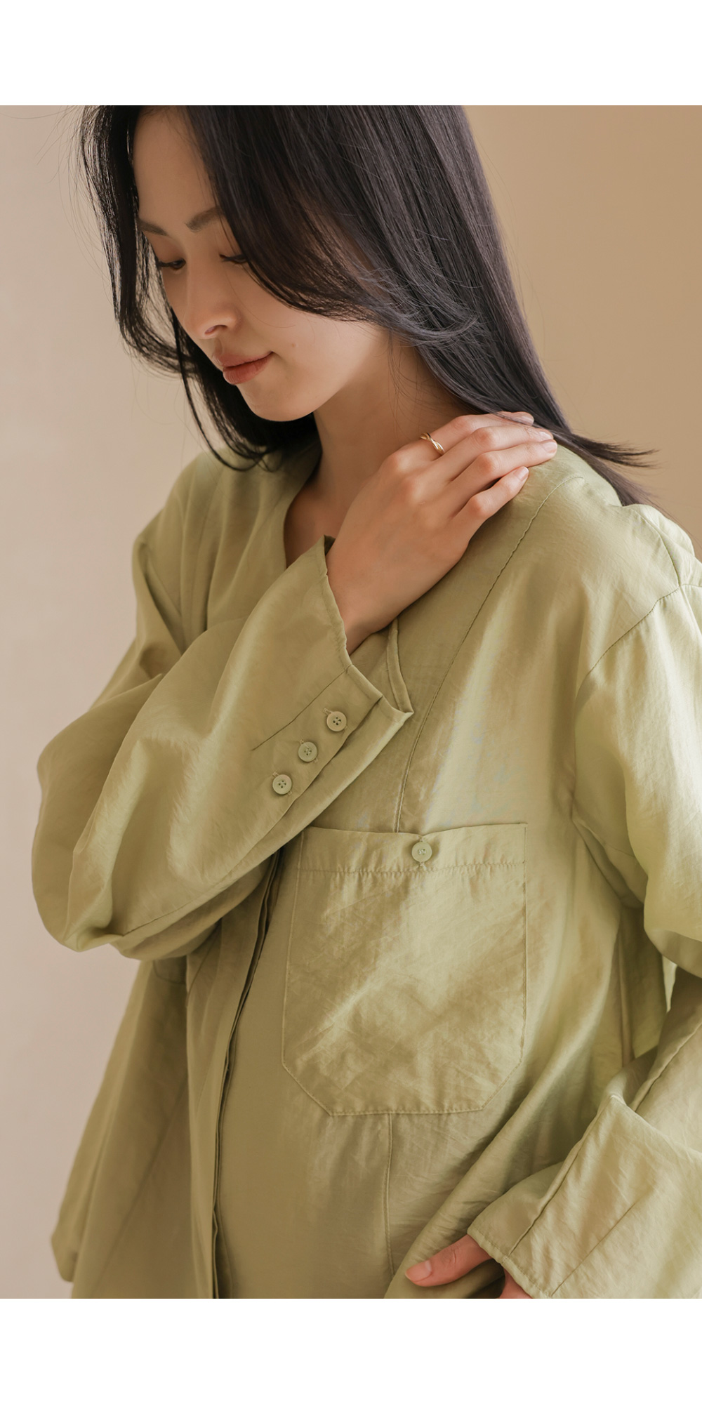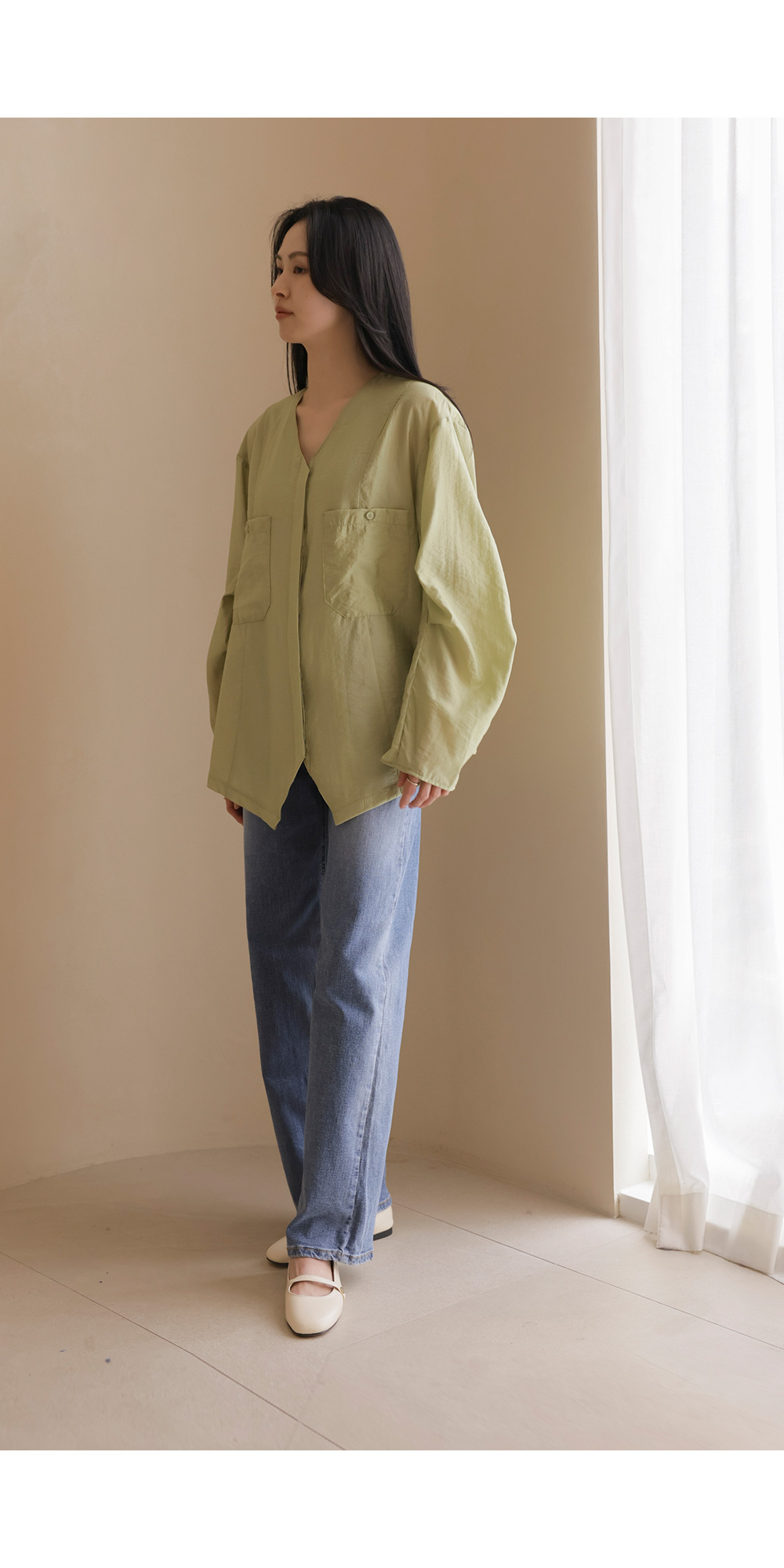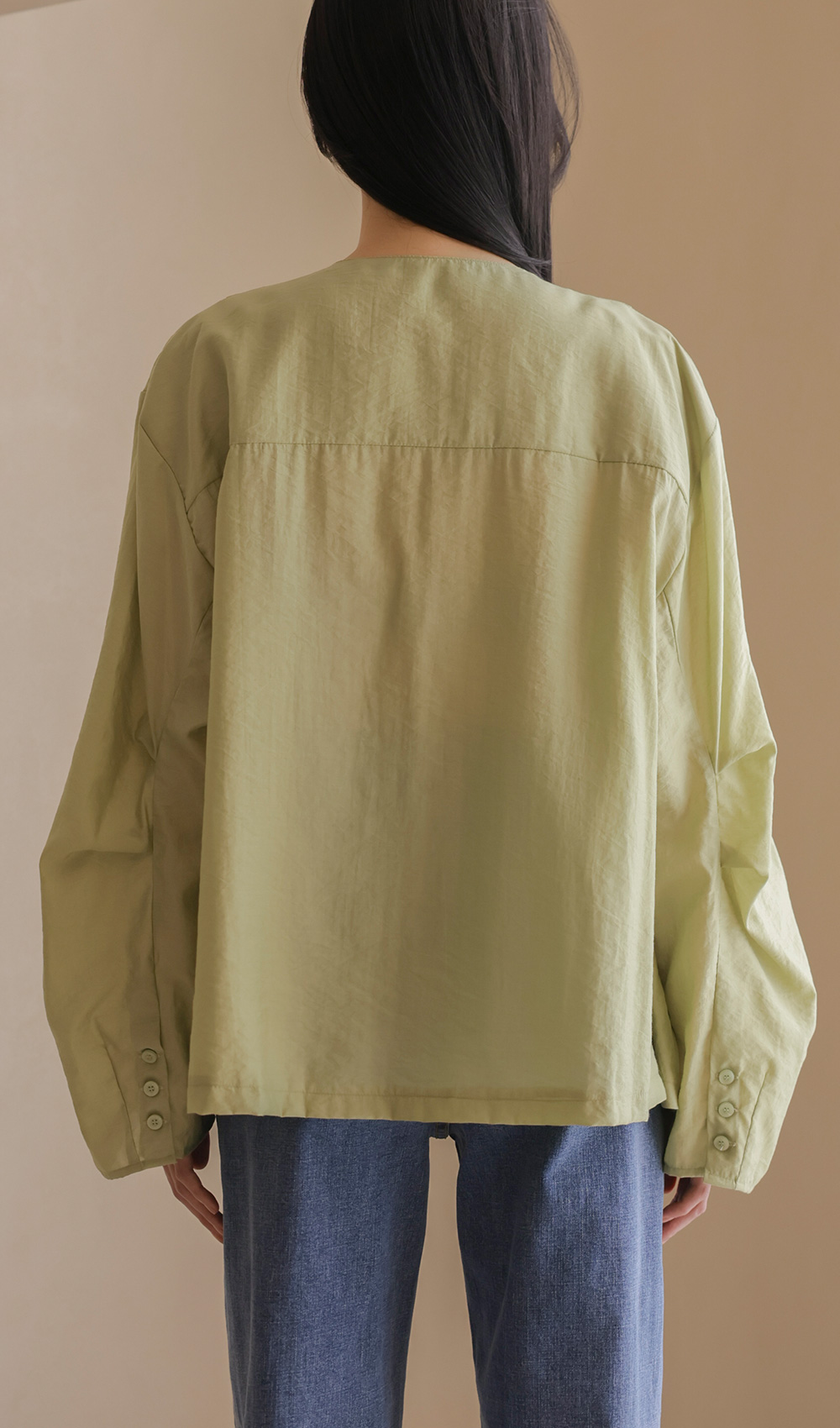 자로미 브이넥 블라우스 _ 그린