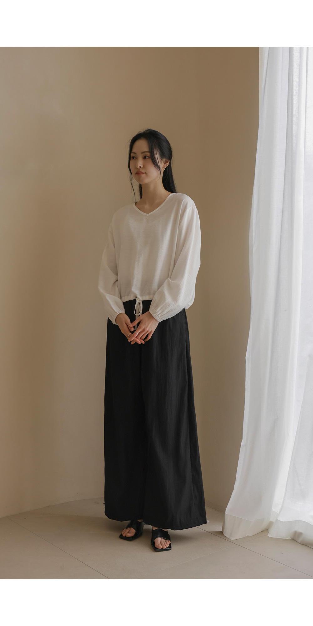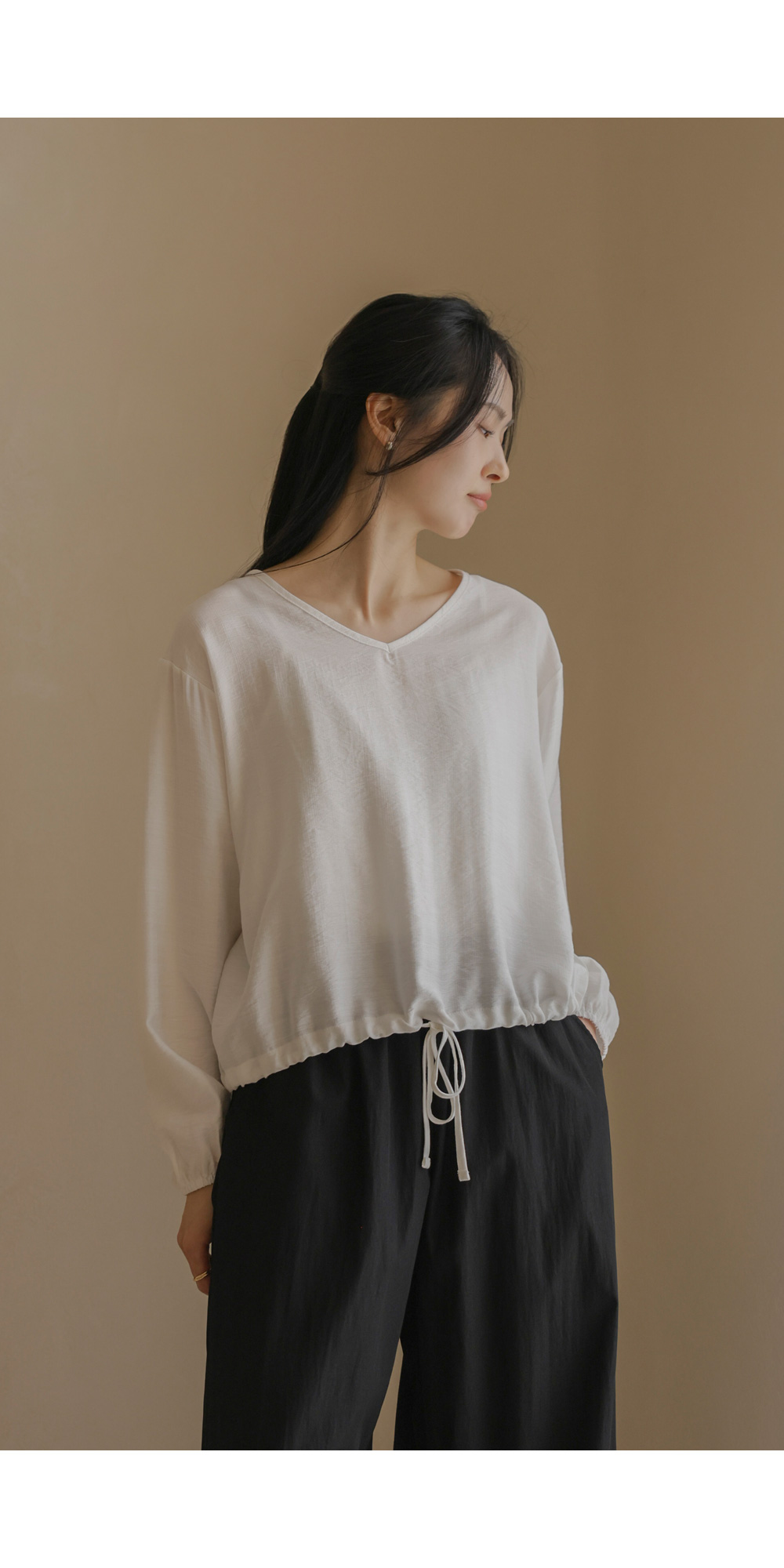 뒤바라 스트링 블라우스 _ 아이보리