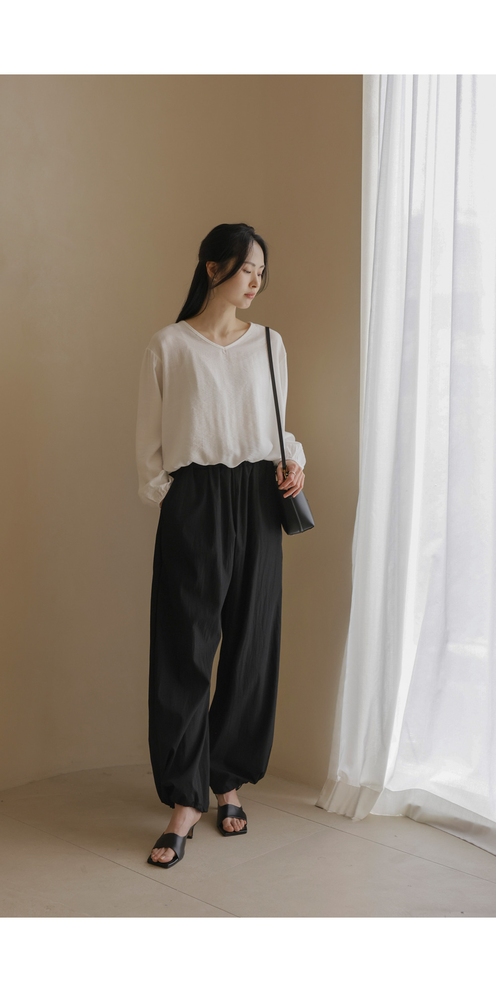샤페론 세미와이드 롱팬츠 _ 블랙