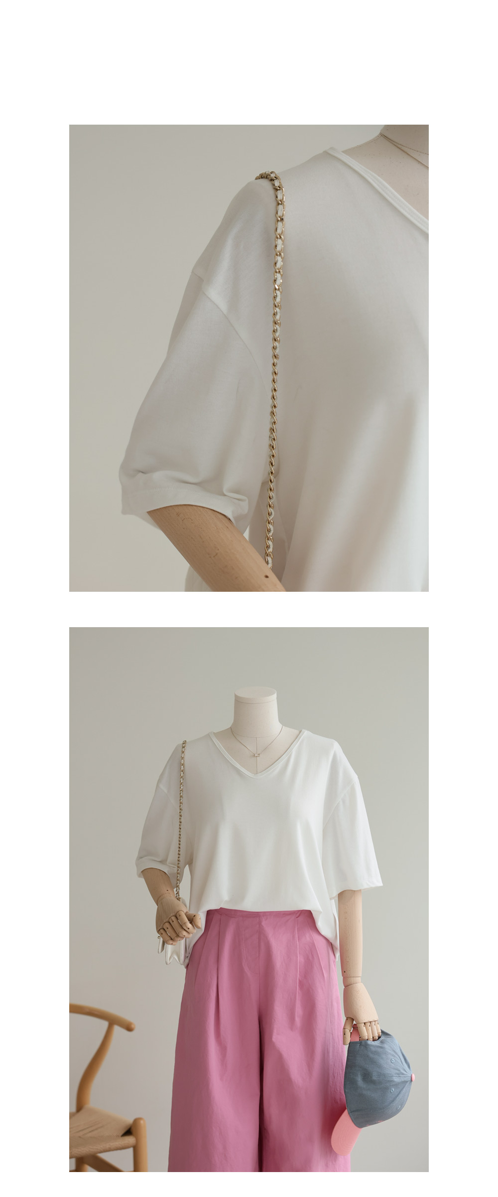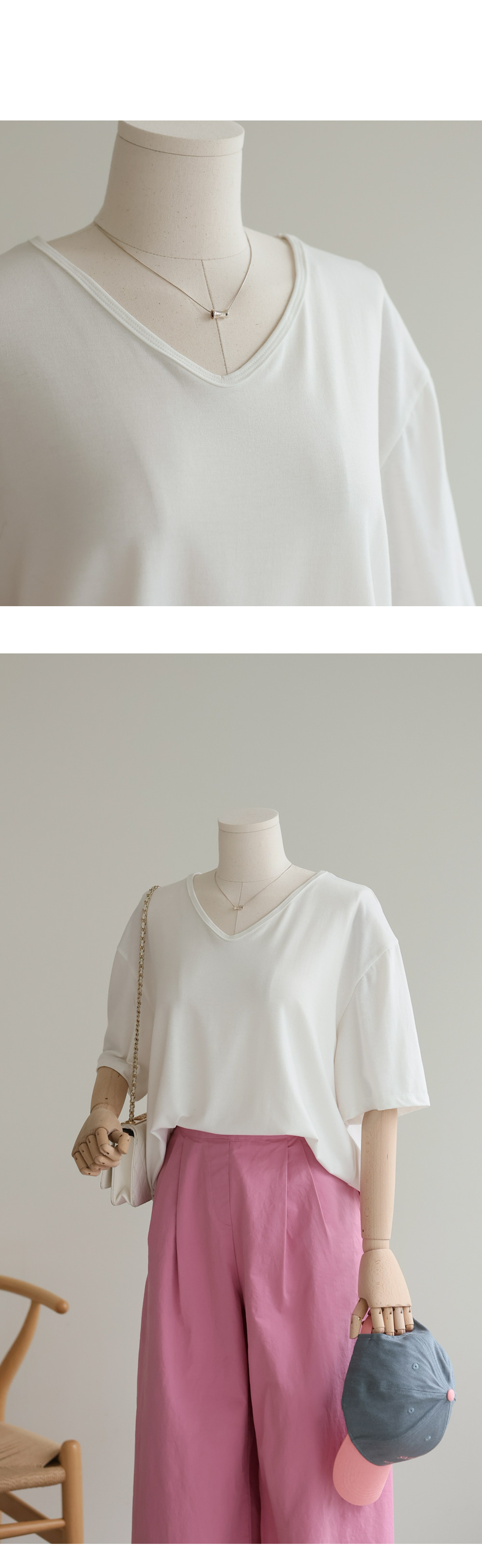 쫀쫀 브이넥 반팔티 _ 아이보리