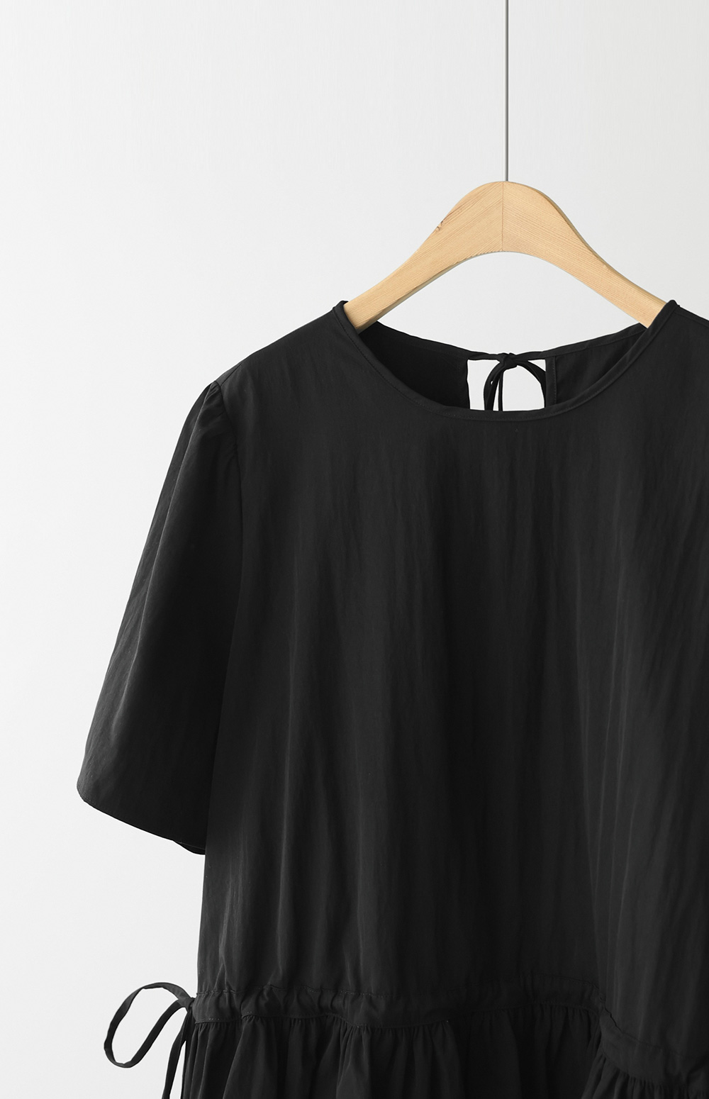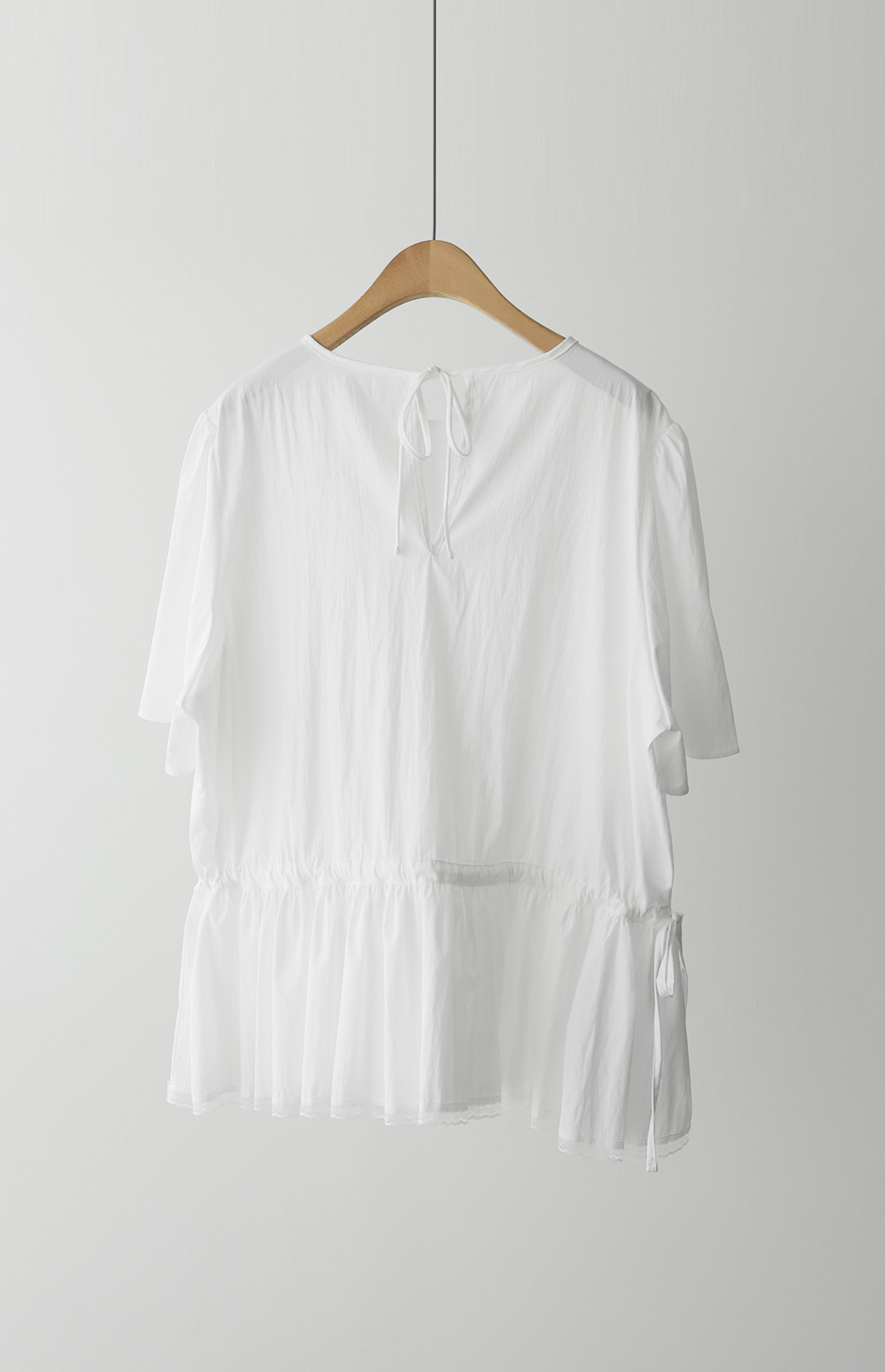 단정하면서도 로맨틱한 분위기를 동시에 자아내는 블라우스 소개해 드릴게요. 전체적으로 여유 있는 핏을 베이스로 하면서도, 허리 라인의 셔링 디테일이 시선을 분산시켜 체형을 아주 예쁘게 잡아주는데요.