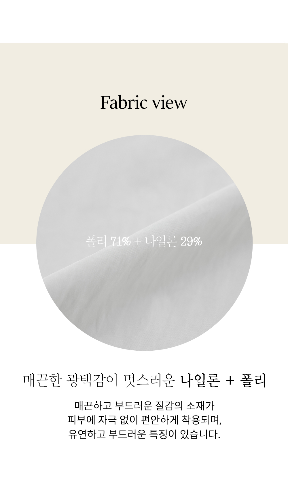 매끈하면서도 탄탄한 힘이 느껴지는 폴리와 나일론 혼방으로 흐물거리지 않고 적당히 형태를 유지해 주는 성질 덕분에 퍼프 소매의 볼륨감이나 밑단 플레어 라인이 무너지지 않고 예쁘게 살아나구요. 피부에 닿을 때 매끄럽게 흐르는 감촉 덕분에 장시간 착용해도 쾌적함을 선사하며, 구김이 쉽게 가지 않아 관리가 아주 편안한 고퀄리티 소재랍니다. ![]() MD가 답하는 안심 Q&A