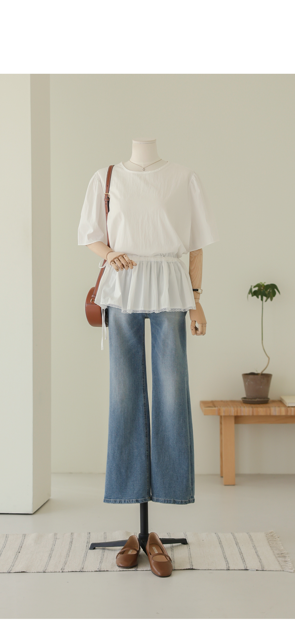 단정하면서도 로맨틱한 분위기를 동시에 자아내는 블라우스 소개해 드릴게요. 전체적으로 여유 있는 핏을 베이스로 하면서도, 허리 라인의 셔링 디테일이 시선을 분산시켜 체형을 아주 예쁘게 잡아주는데요.
