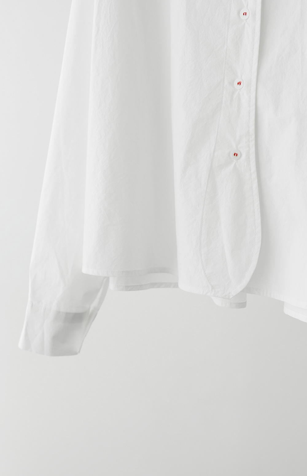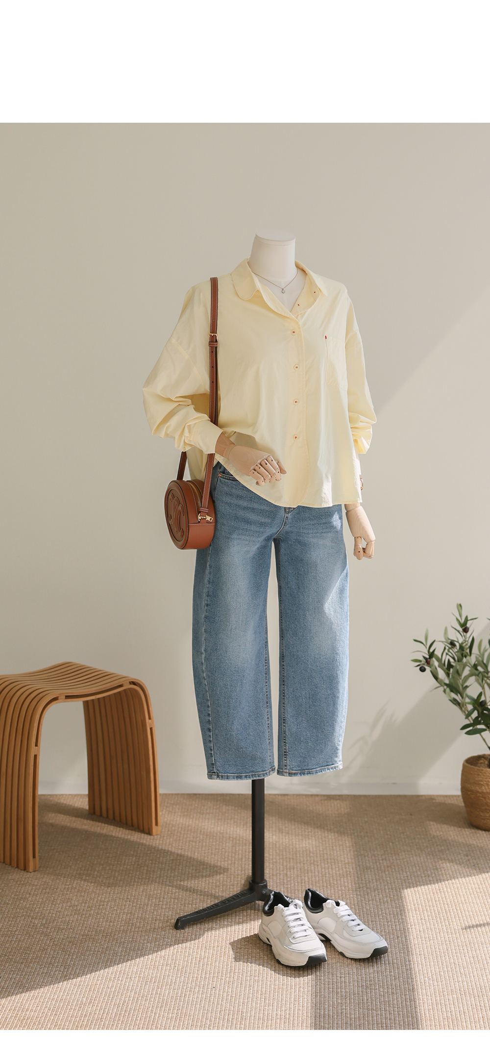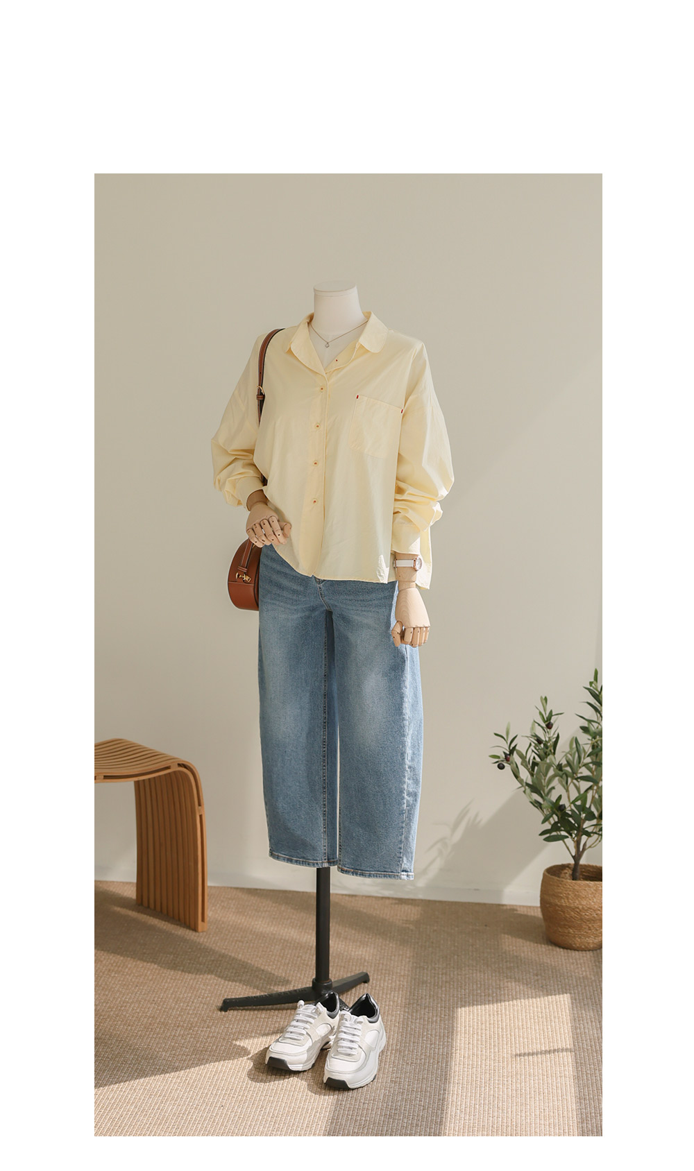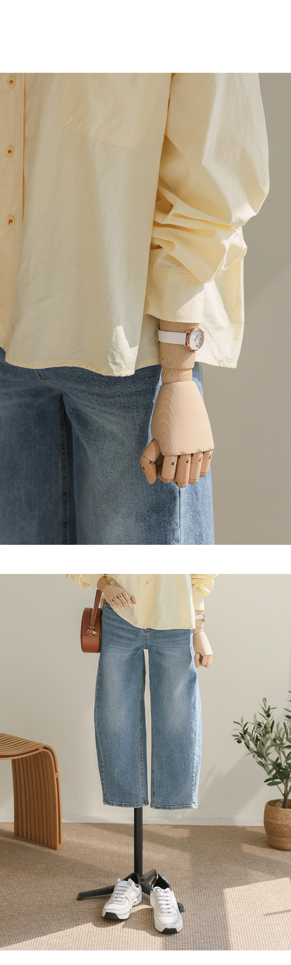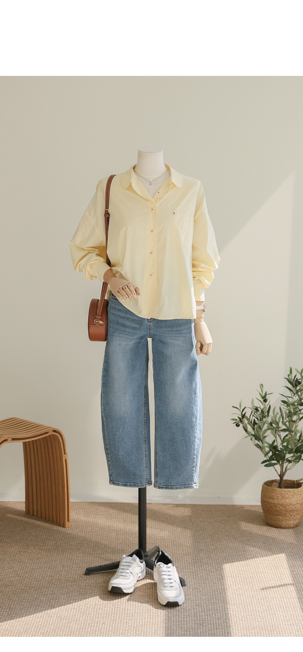 단정한 실루엣에 은은한 디테일을 가득 담아낸 셔츠 아이템이에요. 전체적으로 여유 있게 떨어지는 핏에 둥근 카라 디자인을 더해 한층 부드럽고 이미지를 연출해 주구요, 바스트의 원 포켓과 단추에 들어간 배색 스티치가 밋밋함 없이 세련된 포인트를 완성해 준답니다.