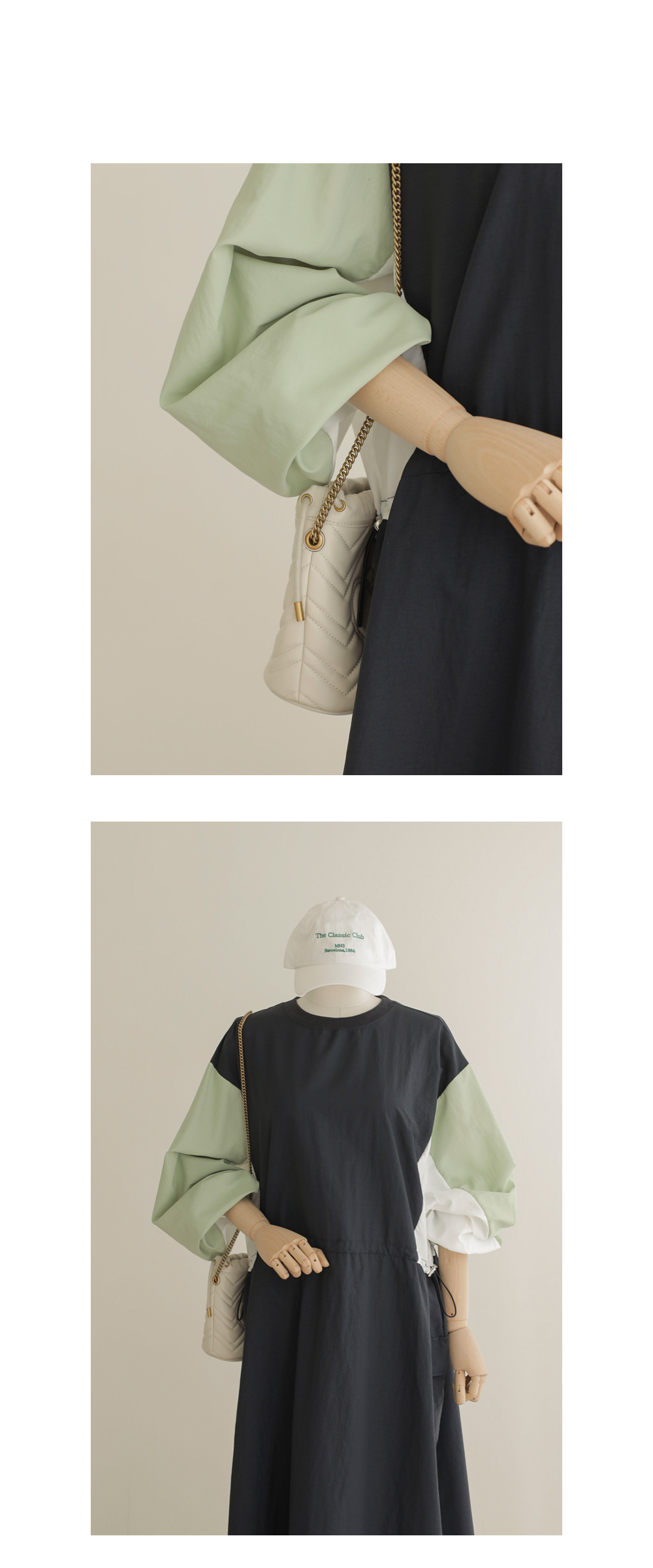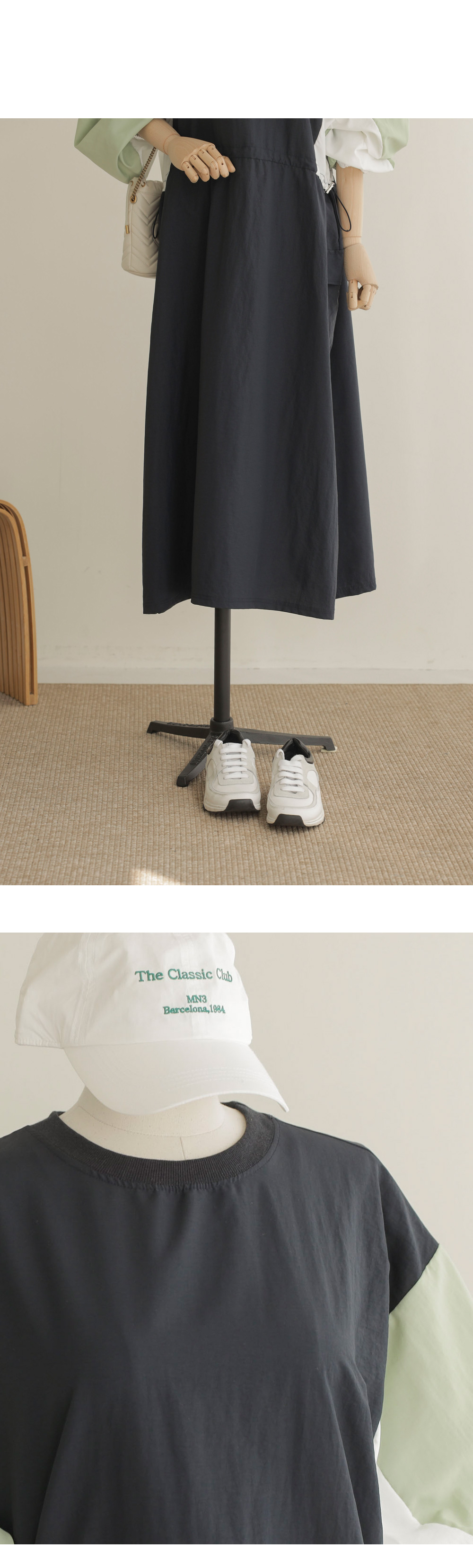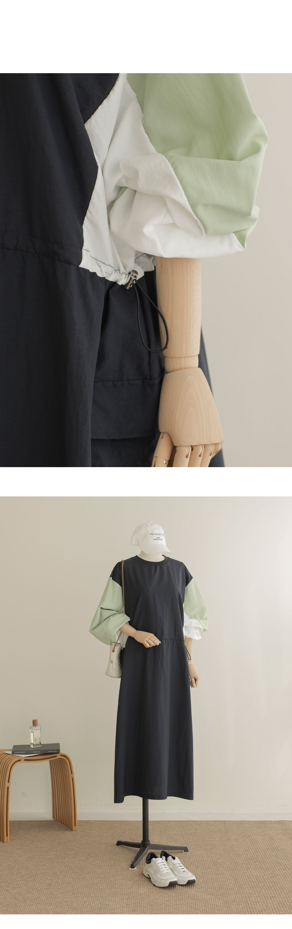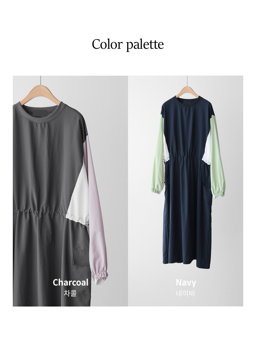 여름철, 옷이 몸에 감기는 느낌만큼 답답한 게 없죠. 이번에 준비한 아이템은 피부에 닿는 감촉이 시원하고 쾌적한 바스락 소재의 라운드넥 원피스예요. 깊이감 있는 네이비와 도시적인 무드의 차콜 두 가지 컬러로 준비했답니다.