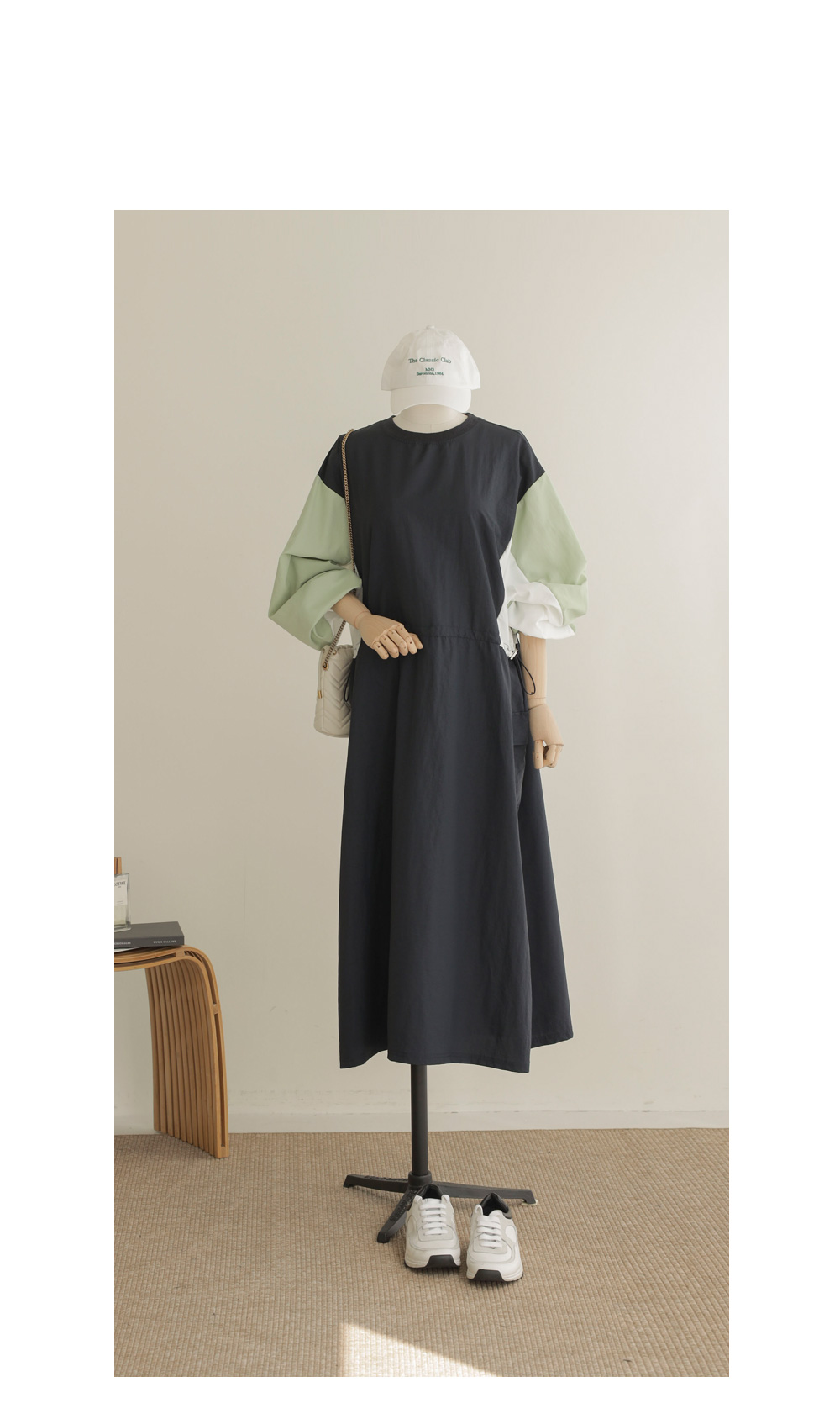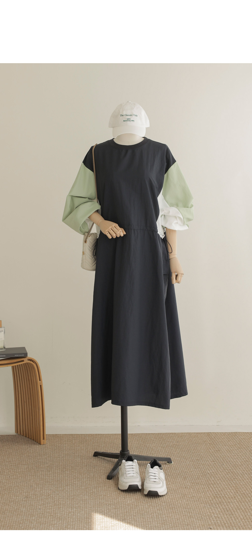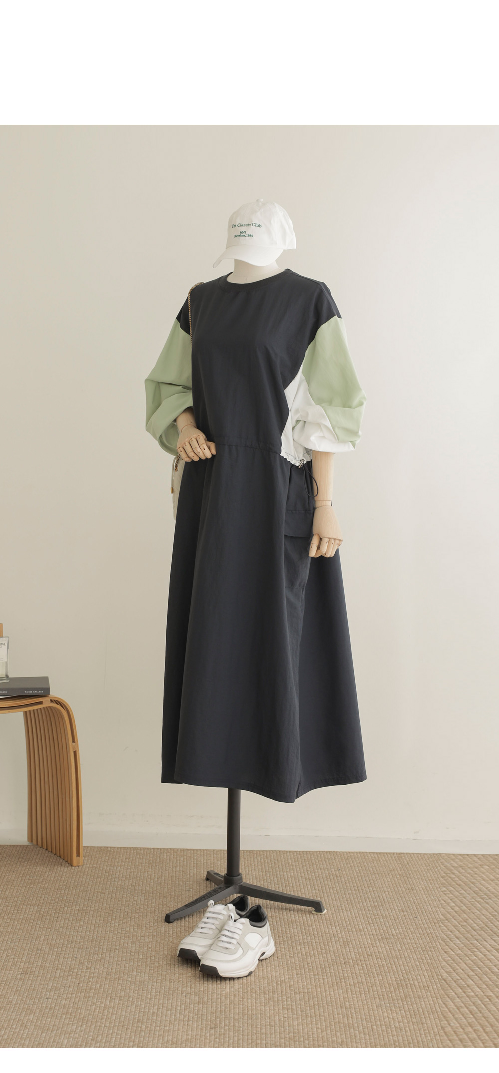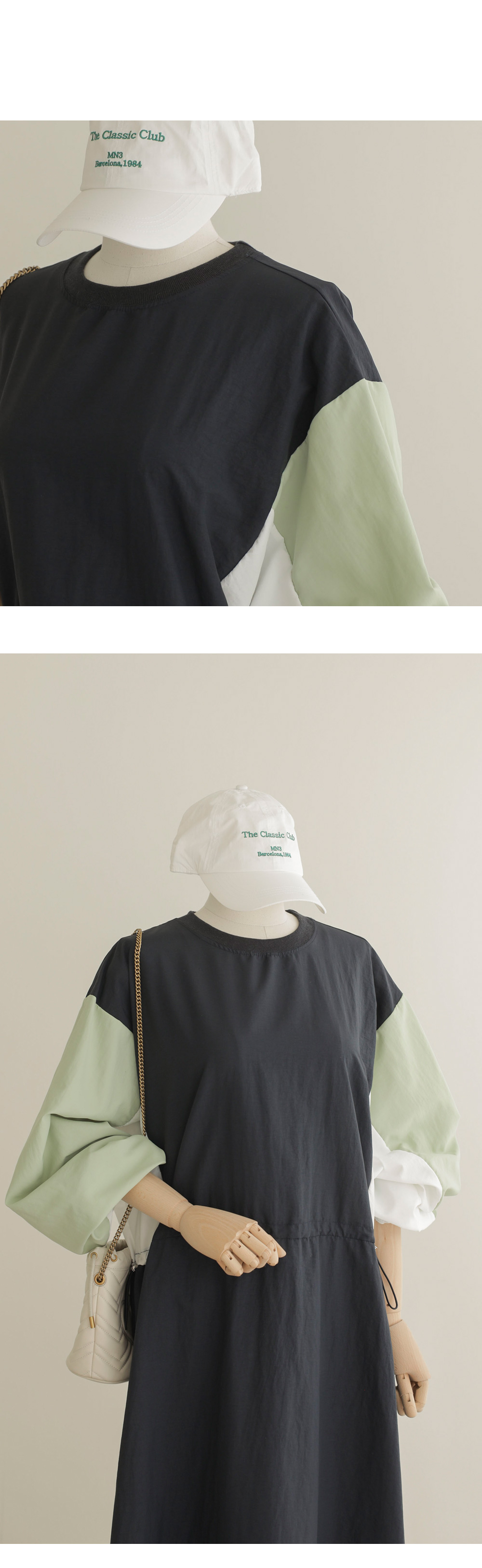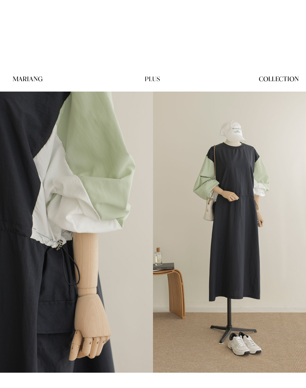 여름철, 옷이 몸에 감기는 느낌만큼 답답한 게 없죠. 이번에 준비한 아이템은 피부에 닿는 감촉이 시원하고 쾌적한 바스락 소재의 라운드넥 원피스예요. 깊이감 있는 네이비와 도시적인 무드의 차콜 두 가지 컬러로 준비했답니다.