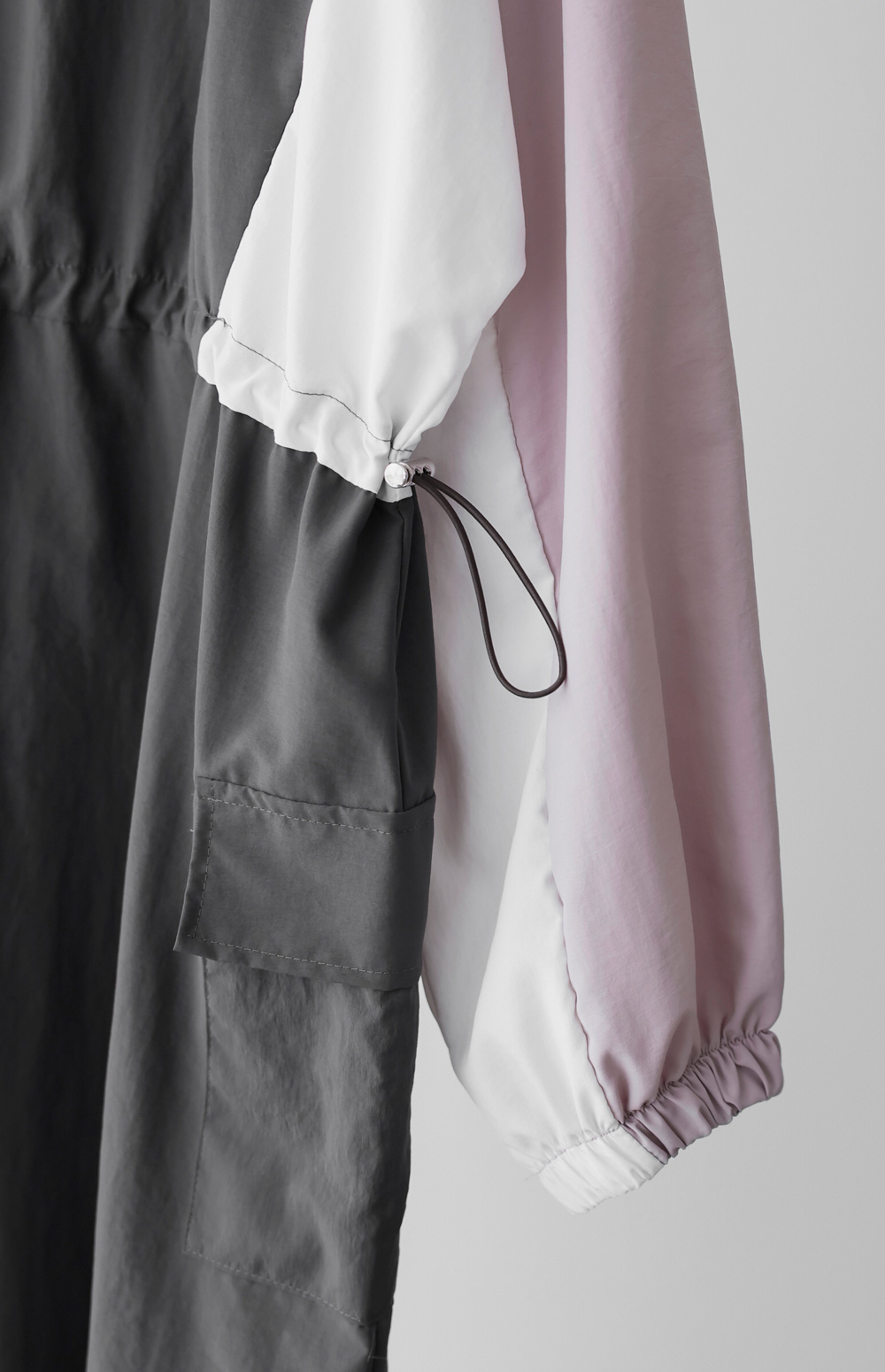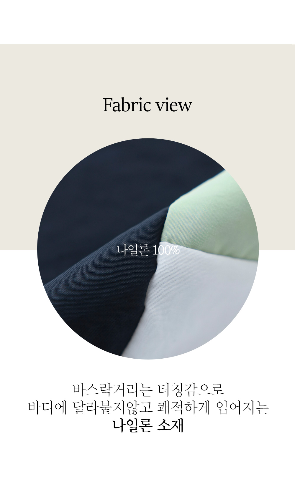 복원력이 좋고 생활 방수 기능까지 겸비한 고퀄리티 나일론 100% 소재를 사용했어요. 흔히 말하는 '바스락' 원단으로, 땀이 나도 피부에 끈적하게 달라붙지 않아 한여름까지 무척 시원하게 입으실 수 있답니다. 안감이 없어도 비침 걱정 없이 탄탄하게 짜여 있으며, 신축성은 없지만 소재 자체가 유연하고 품이 넉넉해 착용감이 매우 자유로워요. 세탁 후 건조가 빠르고 구김이 잘 가지 않아 다림질 스트레스에서 벗어나게 해 줄 효자 소재예요. ![]() MD가 답하는 안심 Q&A