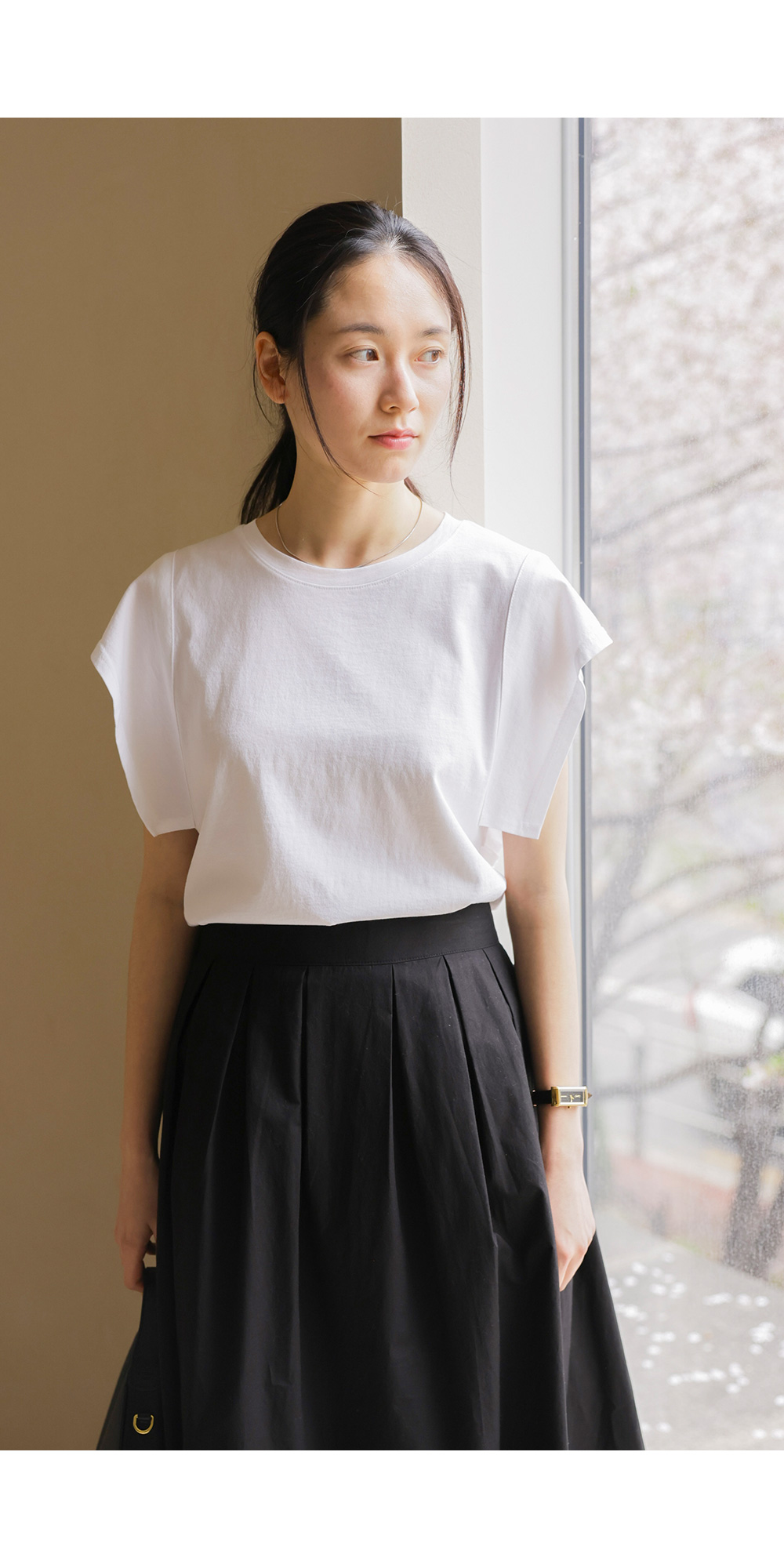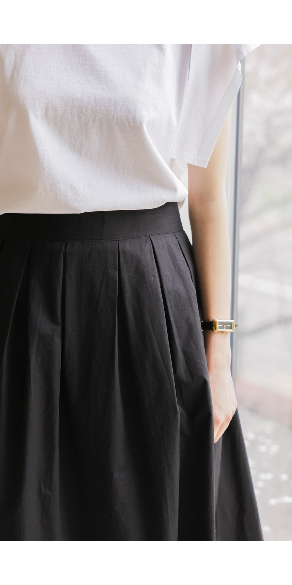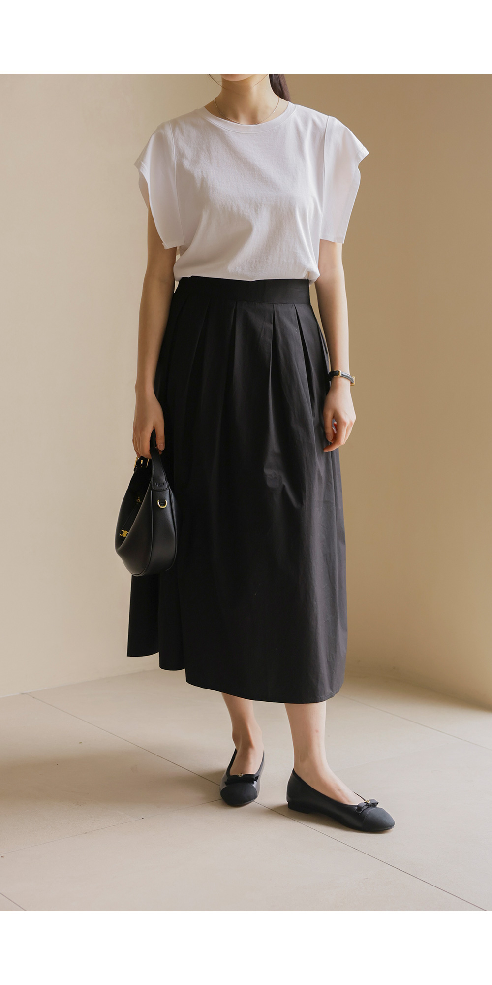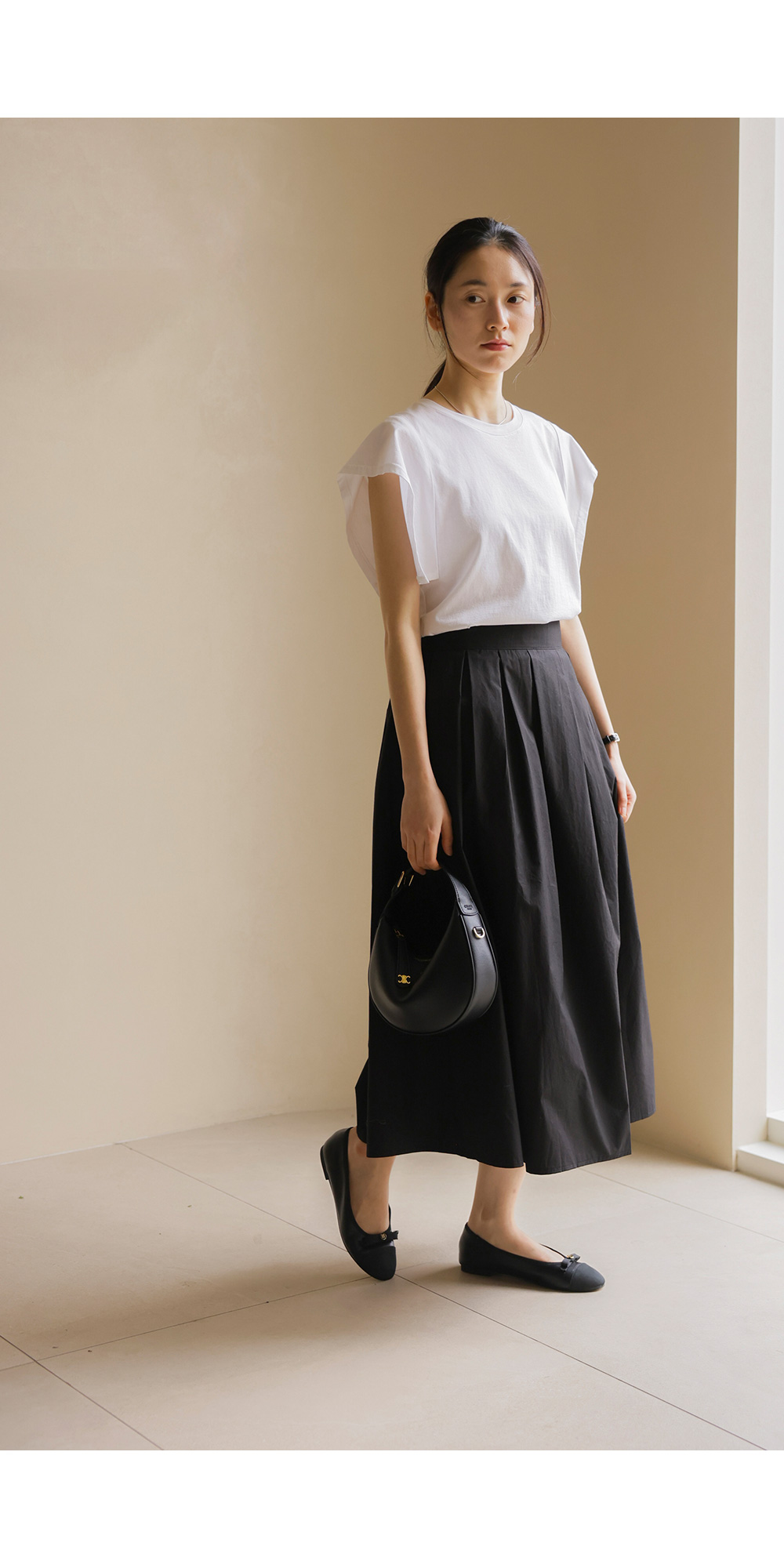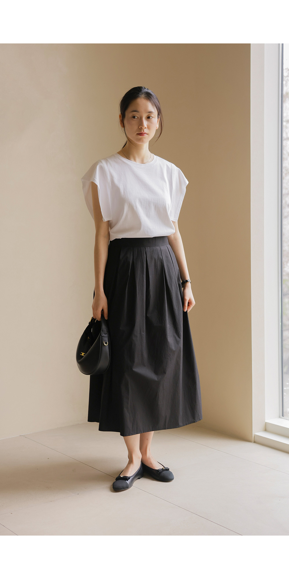 스커트 카테고리에서 은은한 비침이 주는 시원함과 핀턱의 클래식함을 동시에 잡은 롱 스커트예요. 신축성이 없는 탄탄한 코튼 원단을 사용하여 입었을 때 실루엣이 무너지지 않고 고급스럽게 유지되구요. 가벼운 두께감 덕분에 걸을 때마다 살랑이는 느낌이 정말 매력적인 아이템이랍니다.