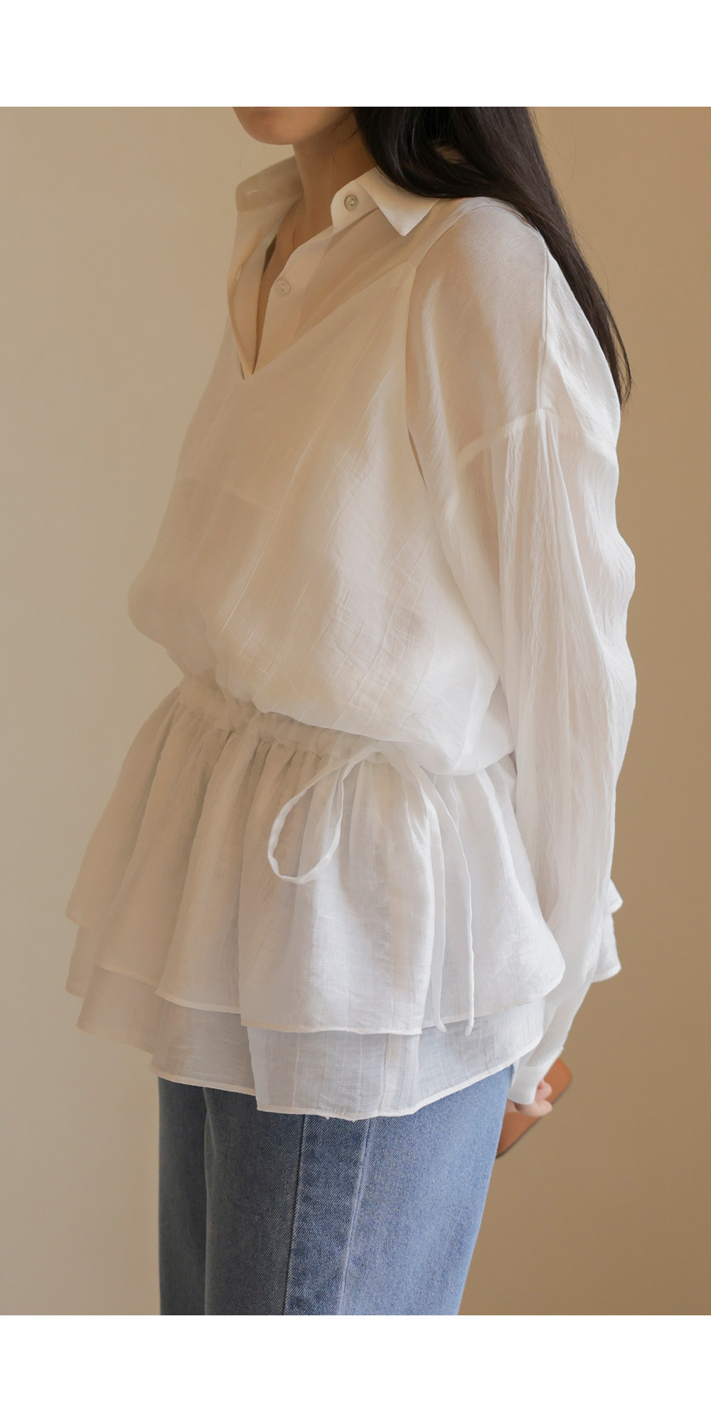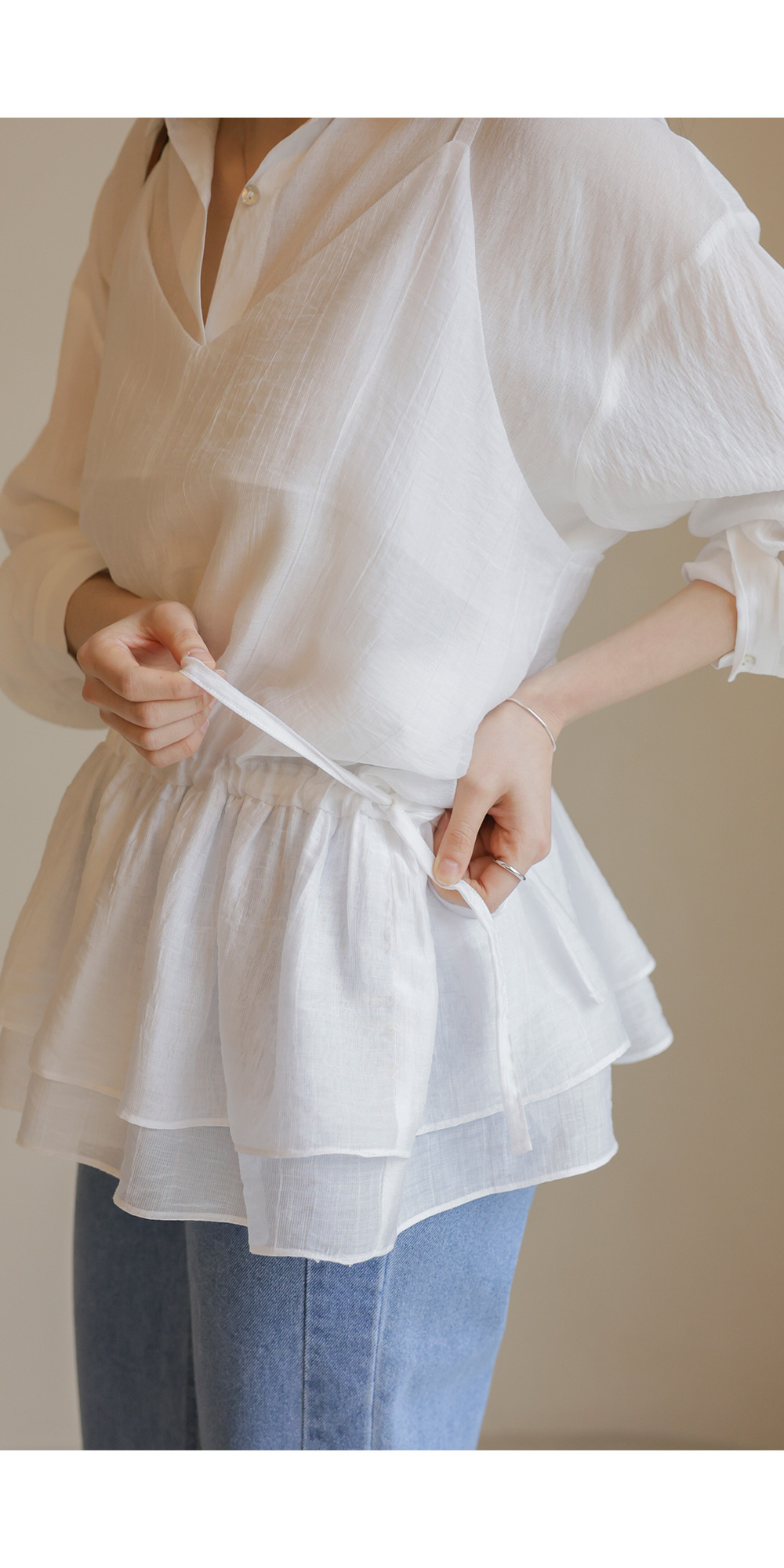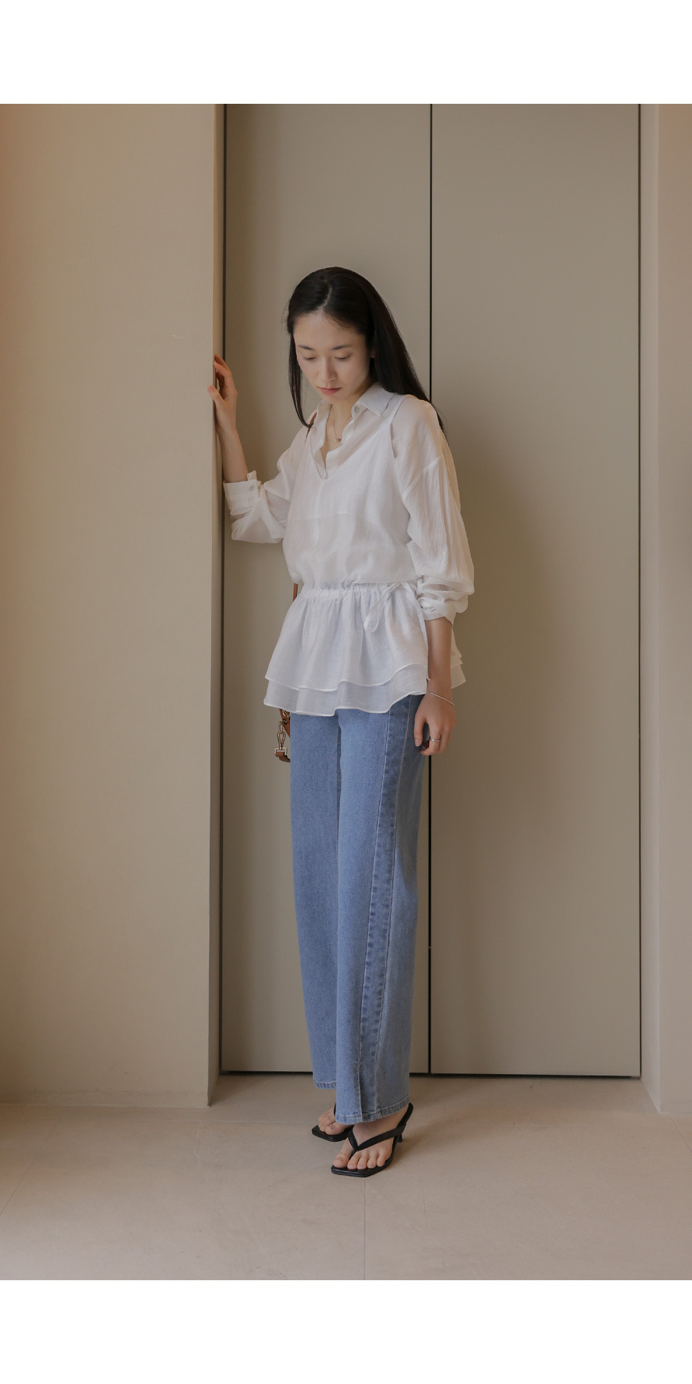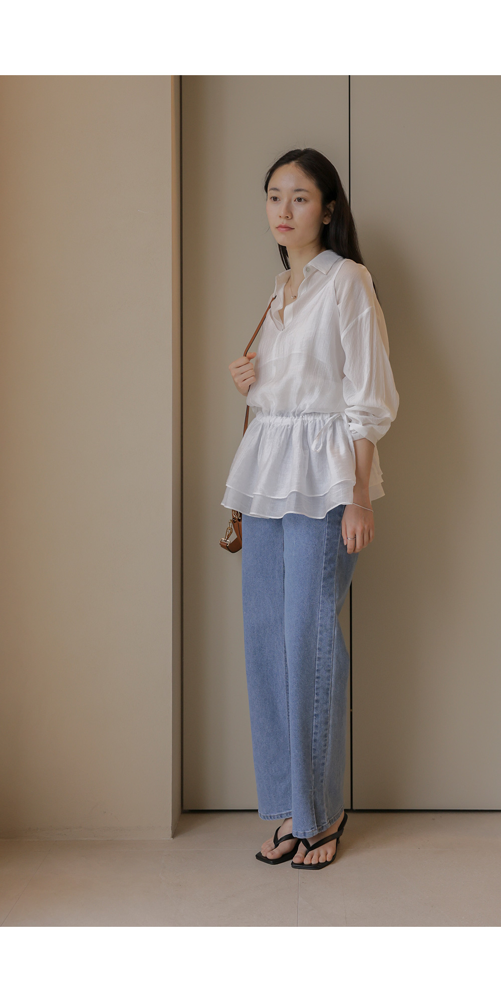 셔츠 아이템은 소재의 텍스처 하나만으로 전체적인 룩의 완성도가 결정되는데요. 몸을 타고 차르르 흐르는 매끈한 터칭감이 일품인 아이템으로, 얇고 가벼운 텍스처가 바디 라인을 여리여리하게 만들어 주구요.