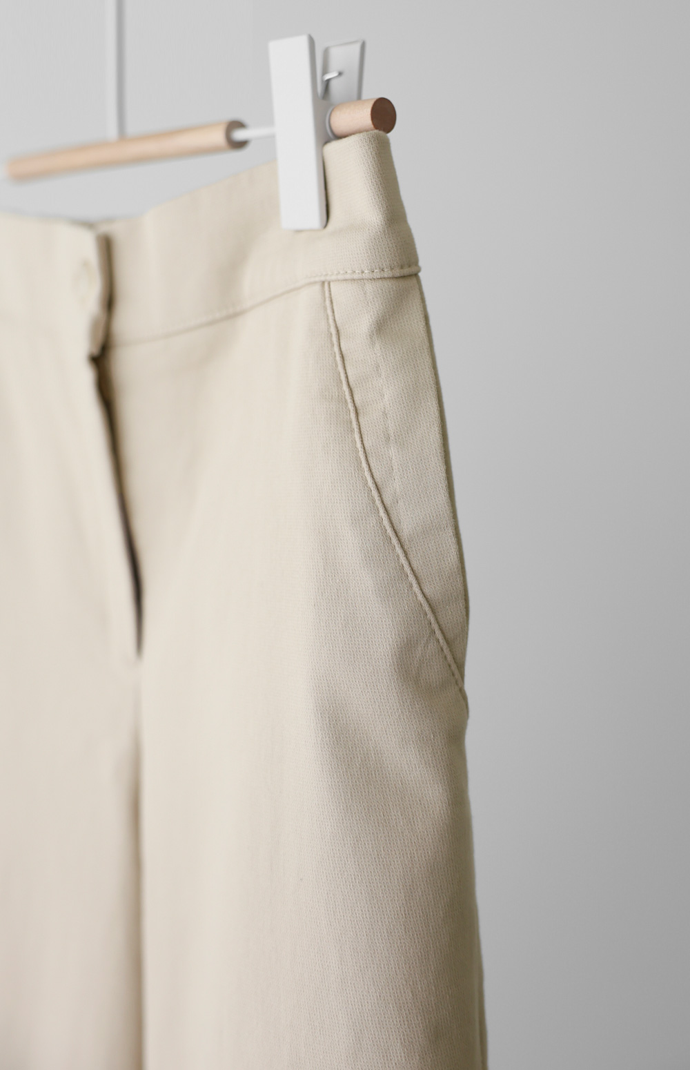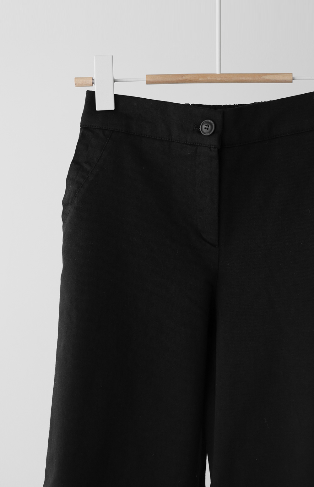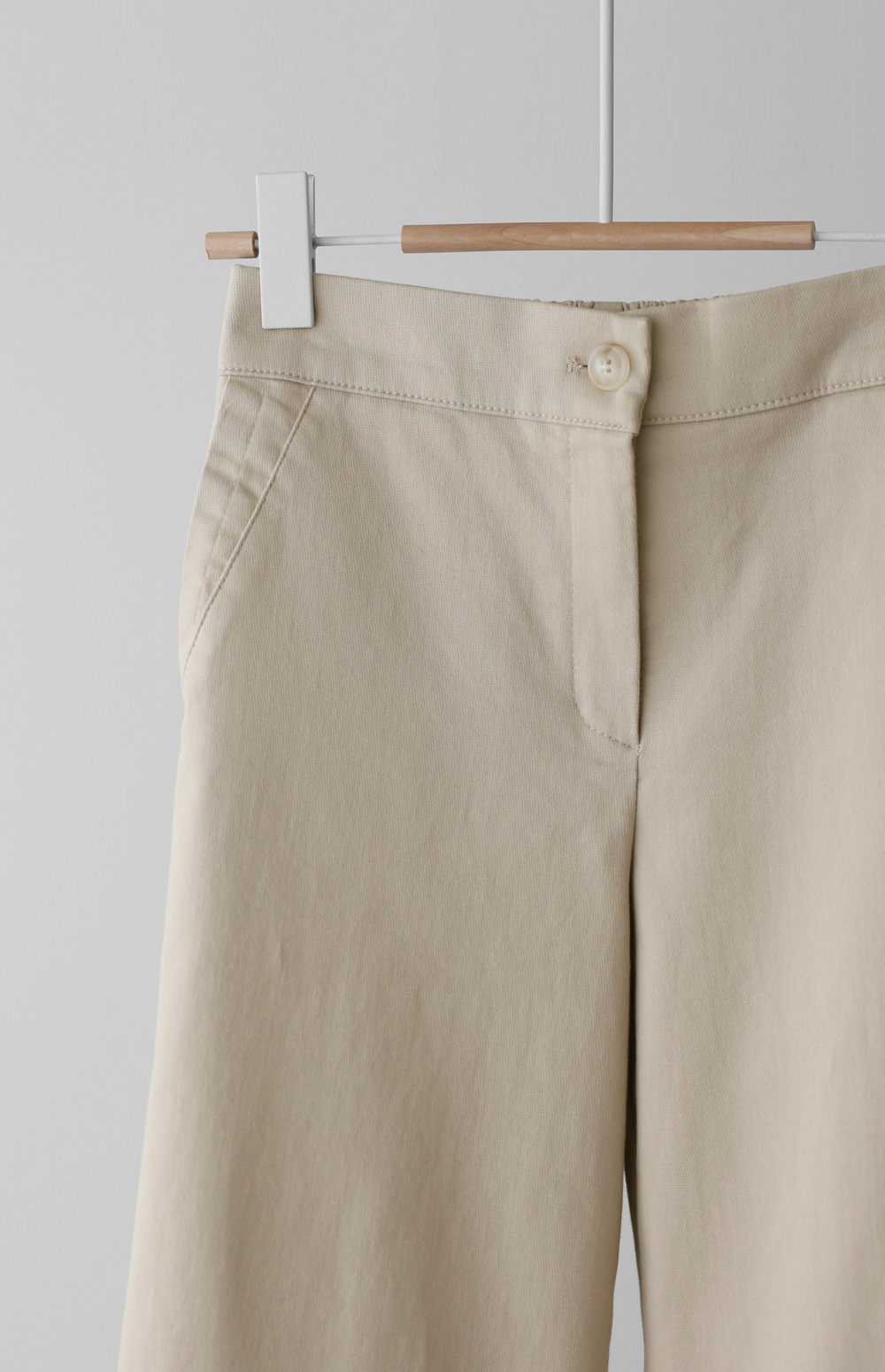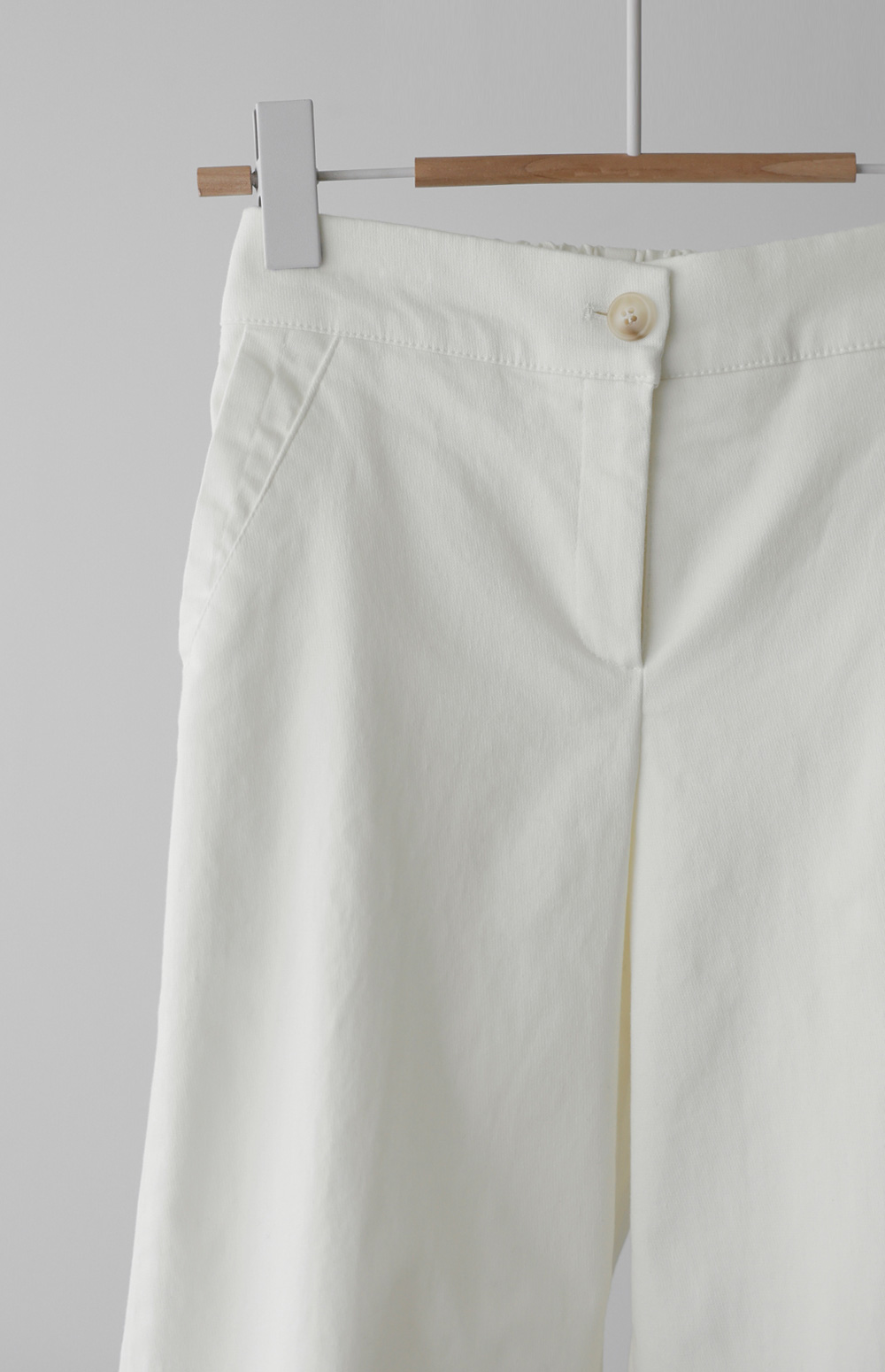 가장 세심하게 신경 쓴 부분은 허리 라인의 반전 디테일이에요. 앞부분은 깔끔한 벨트 라인으로 제작하여 상의를 넣어 입어도 단정한 느낌을 주지만, 뒷부분은 유연한 밴딩 처리를 하여 체형에 구애받지 않는 편안함을 드린답니다.