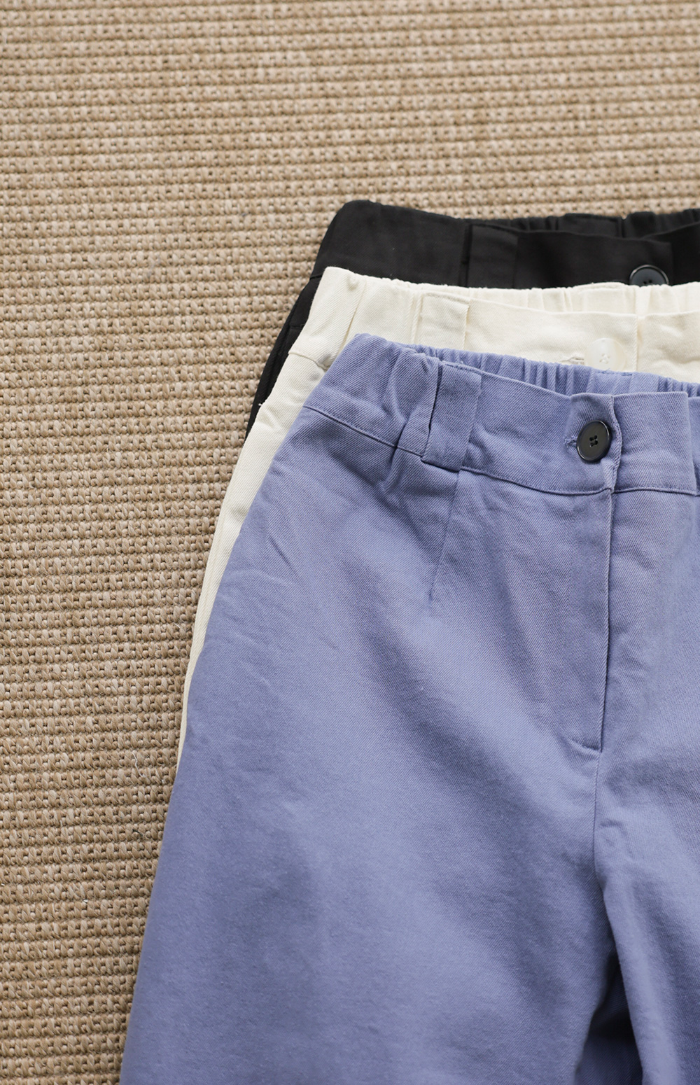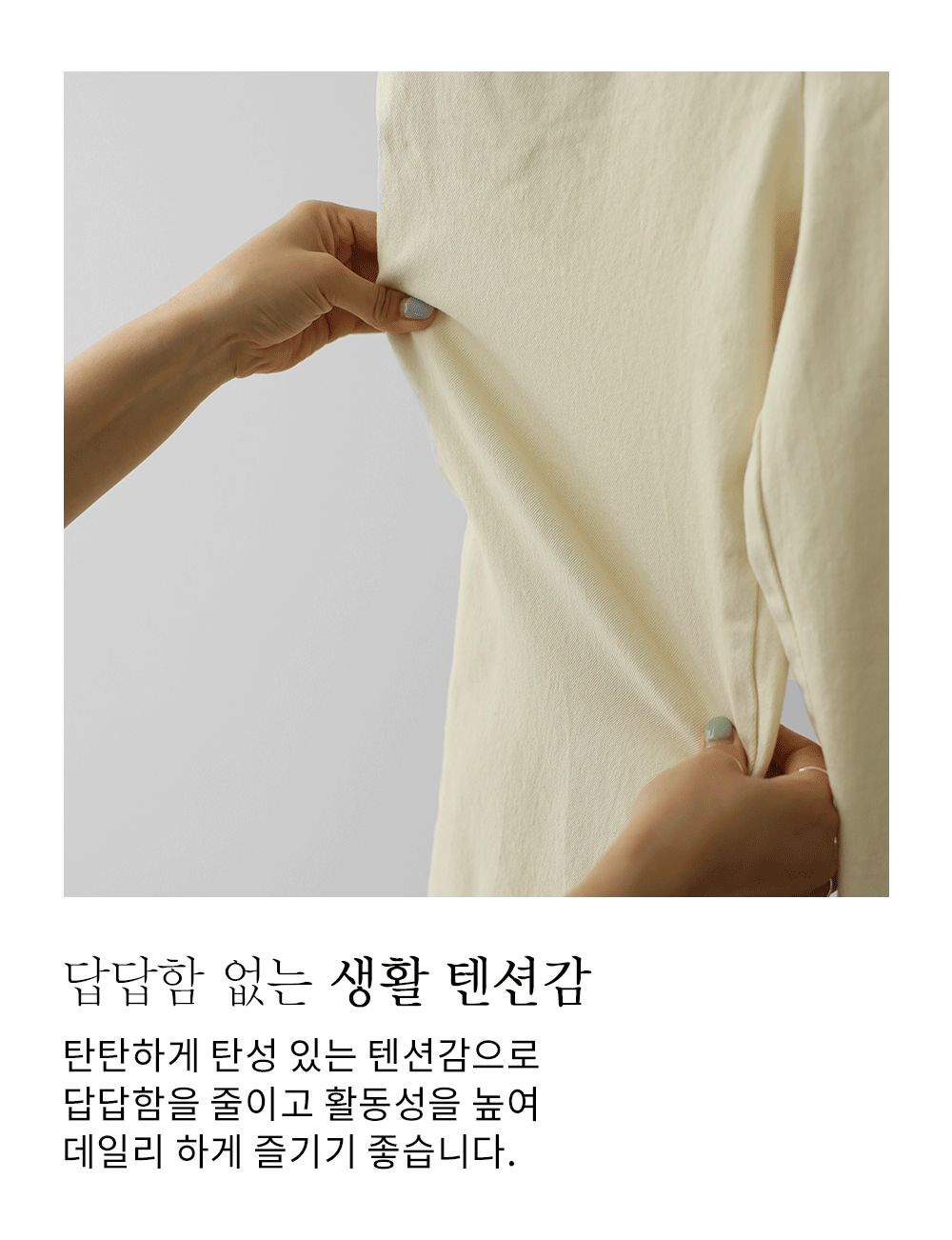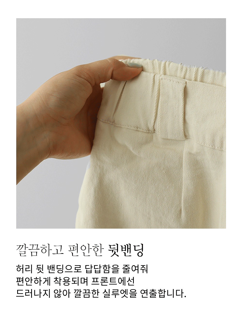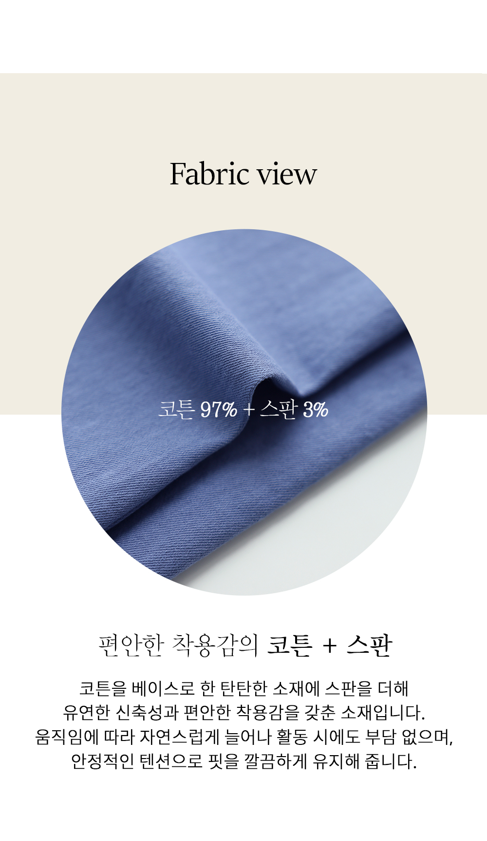 탄탄한 밀도감을 자랑하는 코튼 소재를 베이스로 하여 피부에 닿는 느낌이 매우 쾌적하며, 적절한 비율의 스판 원사를 혼합하여 사방으로 유연하게 늘어나는 뛰어난 복원력을 갖추었습니다. 소재 자체가 지닌 힘이 있어 미운 살들을 매끄럽게 눌러주며, 장시간 활동 시에도 무릎 늘어짐을 최소화하여 언제나 새 옷 같은 단정한 핏을 유지해 주는 원단입니다. ![]() 핏 가이드 보러가기→ 밴딩 가이드 보러가기→ ![]() MD가 답하는 안심 Q&A