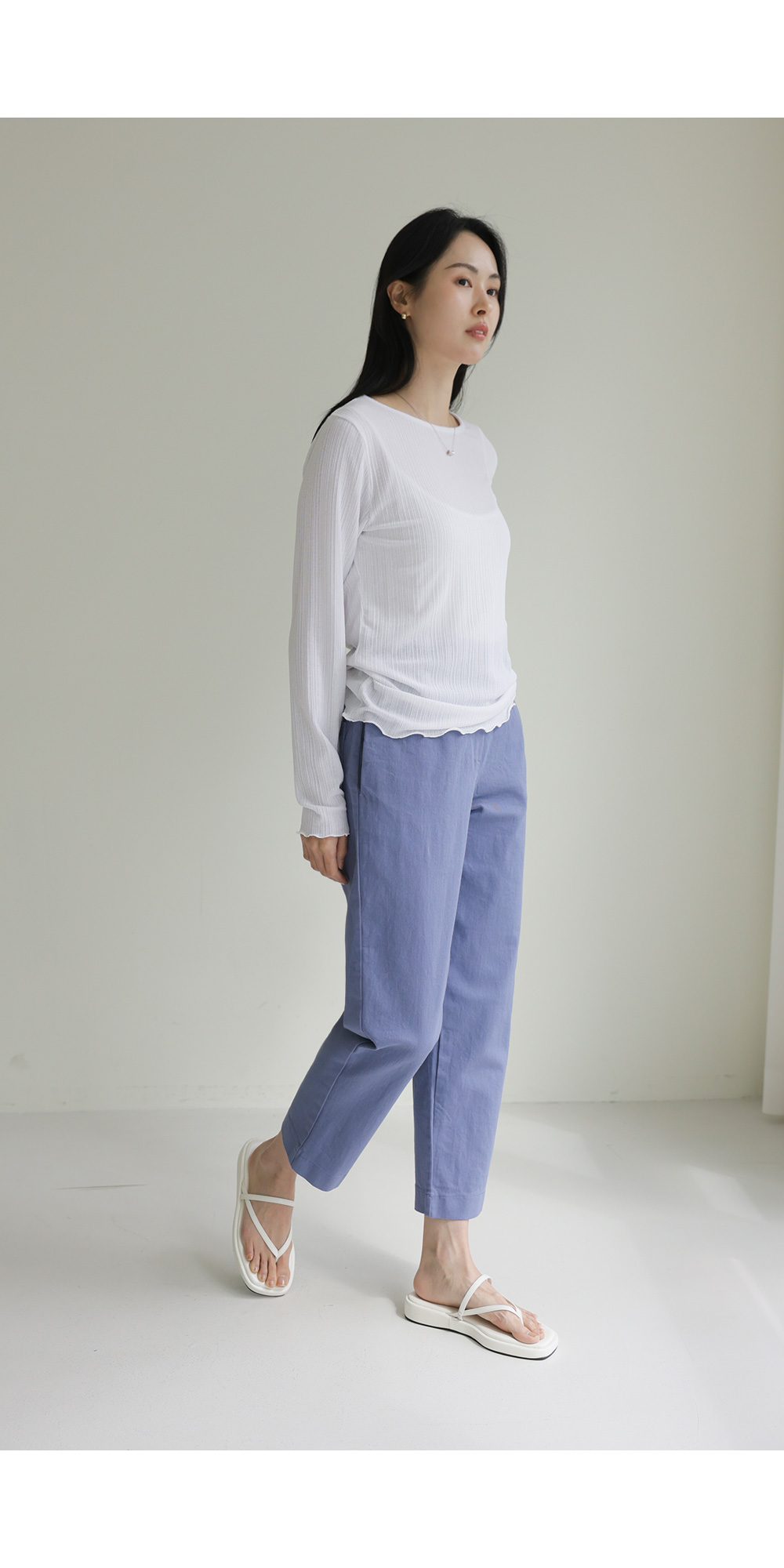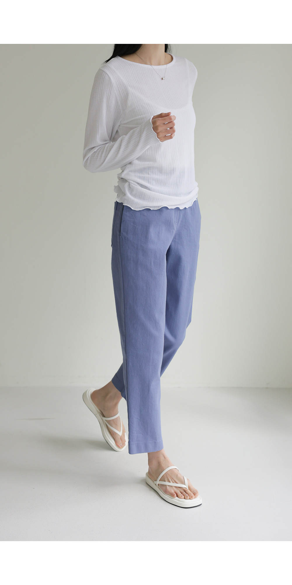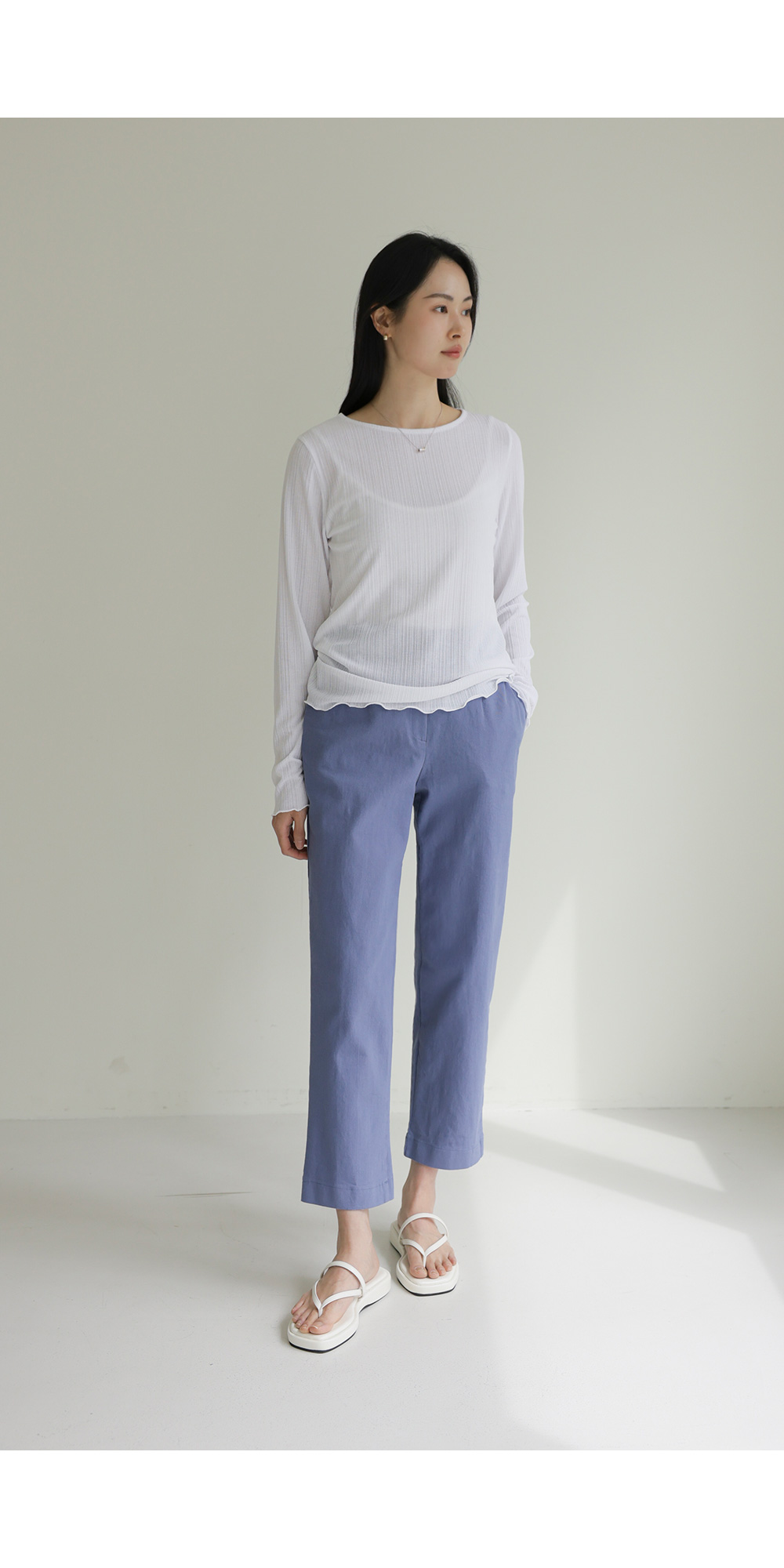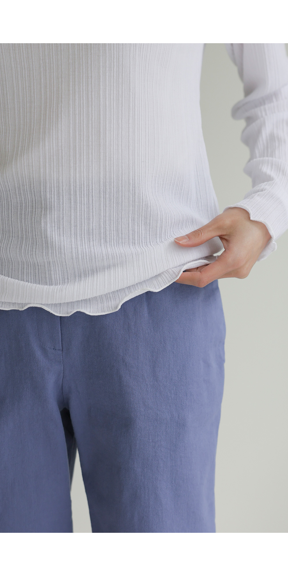 탄탄한 밀도감을 자랑하는 코튼 소재를 베이스로 하여 피부에 닿는 느낌이 매우 쾌적하며, 적절한 비율의 스판 원사를 혼합하여 사방으로 유연하게 늘어나는 뛰어난 복원력을 갖추었습니다. 소재 자체가 지닌 힘이 있어 미운 살들을 매끄럽게 눌러주며, 장시간 활동 시에도 무릎 늘어짐을 최소화하여 언제나 새 옷 같은 단정한 핏을 유지해 주는 원단입니다. ![]() 핏 가이드 보러가기→ 밴딩 가이드 보러가기→ ![]() MD가 답하는 안심 Q&A